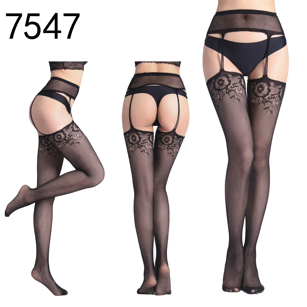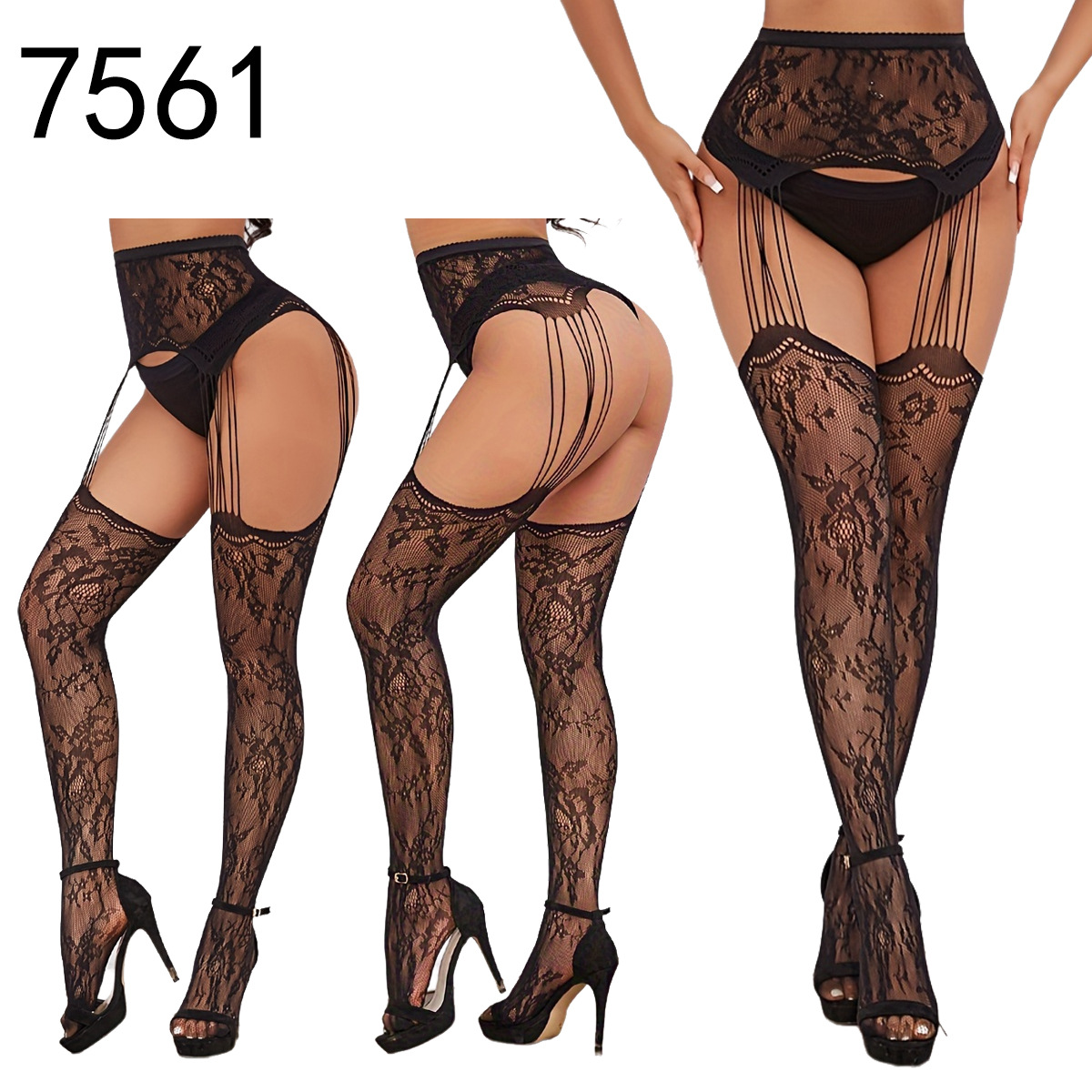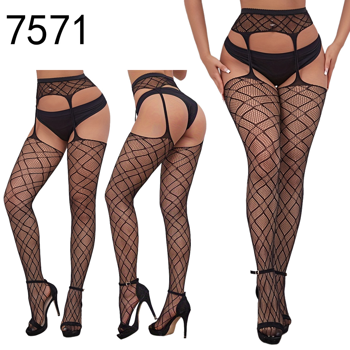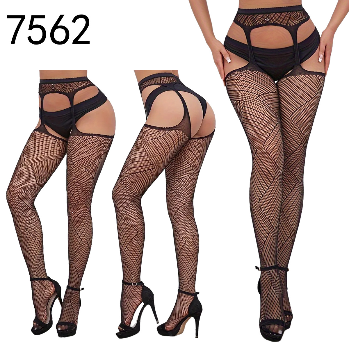 국경을 넘는 새로운 스타일의 섹시한 서스펜더 메쉬 스타킹 블랙 실크 스타킹 고탄성 섹시한 팬티 스타킹 여성용 오픈 가랑이 고급 메쉬 7546