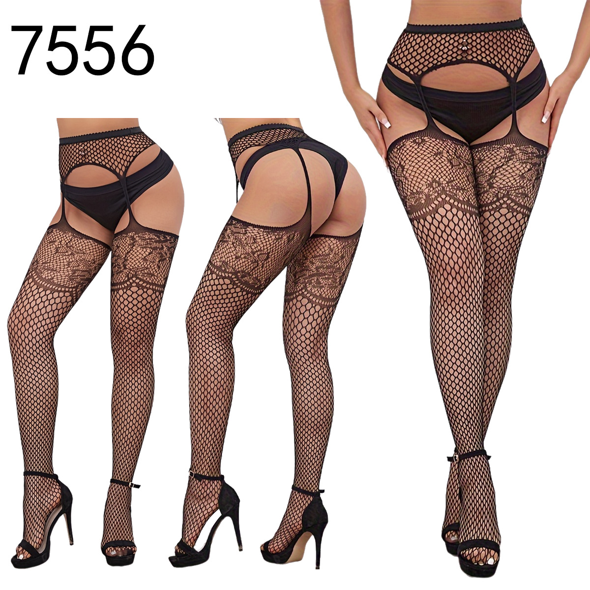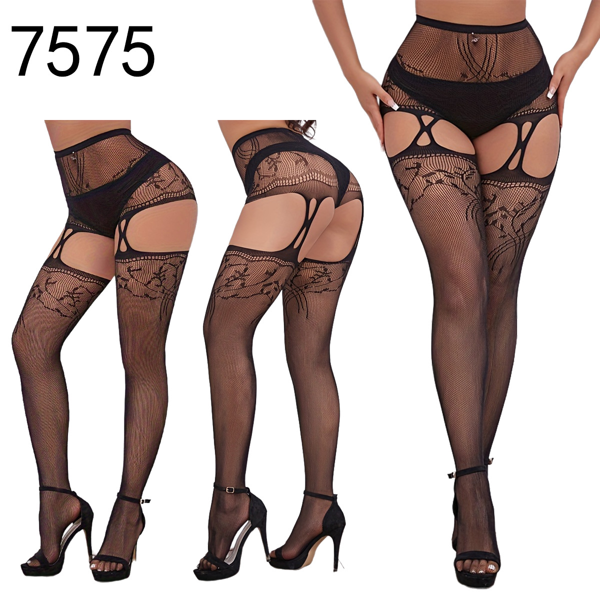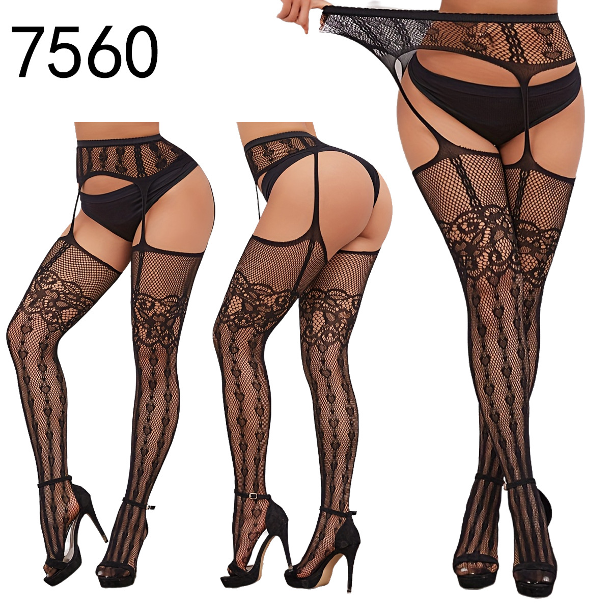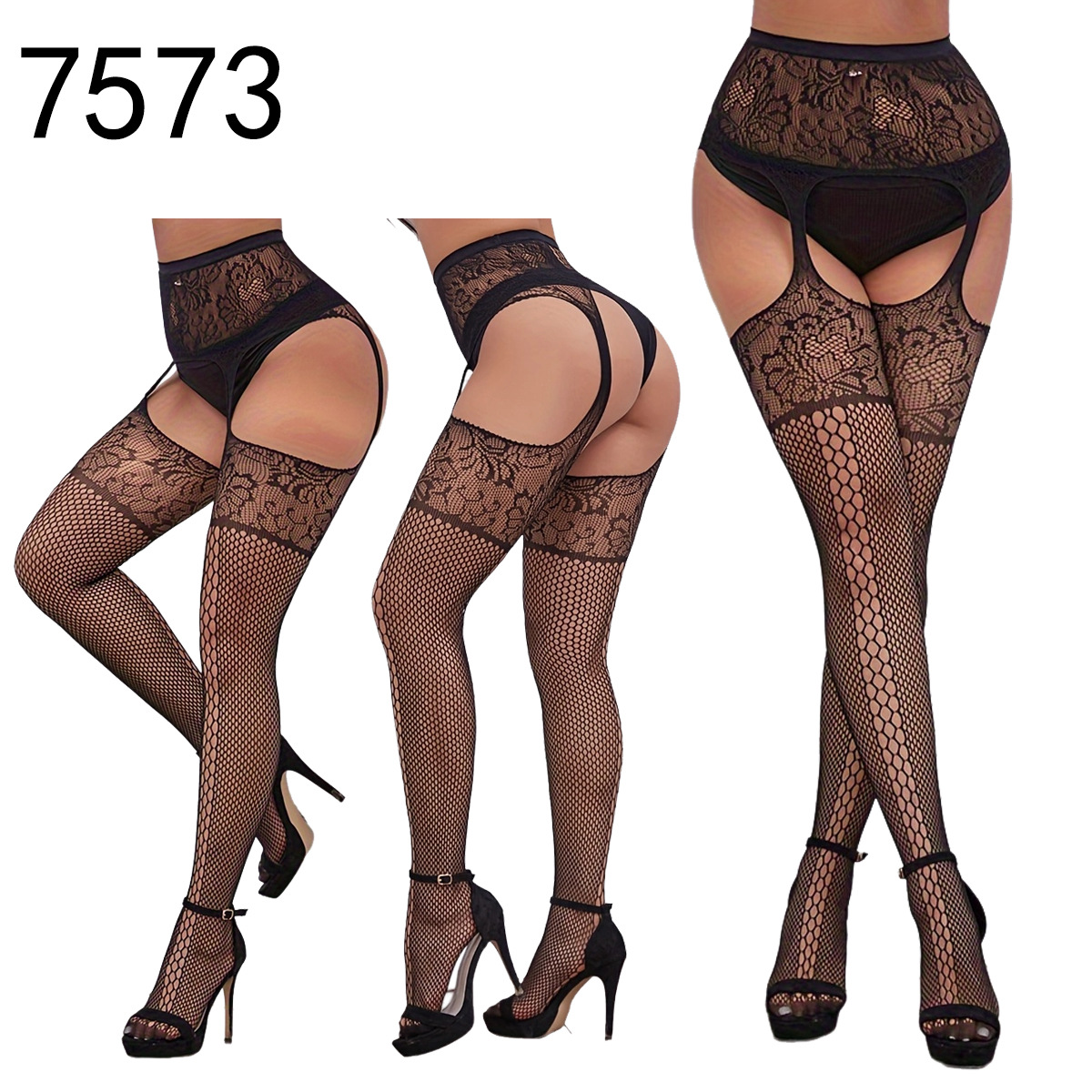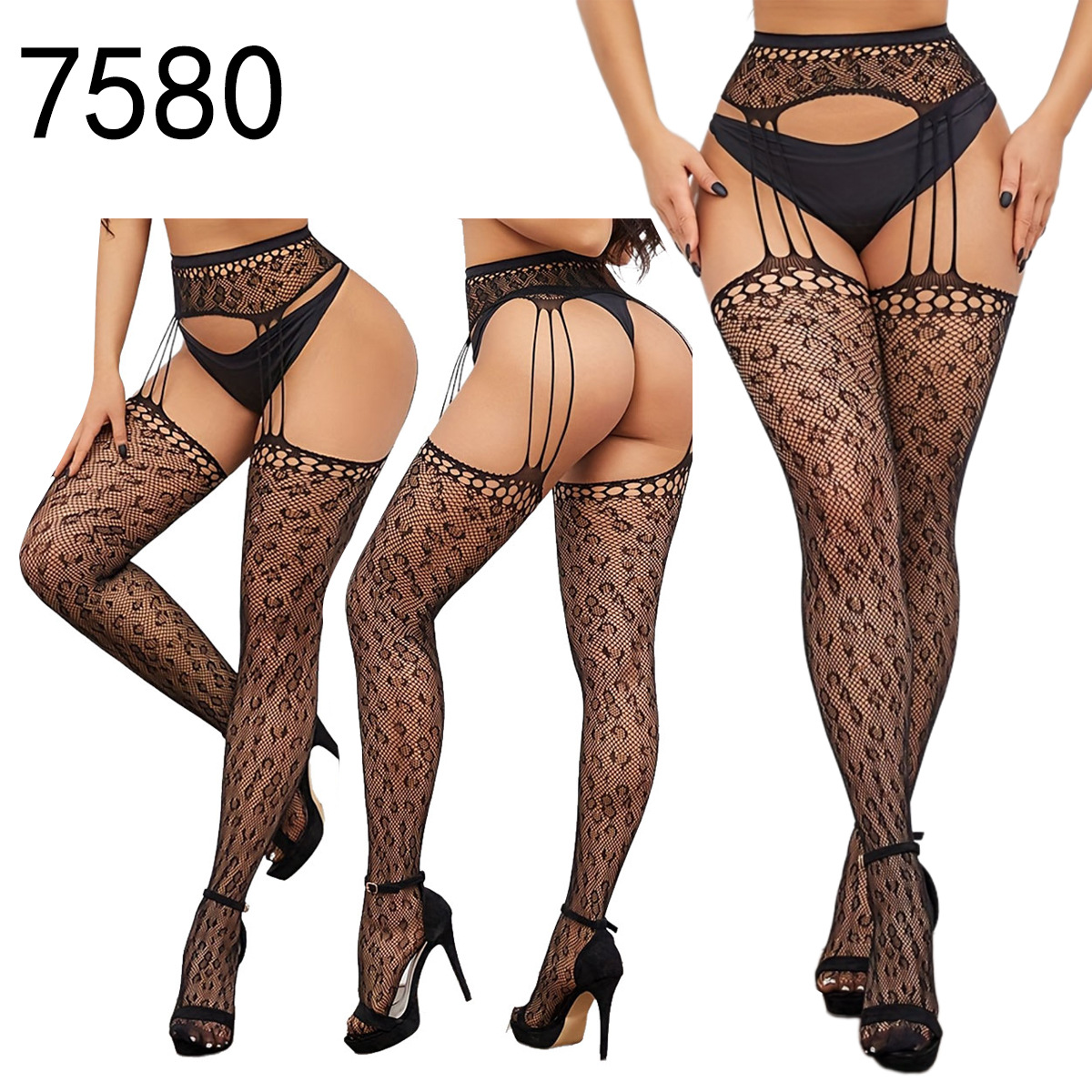 국경을 넘는 새로운 스타일의 섹시한 서스펜더 메쉬 스타킹 블랙 실크 스타킹 고탄성 섹시한 팬티 스타킹 여성용 오픈 가랑이 고급 메쉬 7546