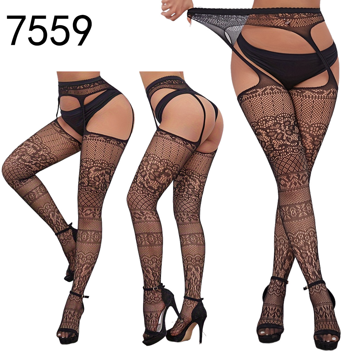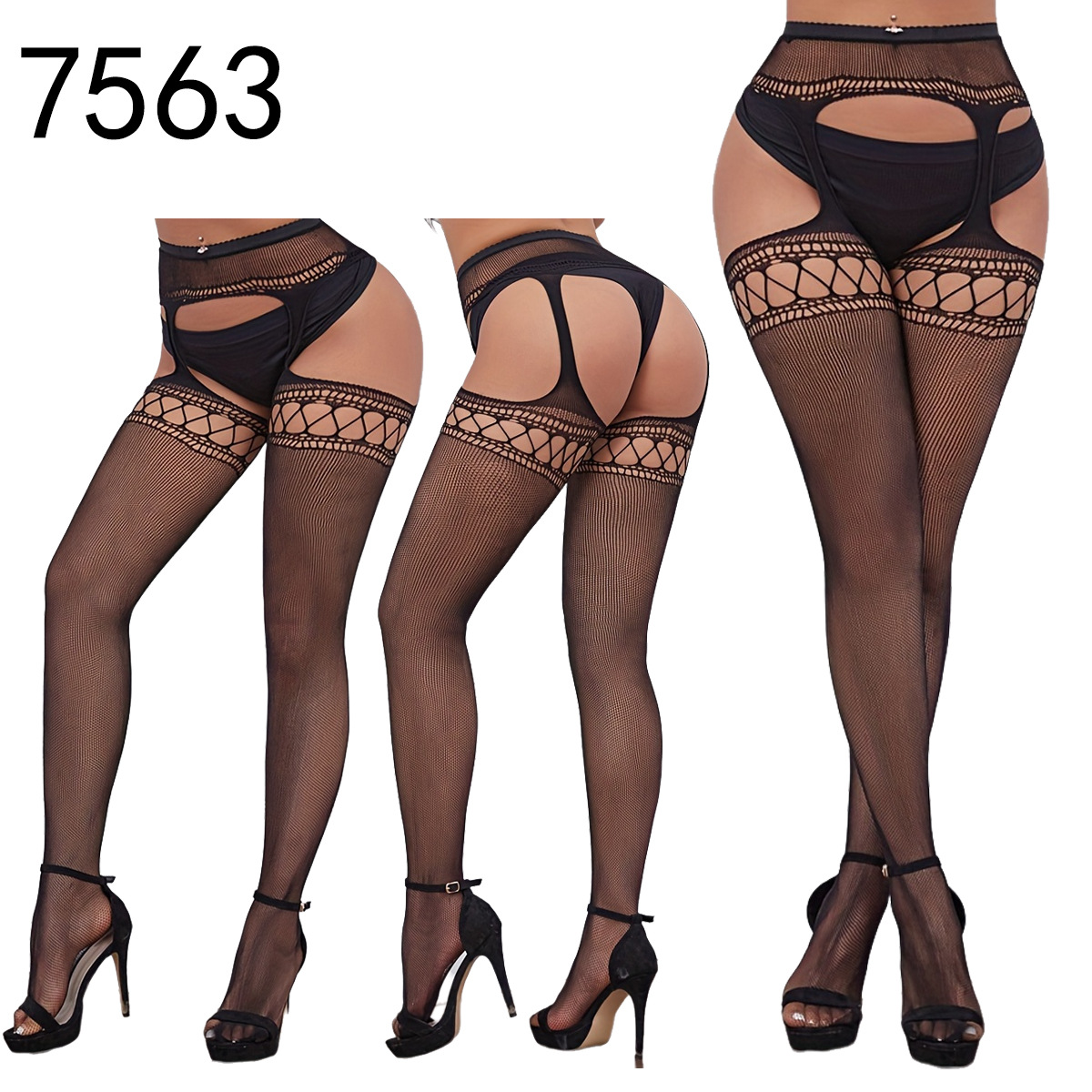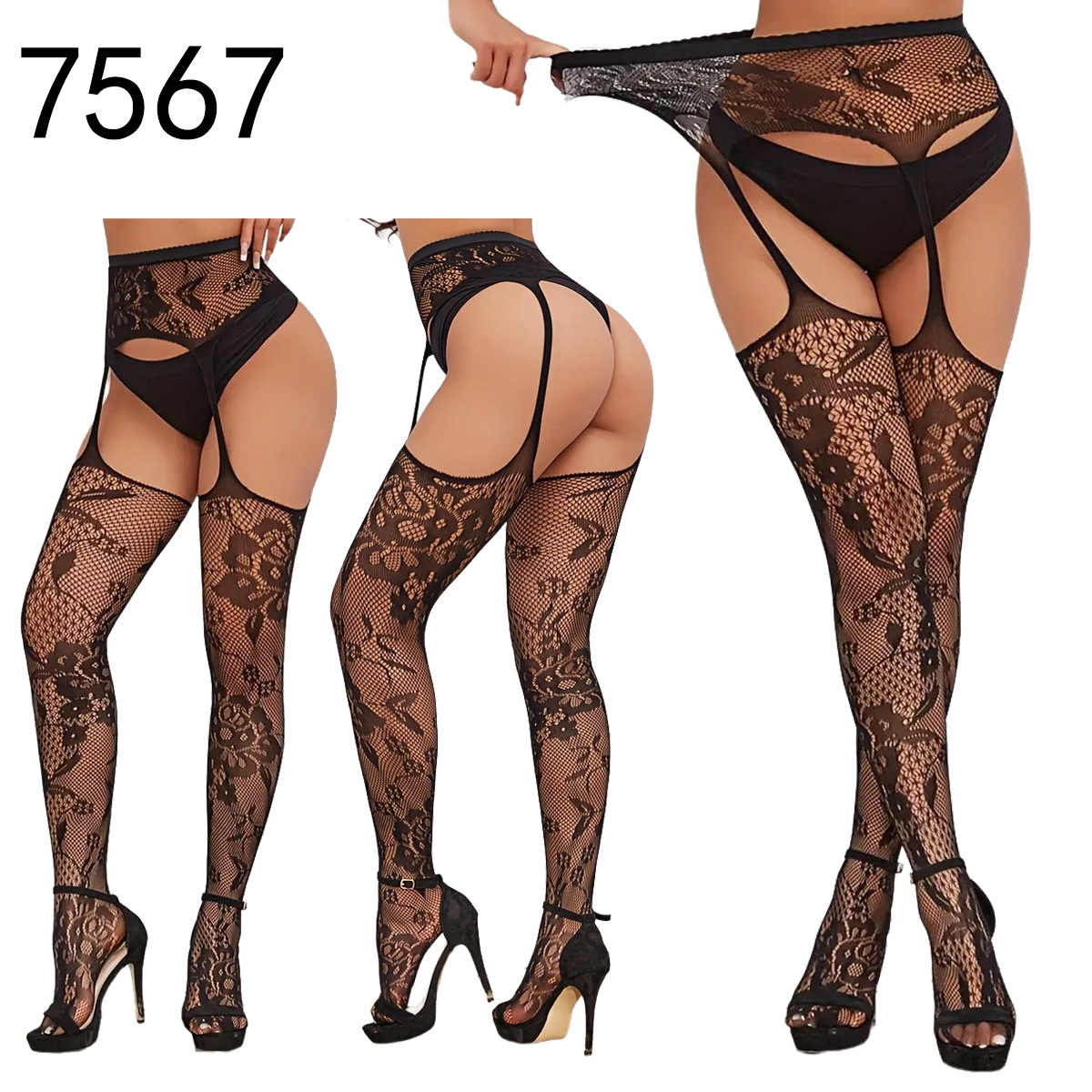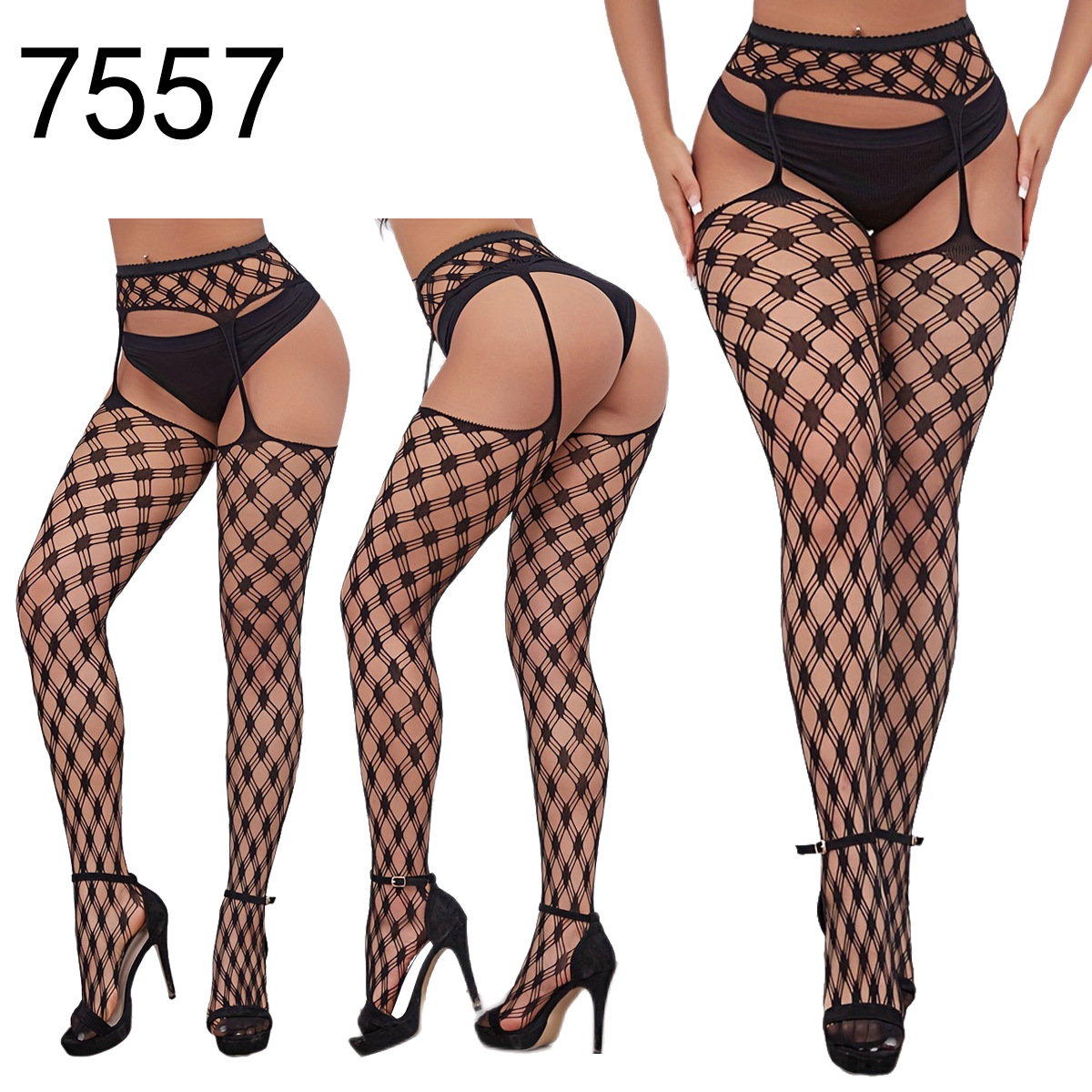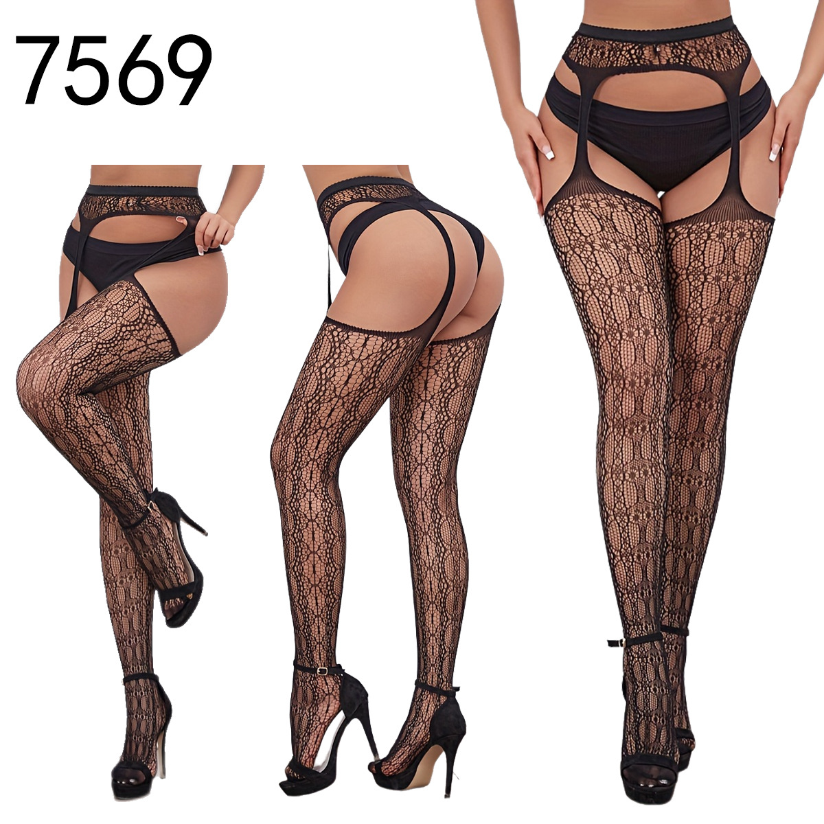 국경을 넘는 새로운 스타일의 섹시한 서스펜더 메쉬 스타킹 블랙 실크 스타킹 고탄성 섹시한 팬티 스타킹 여성용 오픈 가랑이 고급 메쉬 7546