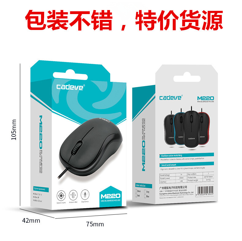후크가있는 Kaidiwei M220 유선 USB 마우스 패션 비즈니스 사무실 홈 노트북 배포 마우스스토어 가기