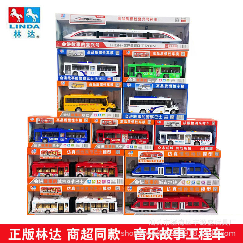 린다 버스 이중 섹션 버스 Fuxing No. Harmony No. 스쿨 버스 고속 철도 지하철 기차 트램 모델 장난감스토어 가기