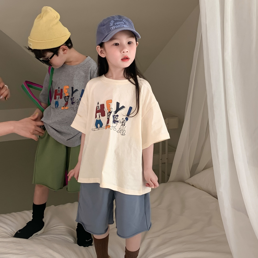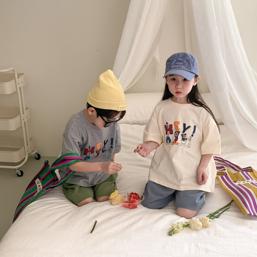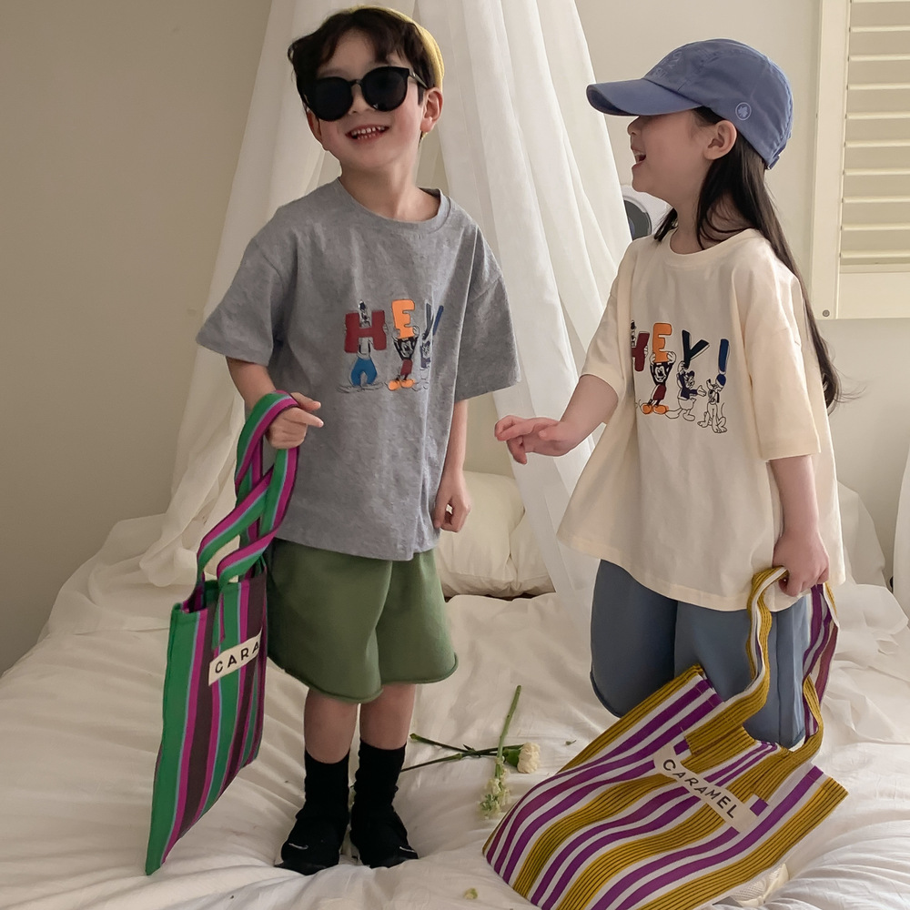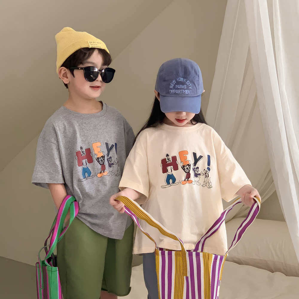 어린이 티셔츠 2026 여름 남아 여아 루즈핏 만화 티셔츠 어린이 한국판 라운드넥 반팔 상의