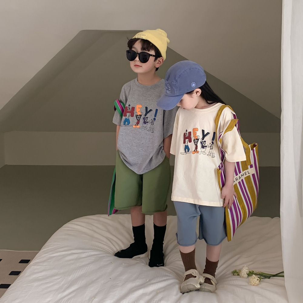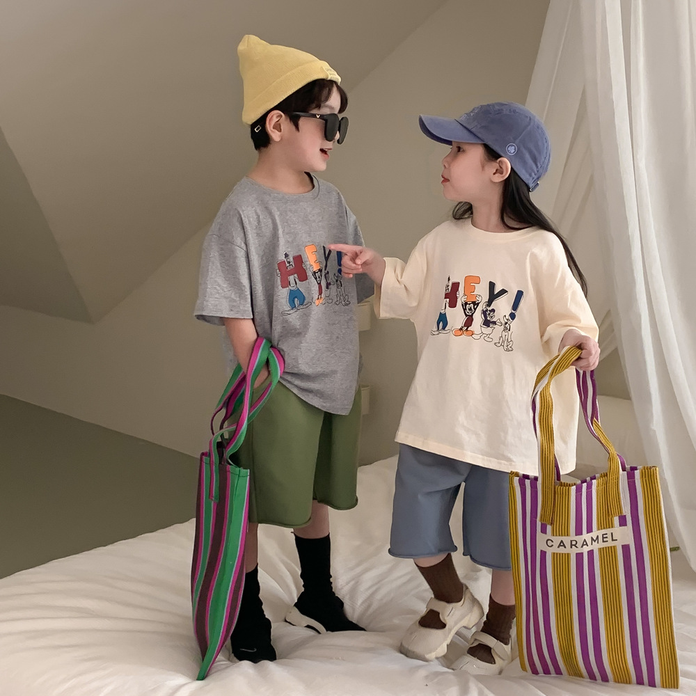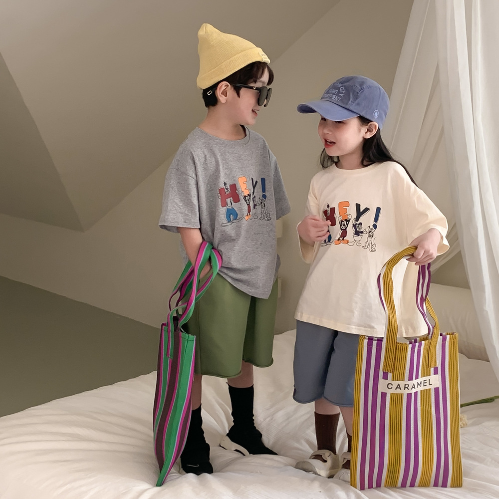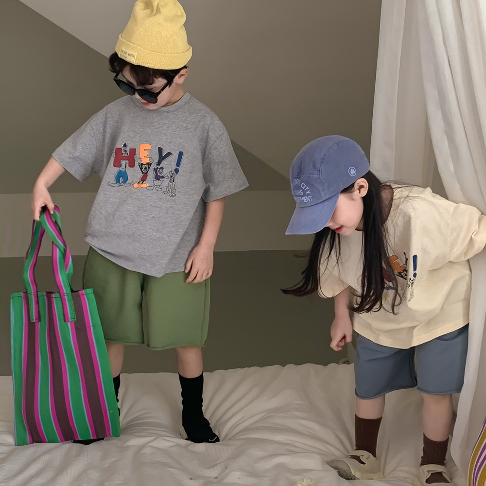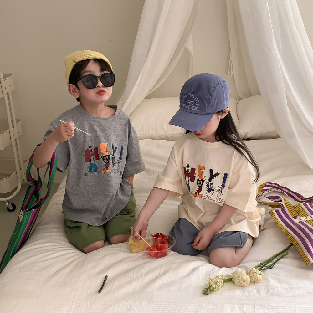 어린이 티셔츠 2026 여름 남아 여아 루즈핏 만화 티셔츠 어린이 한국판 라운드넥 반팔 상의