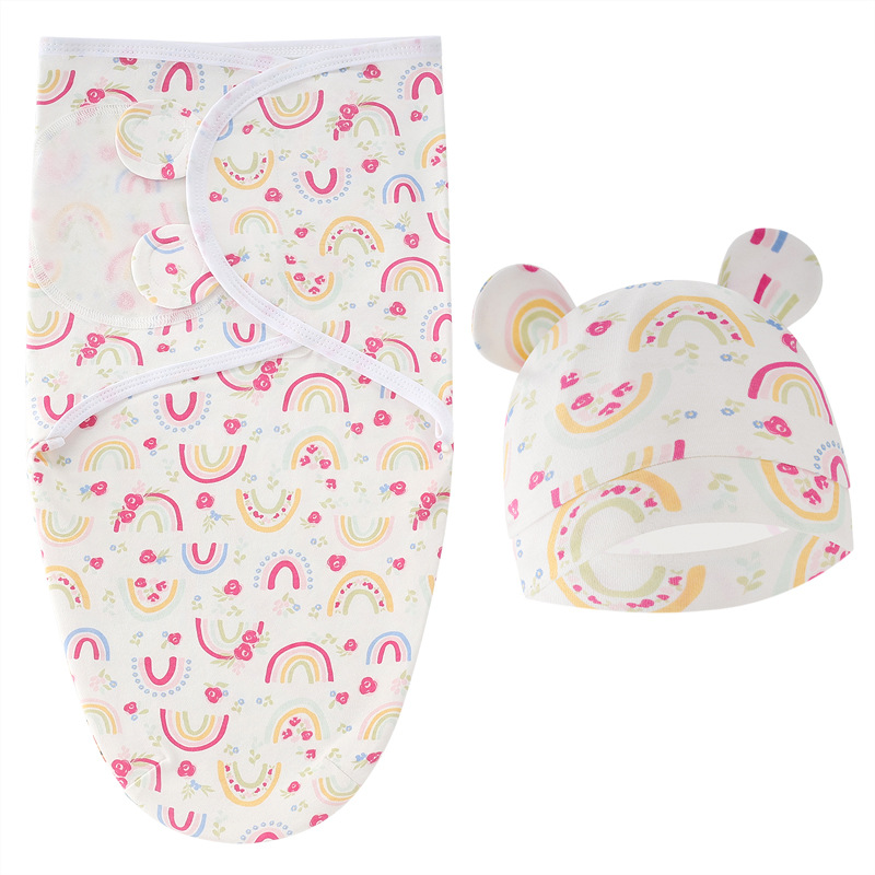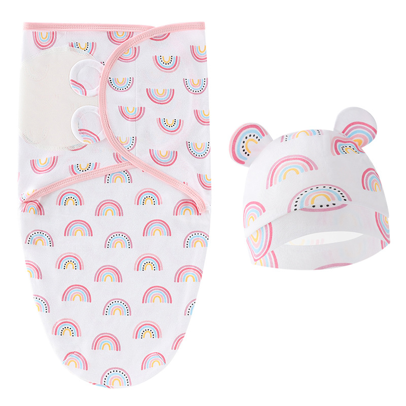 • 핑크 무지개 봄 누에 침낭 + 모자