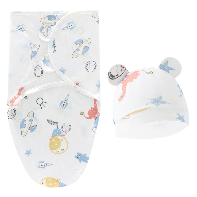 • 남자 아기 3 개의 조합 (회색 하의 병 + 별과 달 + 우주 공룡) 포대기 + 모자