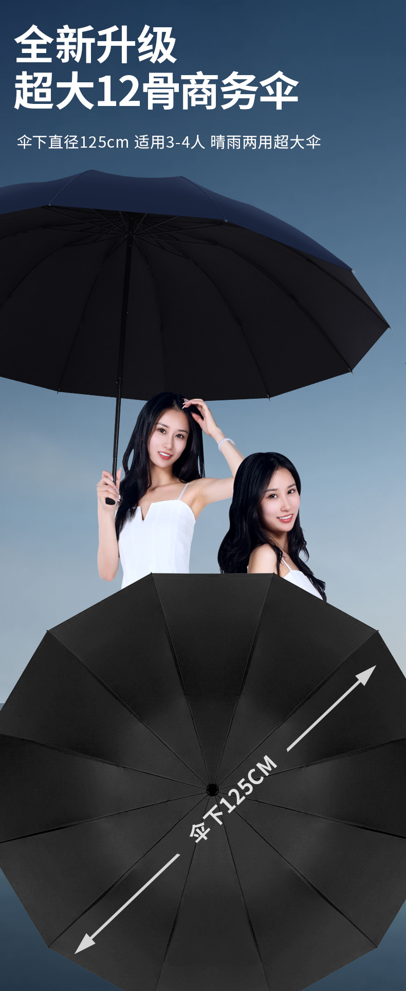 • 12본 강화 대형 방폭우 우산 - 블랙