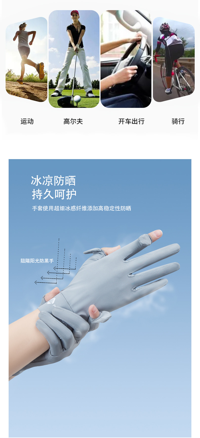 자외선 차단제 장갑 여성용 나일론 쿨 사이클링 드라이빙 아이스 슬리브 UV 방지 미끄럼 방지 손가락 누출 방지 터치 스크린 아이스 장갑