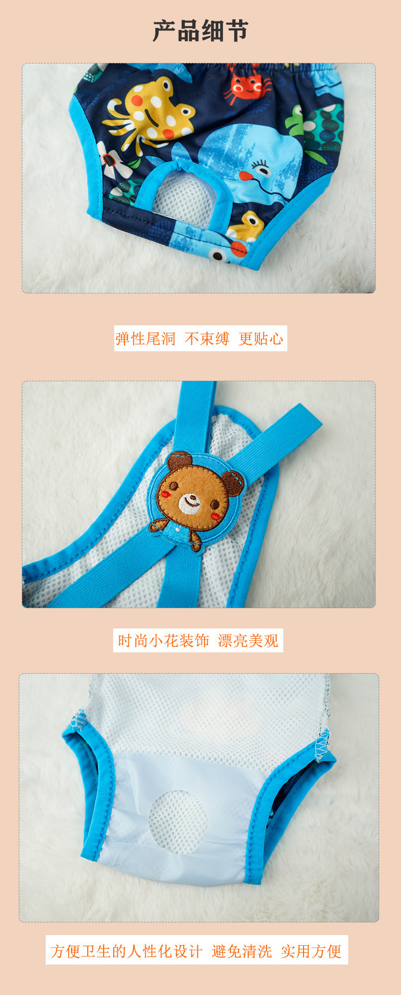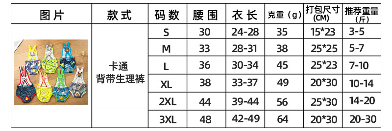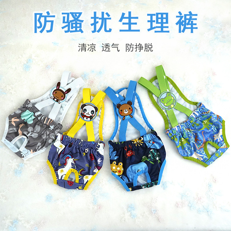 새로운 귀여운 만화 멜빵 생리 바지 개 생리 바지 안전 바지 암캐 생리 바지 괴롭힘 방지 세대스토어 가기