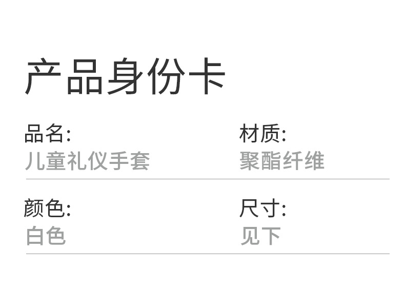 어린이 흰색 에티켓 장갑 여름 공연 활동 학교 아기 게임 초등 및 중등 학생 통기성 얇은 섹션
