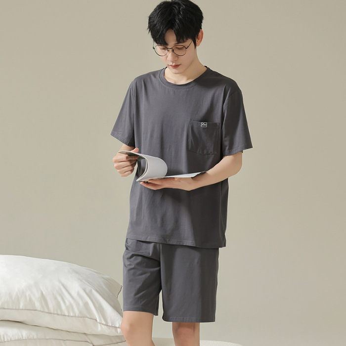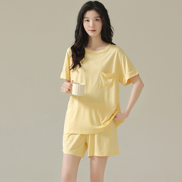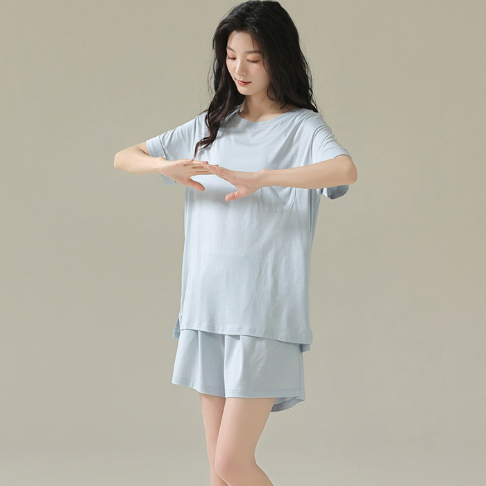 모달 커플 잠옷 여자의 여름 시원한 반팔 간단한 단색 가정 의류 남자의 플러스 사이즈 세트스토어 가기