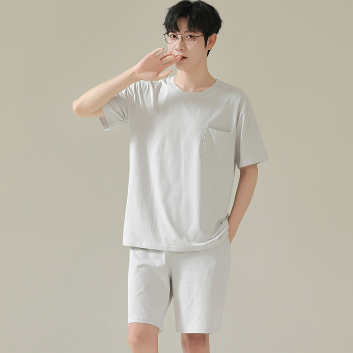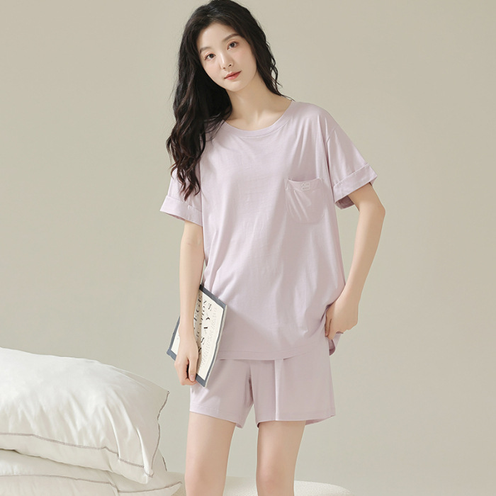 모달 커플 잠옷 여자의 여름 시원한 반팔 간단한 단색 가정 의류 남자의 플러스 사이즈 세트