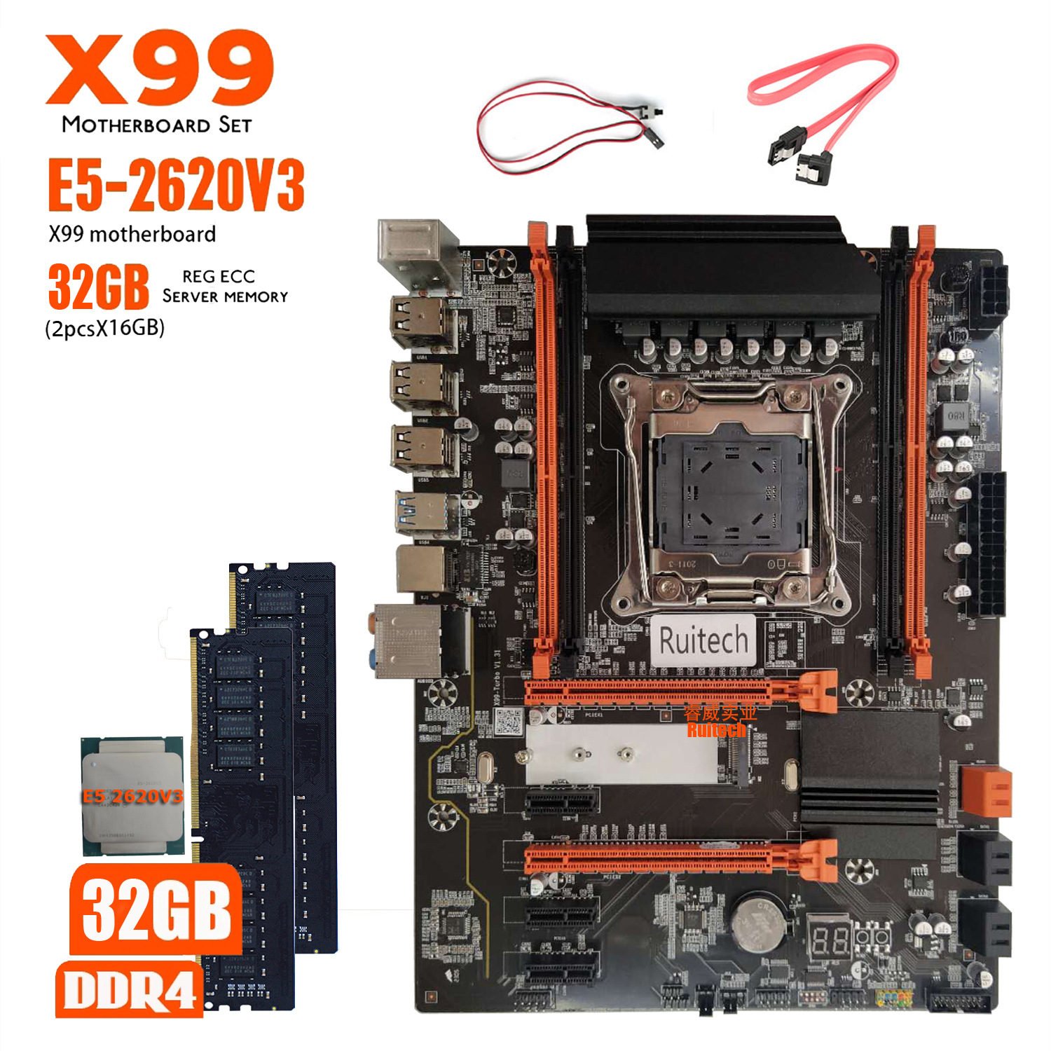 X99 마더 보드 콤보 LGA2011-3 2620V3 CPU 32G = 2*16G ECC RAM