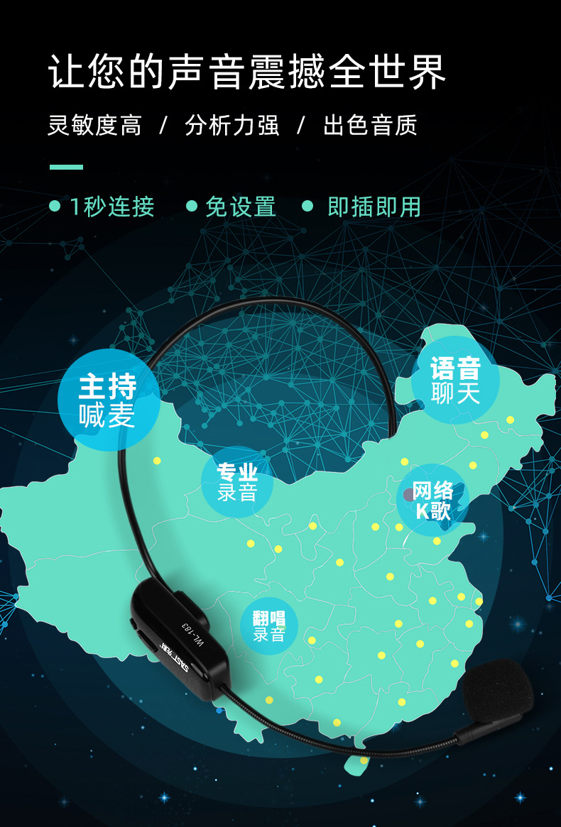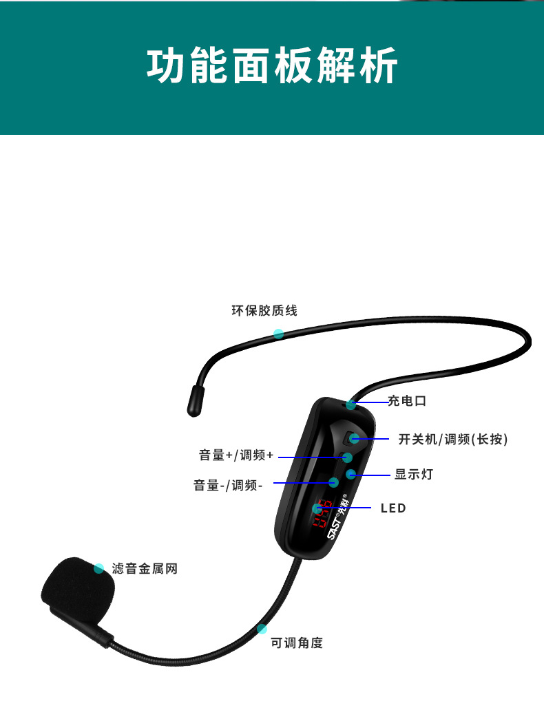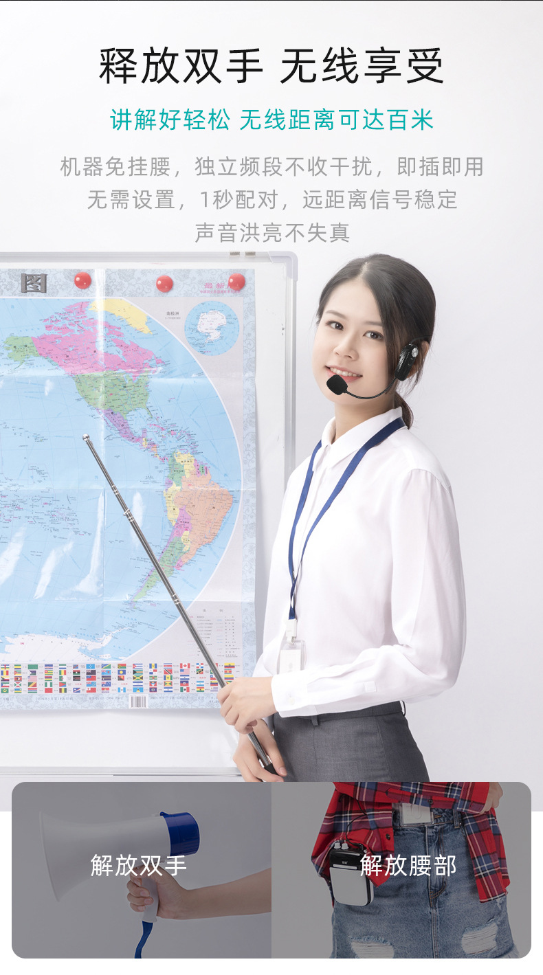 • 교사를 위한 업그레이드된 2.4G 헤드셋(교차 주파수 없이 동시에 사용할 수 있는 999세트)