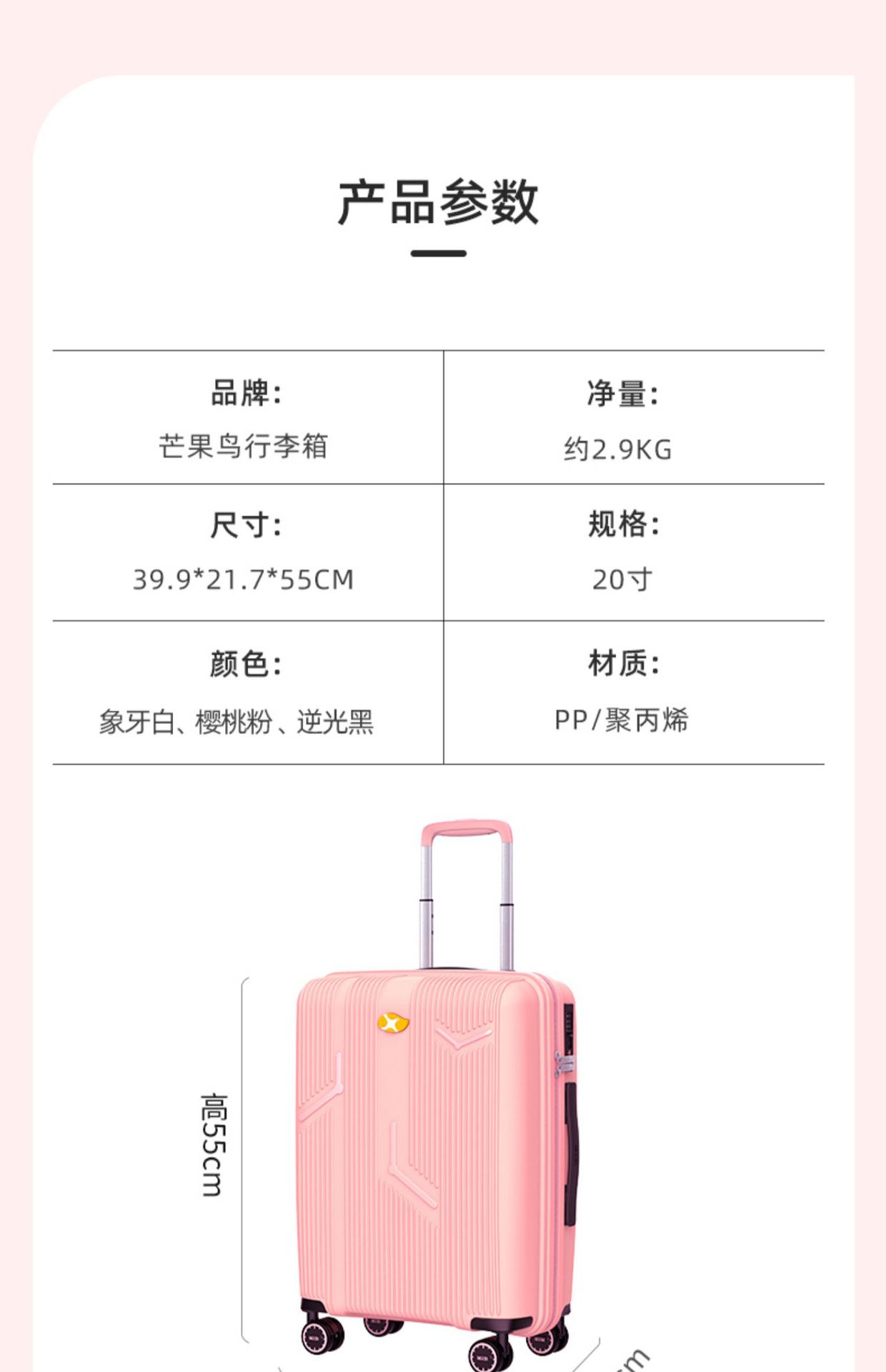 • 20 인치 탑승 여행 가방 핑크