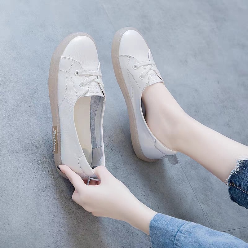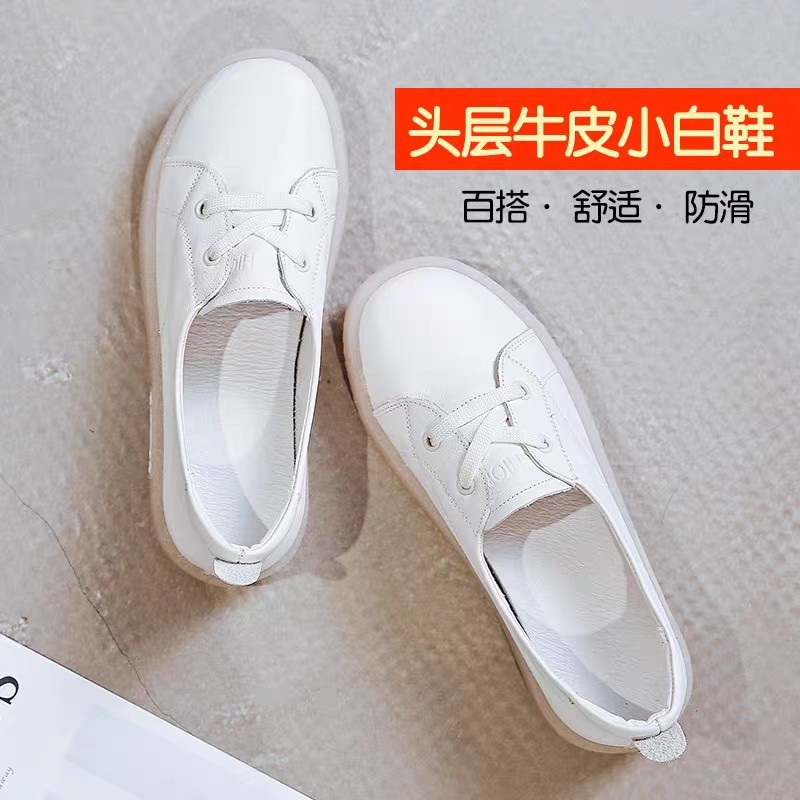 여성을위한 정품 가죽 흰색 신발 2025 새로운 스타일 소근육 부드러운 밑창 얕은 구두 플랫 바닥 임산부 신발 피곤하지 않은 간호사 신발스토어 가기