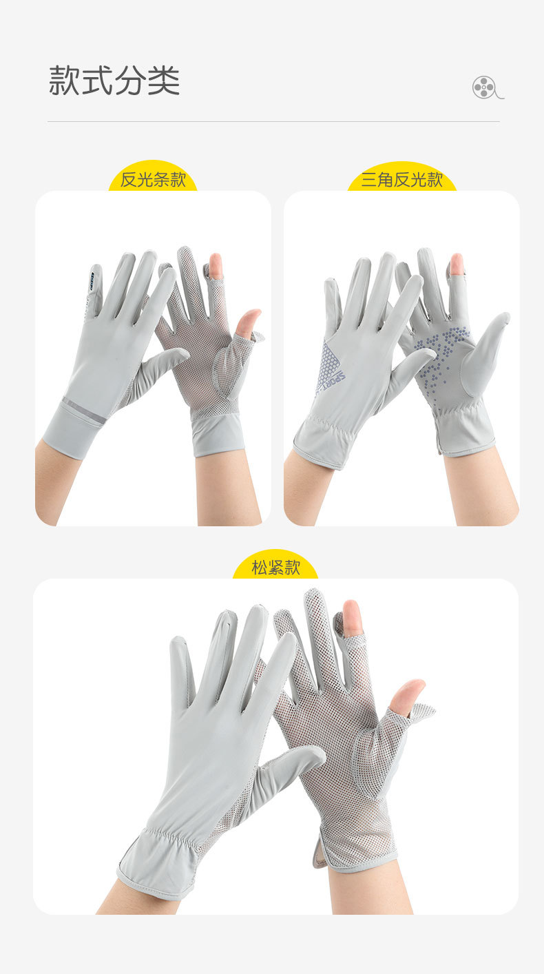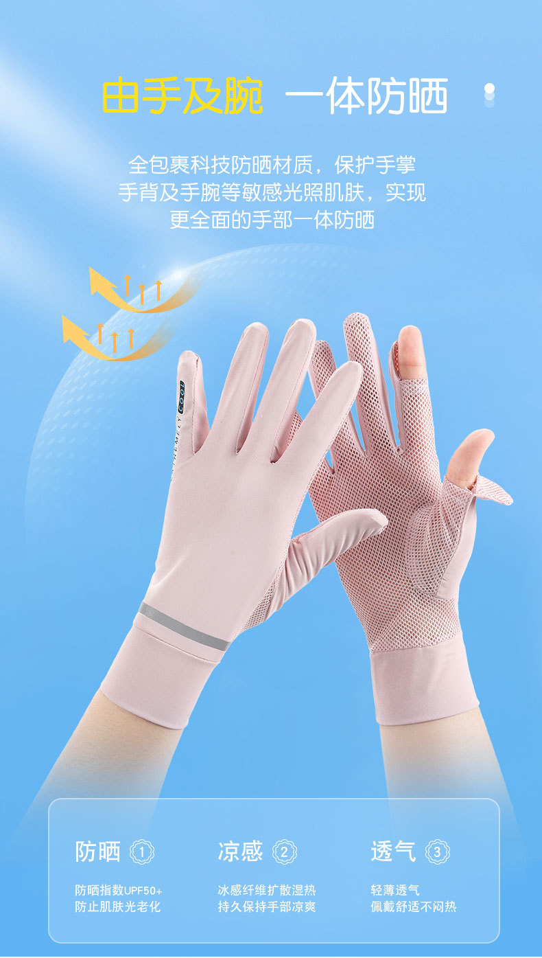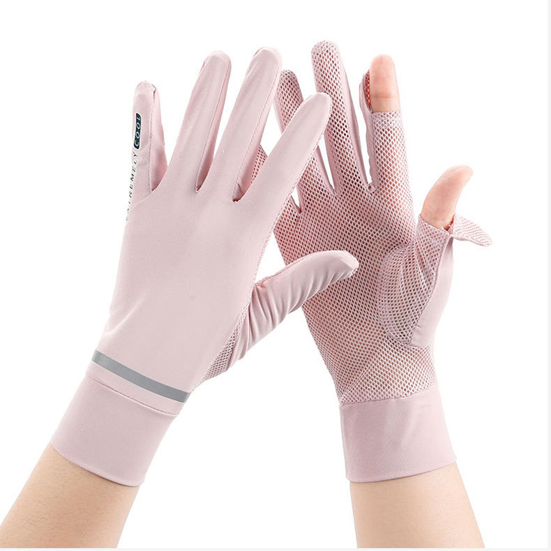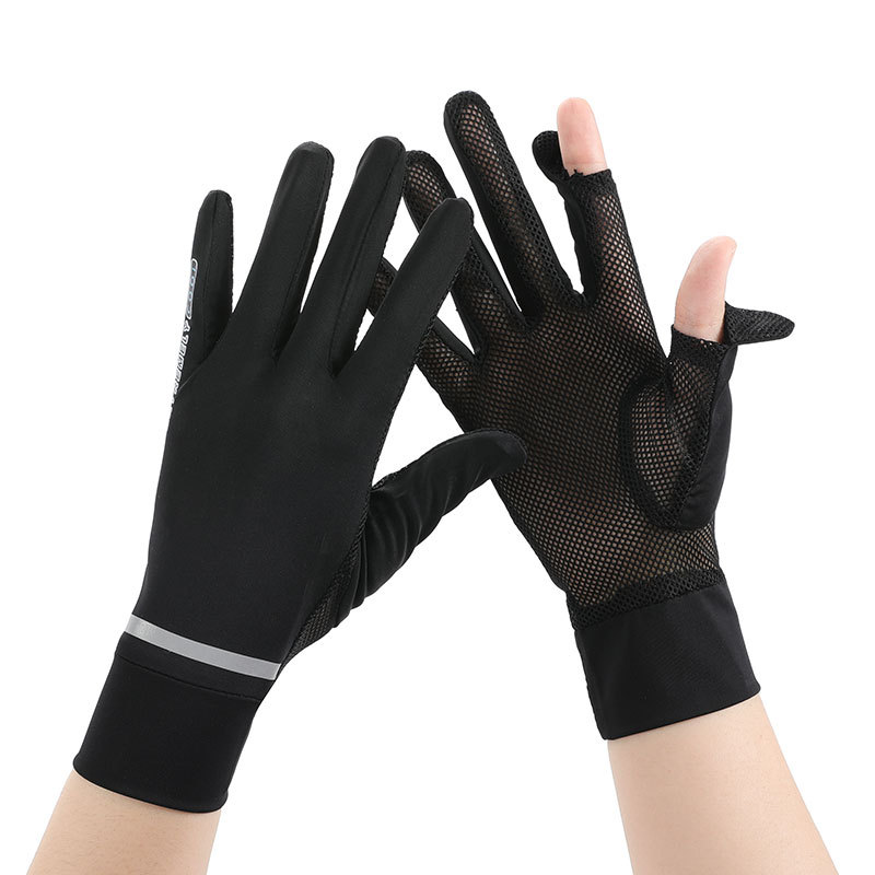 반사 스트립 선 스크린 숙녀 여름 얇은 속건 메쉬 통기성 UPF50 + 운전 아이스 쿨 누출 손가락 전기 자동차