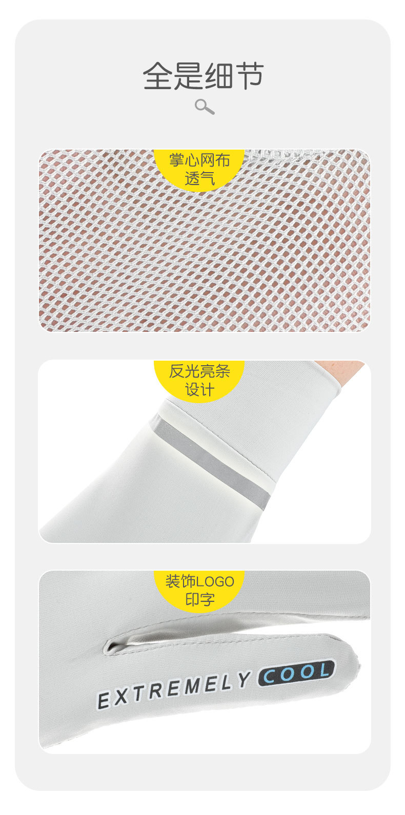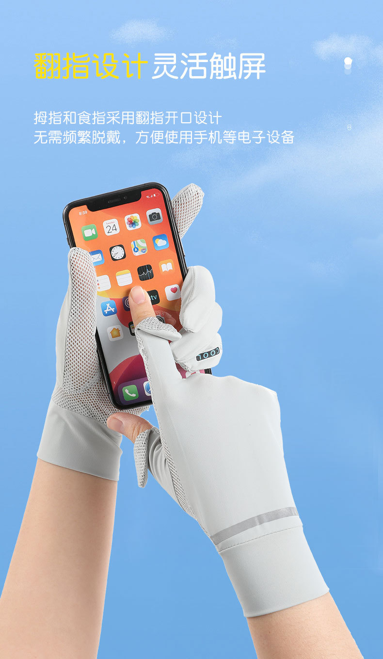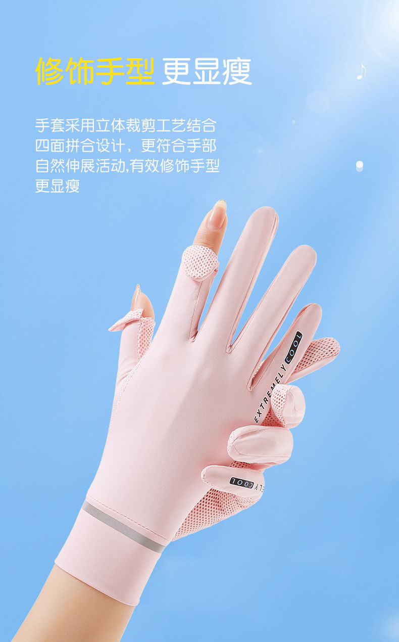 반사 스트립 선 스크린 숙녀 여름 얇은 속건 메쉬 통기성 UPF50 + 운전 아이스 쿨 누출 손가락 전기 자동차
