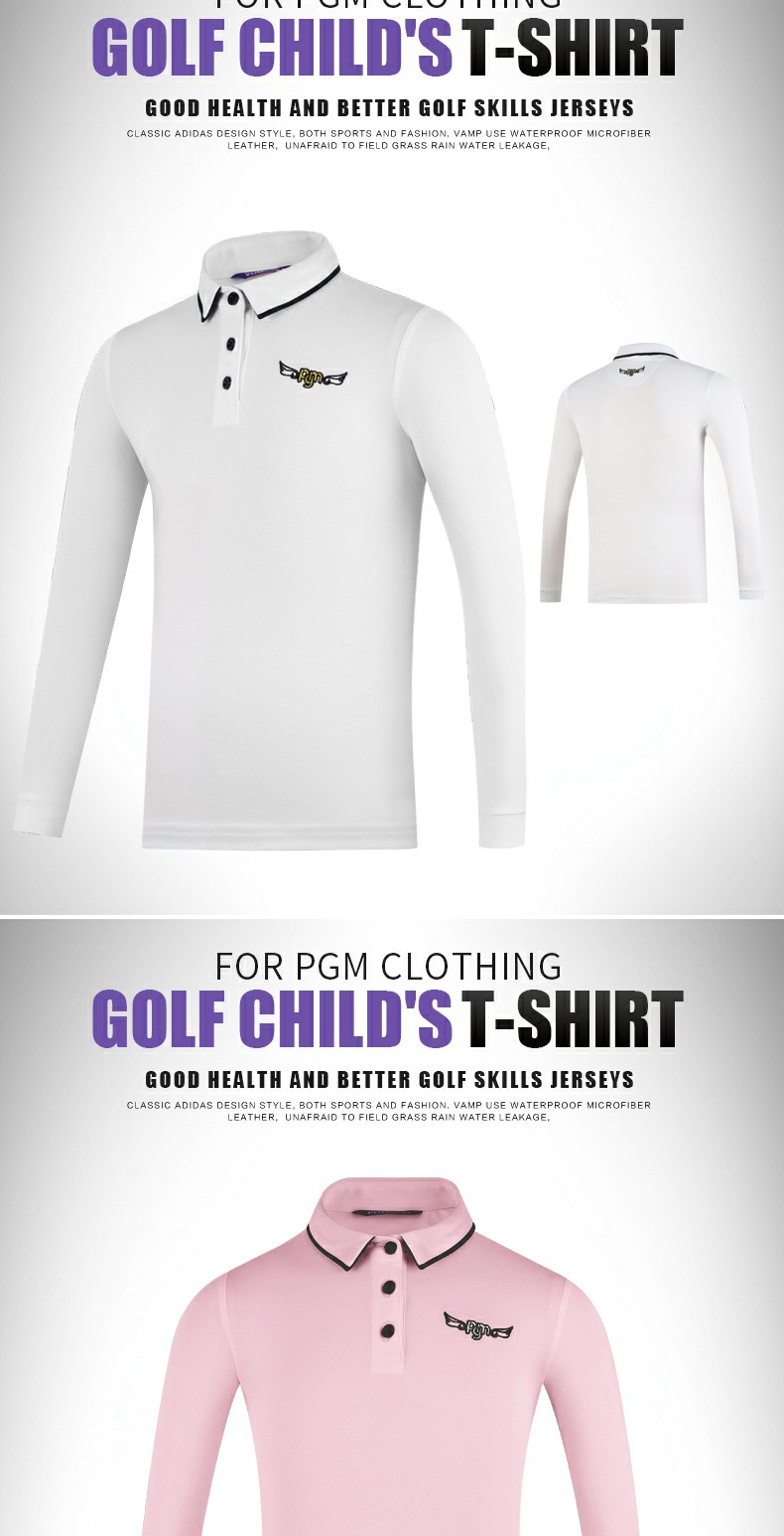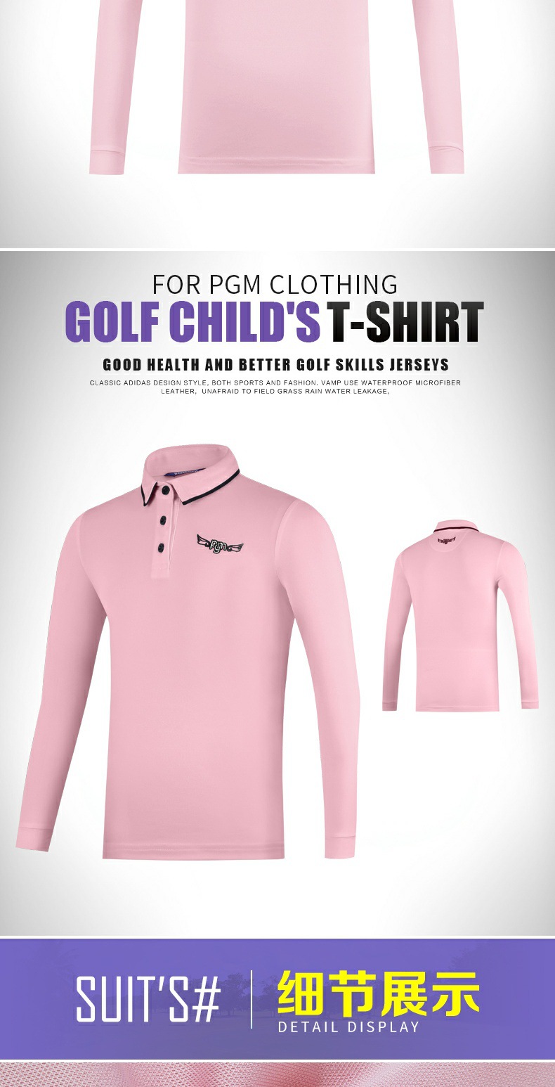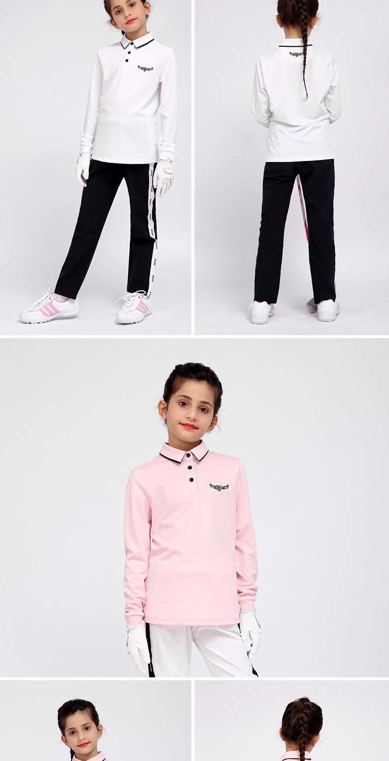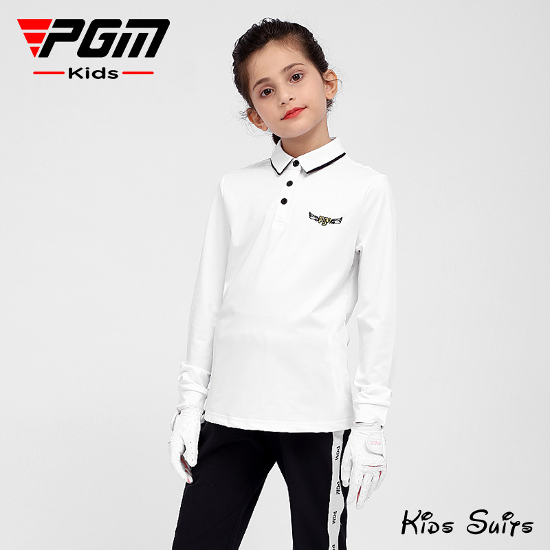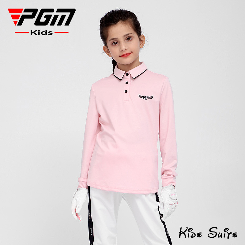 PGM 새로운 어린이 골프 의류 긴팔 티셔츠 소녀 봄과 여름 중간 및 대형 아동복 청소년 스포츠 볼 옷스토어 가기
