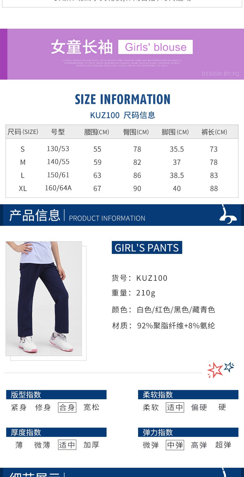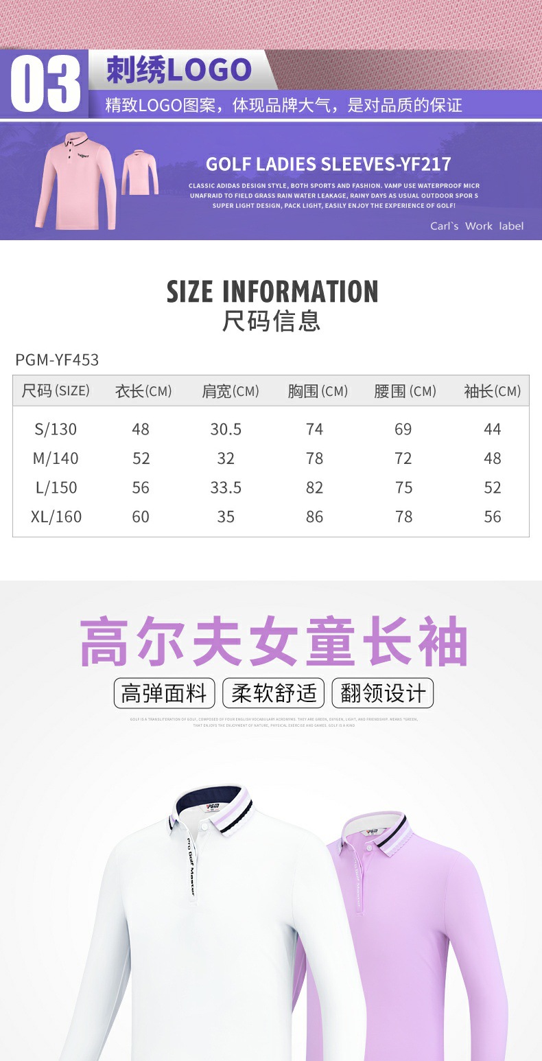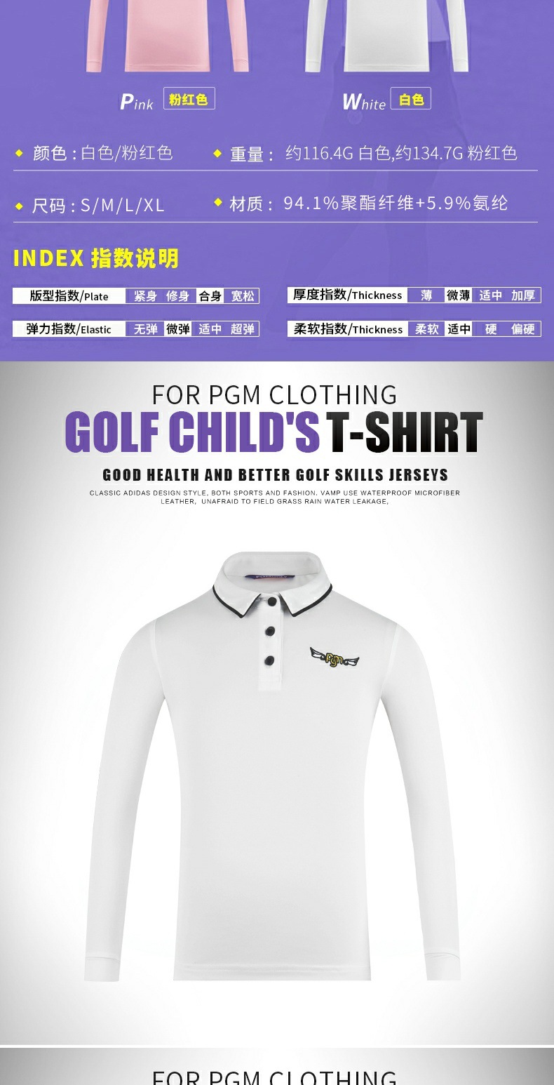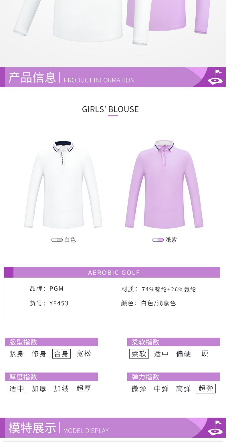 PGM 새로운 어린이 골프 의류 긴팔 티셔츠 소녀 봄과 여름 중간 및 대형 아동복 청소년 스포츠 볼 옷스토어 가기
