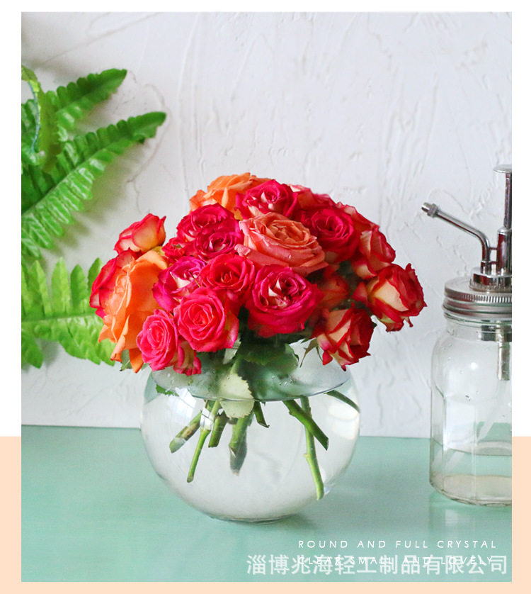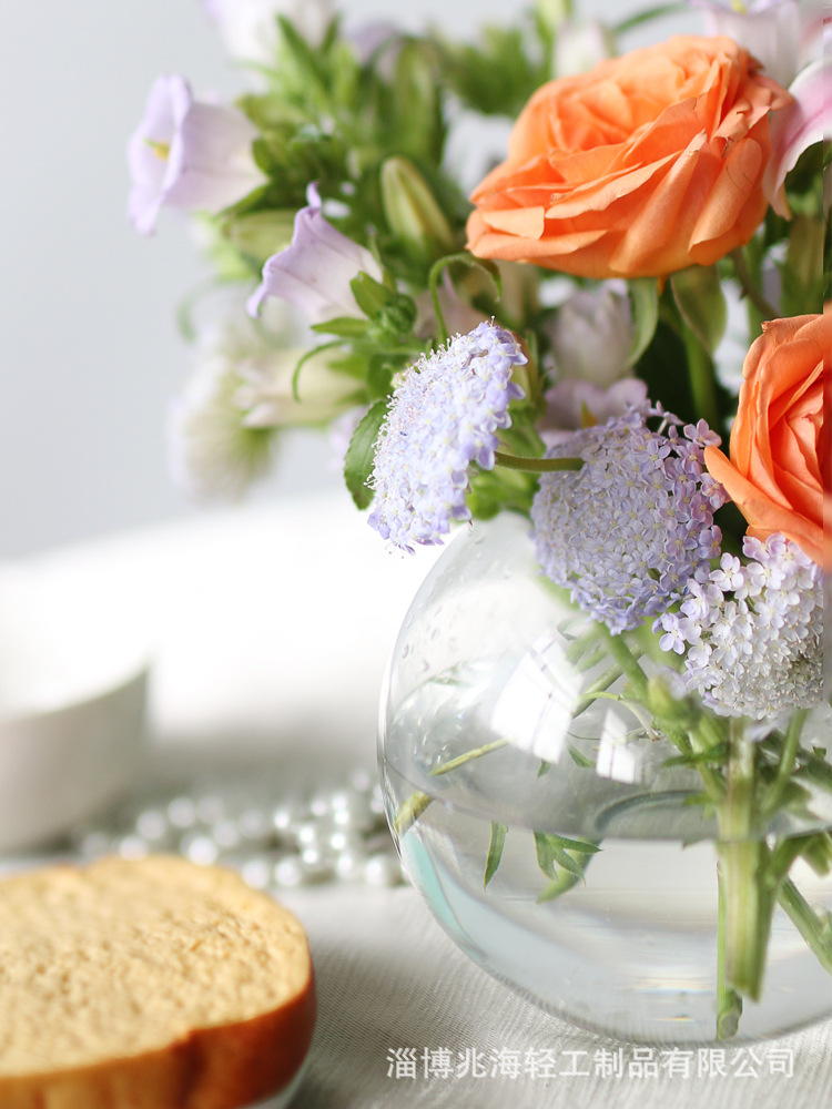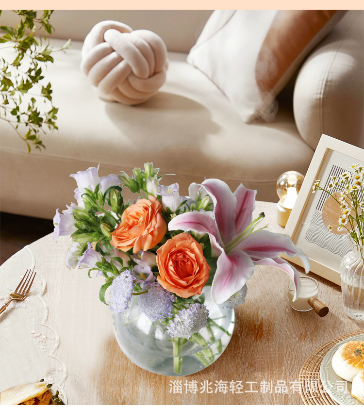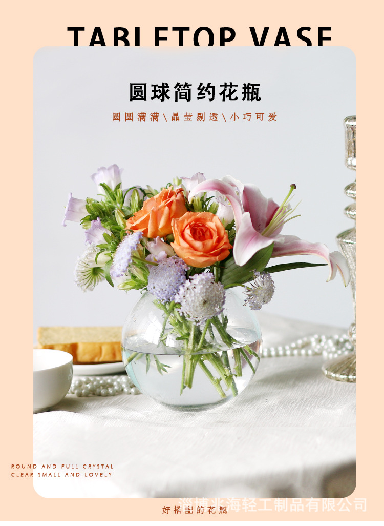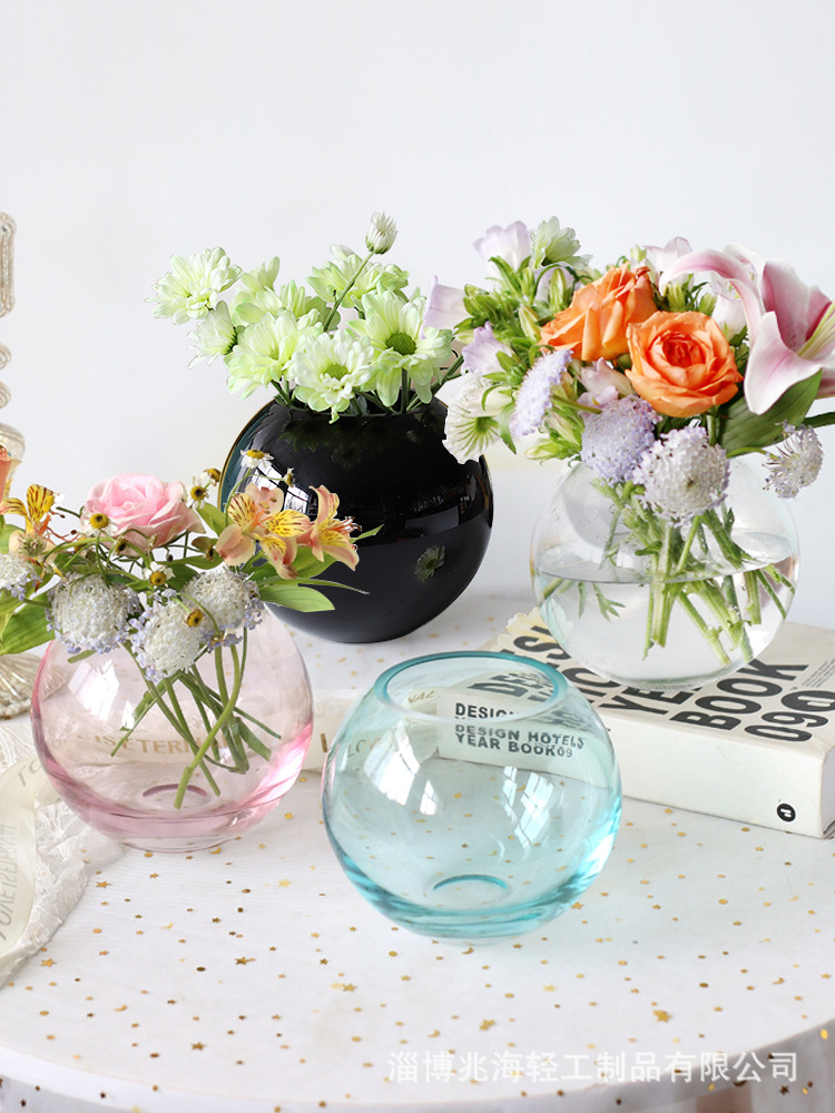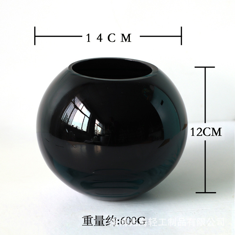 두꺼운 투명 볼 유리 꽃병 블루 거실 꽃 배열 장식품 블랙 하이 엔드 간단한 레스토랑 장식스토어 가기