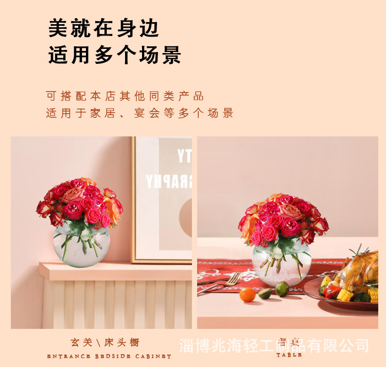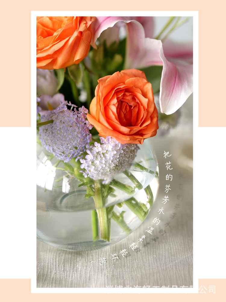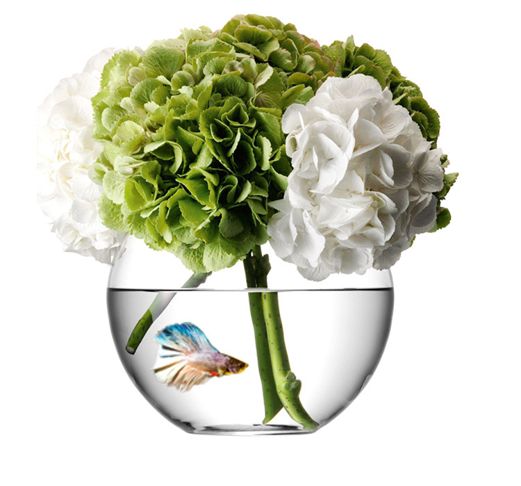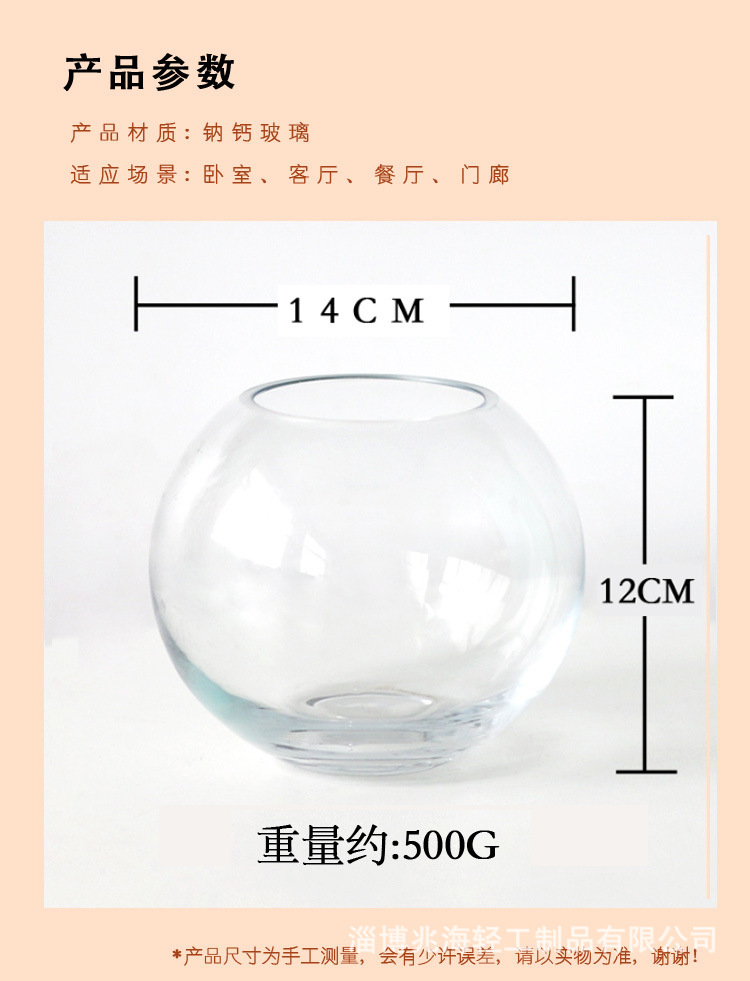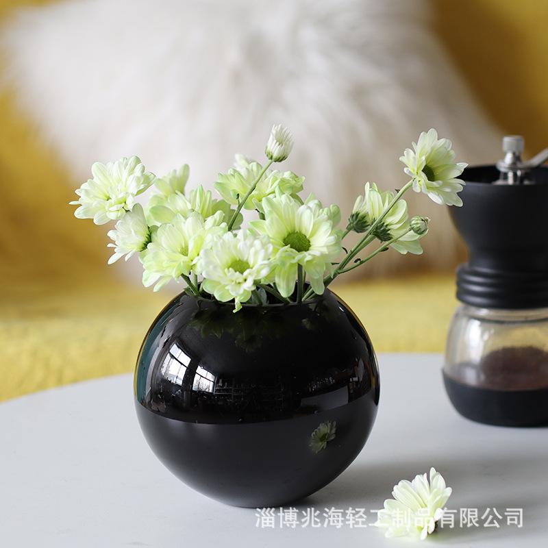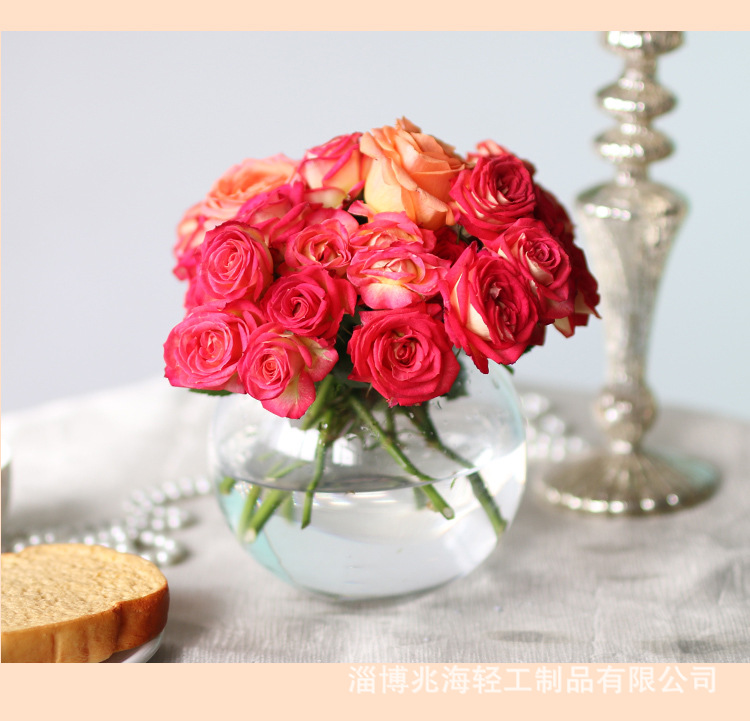 두꺼운 투명 볼 유리 꽃병 블루 거실 꽃 배열 장식품 블랙 하이 엔드 간단한 레스토랑 장식스토어 가기
