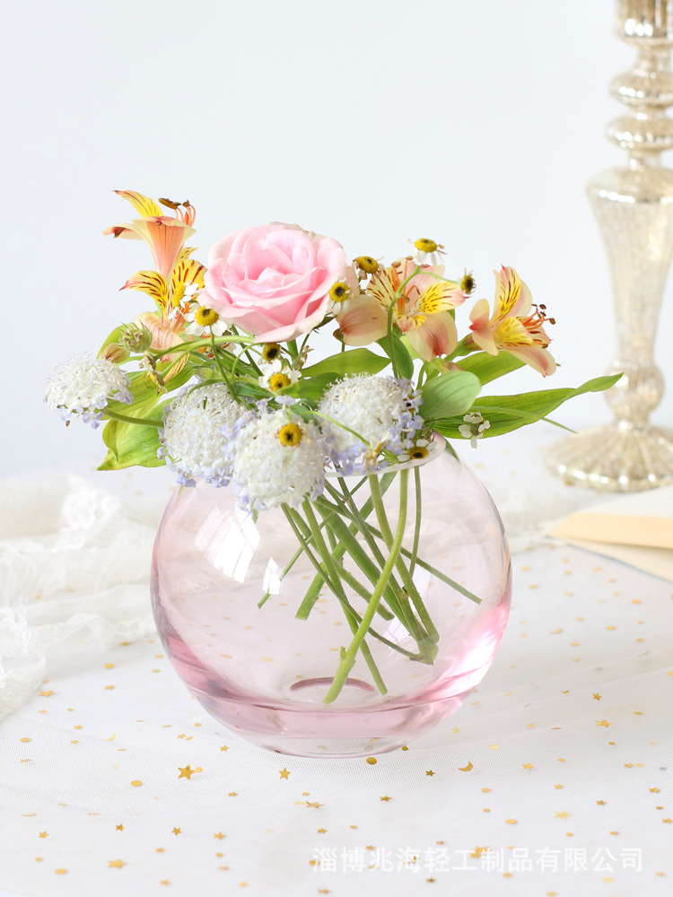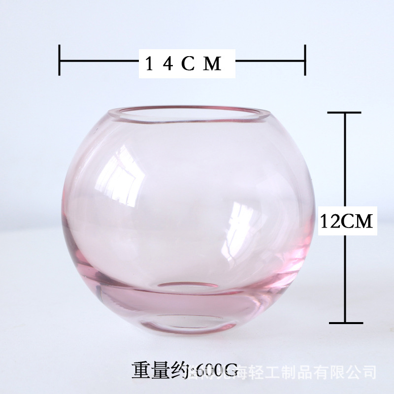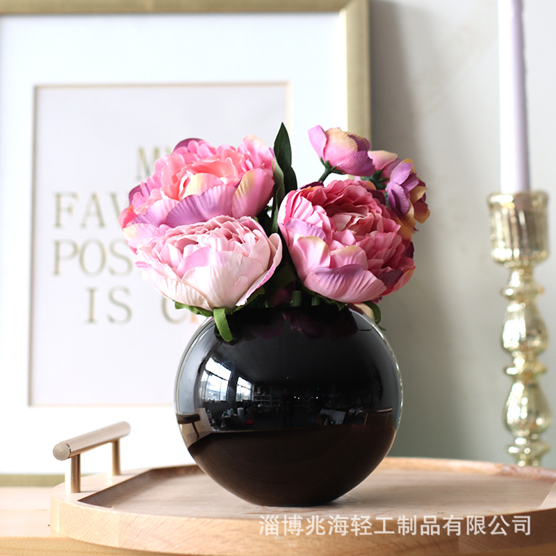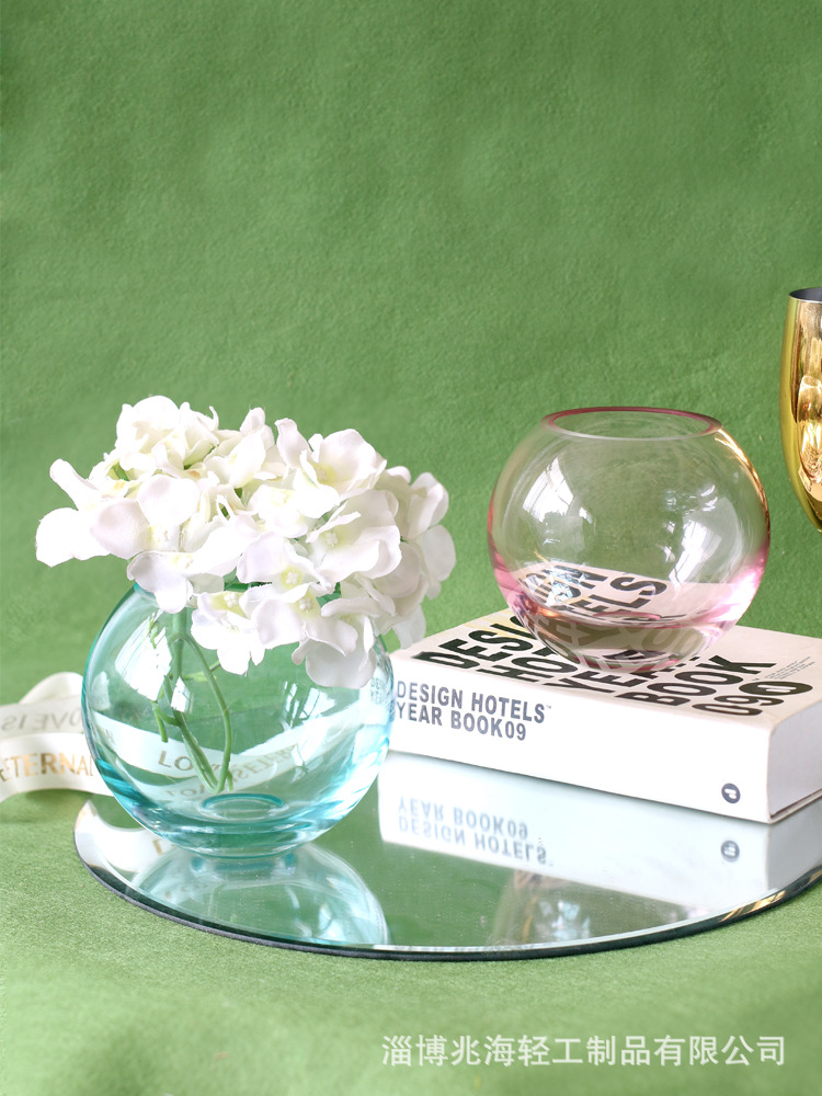 두꺼운 투명 볼 유리 꽃병 블루 거실 꽃 배열 장식품 블랙 하이 엔드 간단한 레스토랑 장식