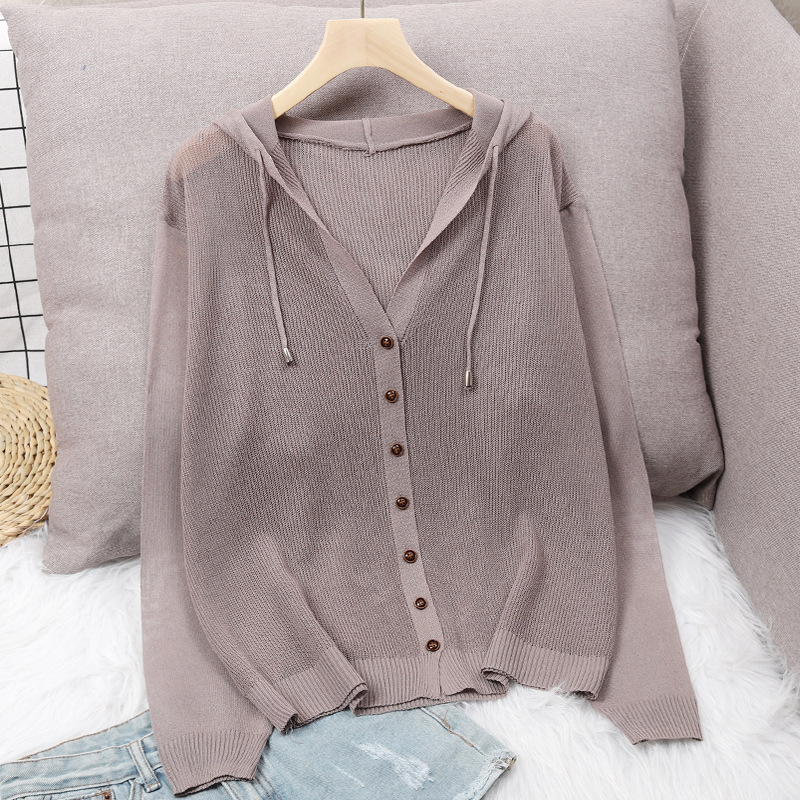 2026 봄/여름 니트 가디건 자켓 여성용 후드탑 크로스보더 무역 아이스 실크 얇은 레이어드 셔츠 자외선 차단 의류스토어 가기