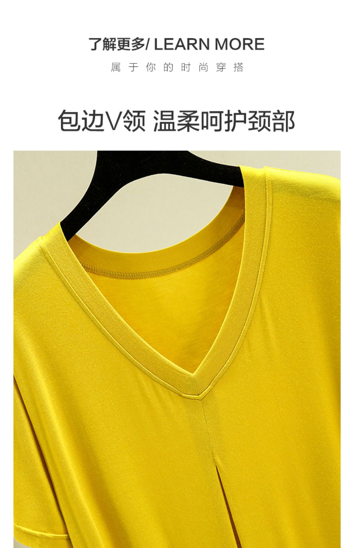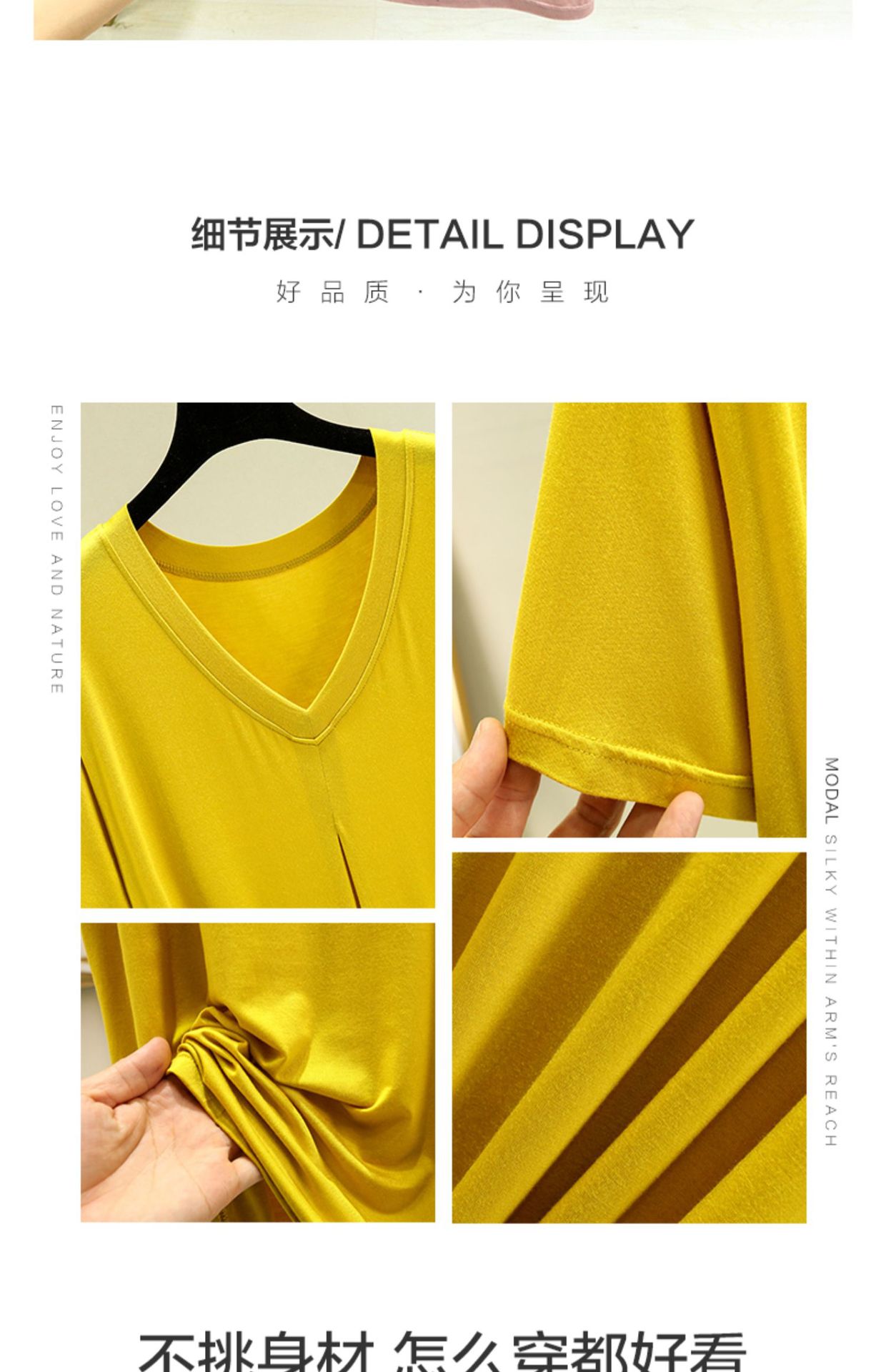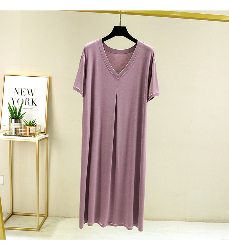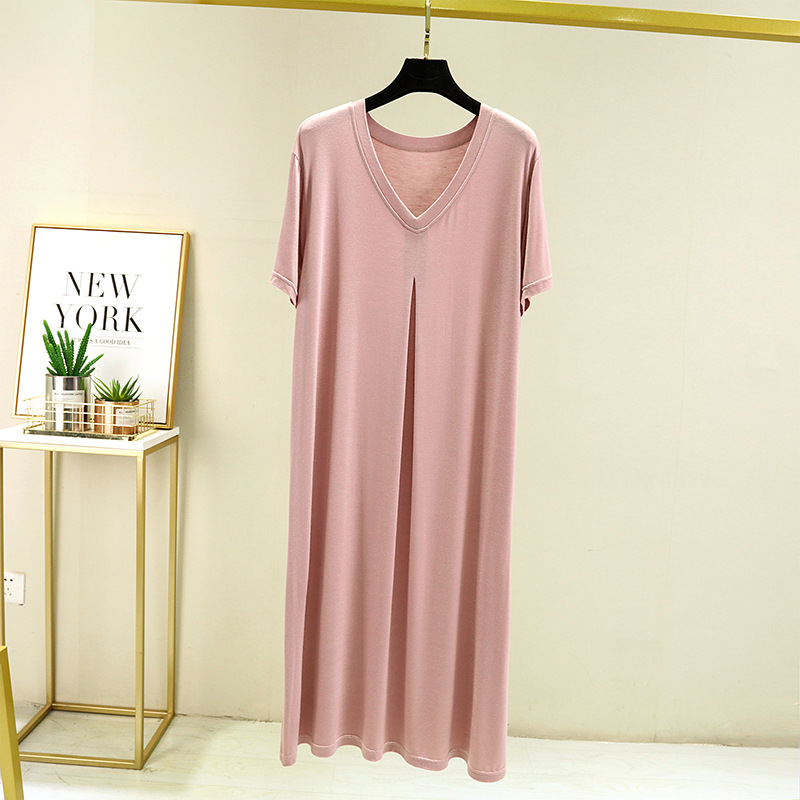 얇은 모달 원피스 여자의 여름 캐주얼 홈 잠옷 반팔 A-라인 원피스 플러스 사이즈 느슨한 슬리밍 긴 원피스