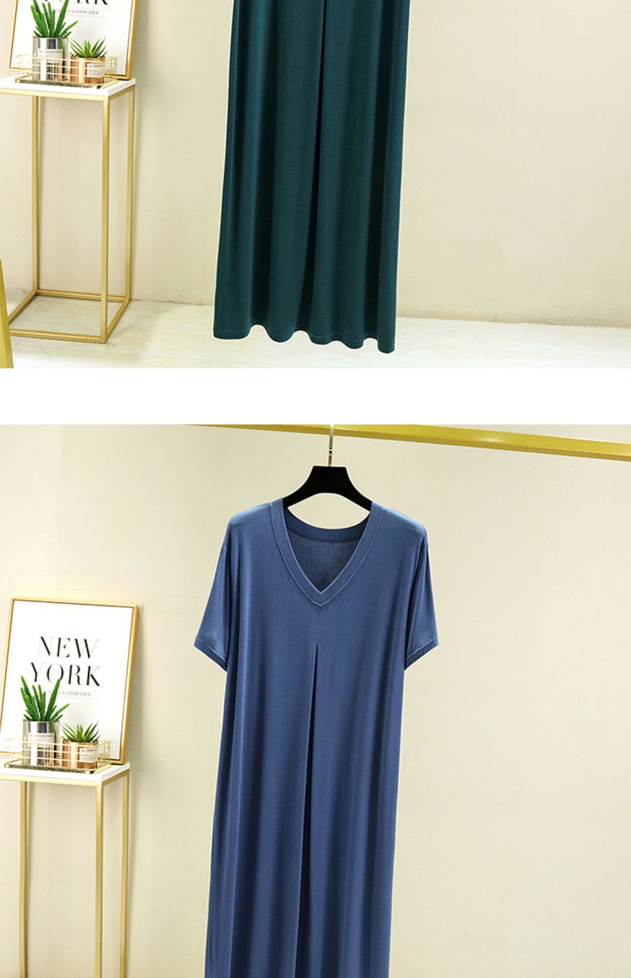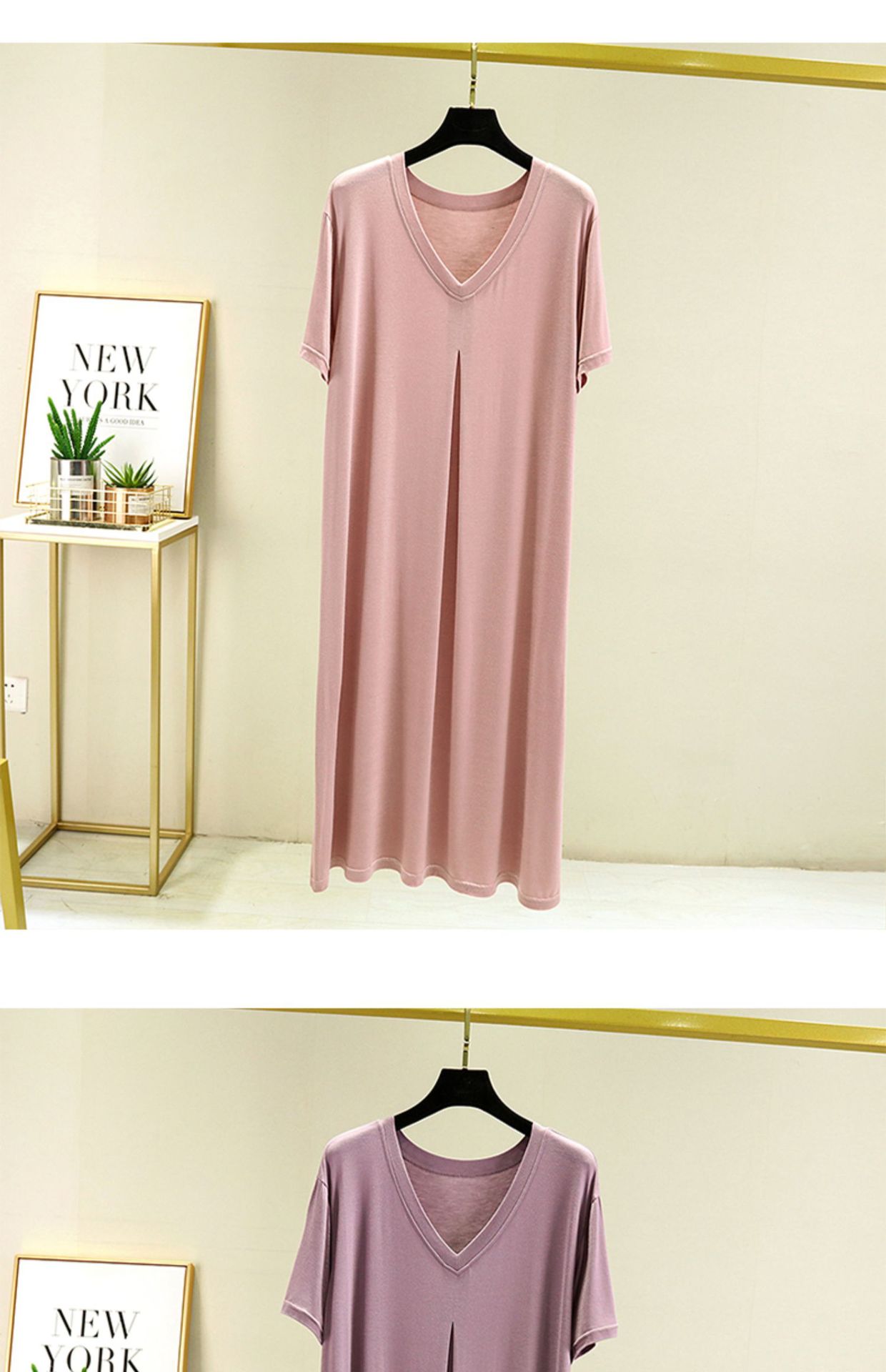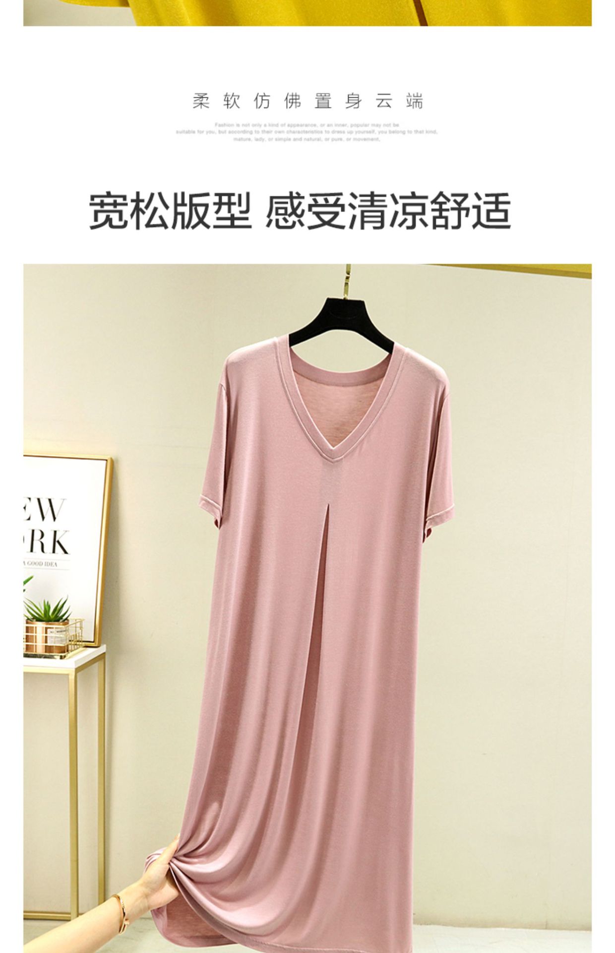 얇은 모달 원피스 여자의 여름 캐주얼 홈 잠옷 반팔 A-라인 원피스 플러스 사이즈 느슨한 슬리밍 긴 원피스스토어 가기