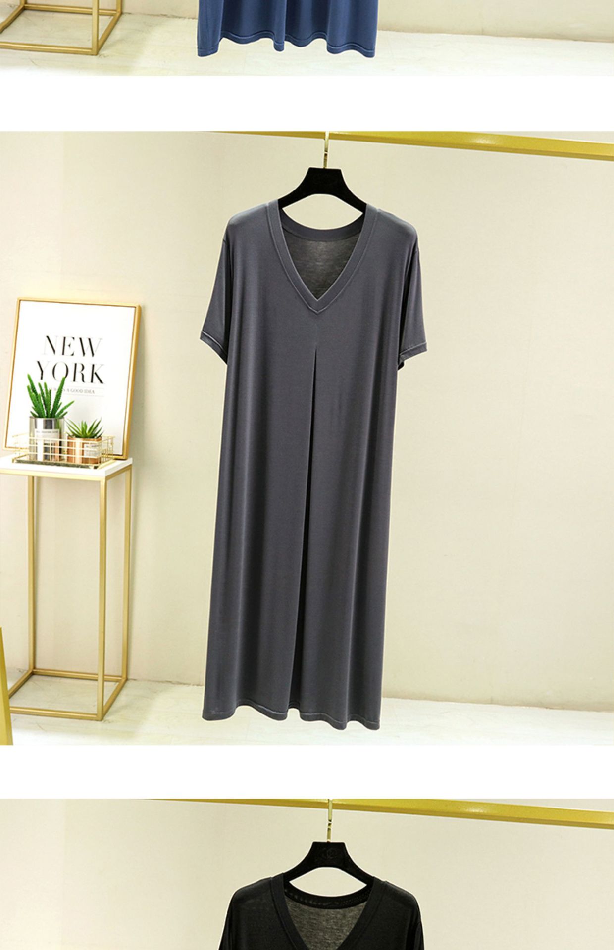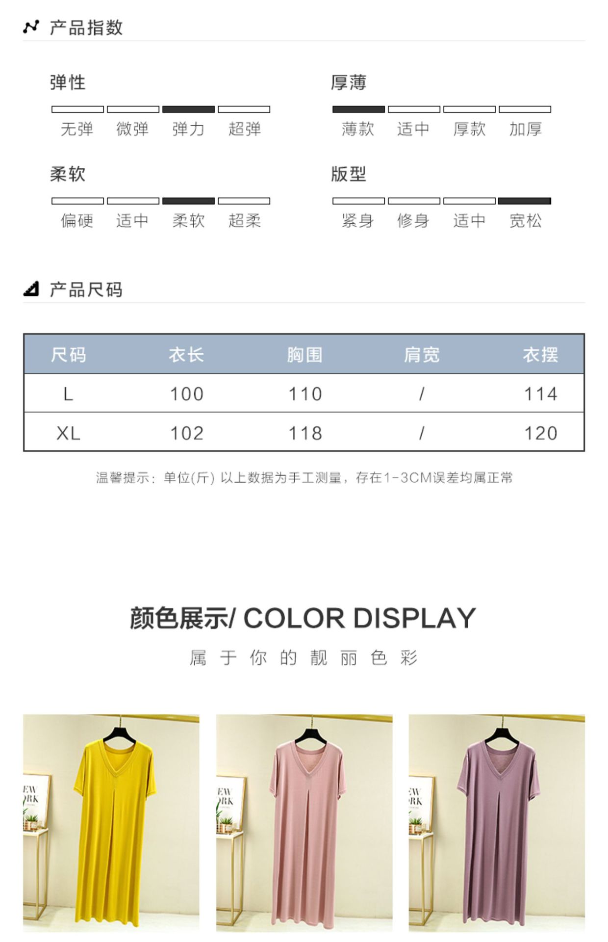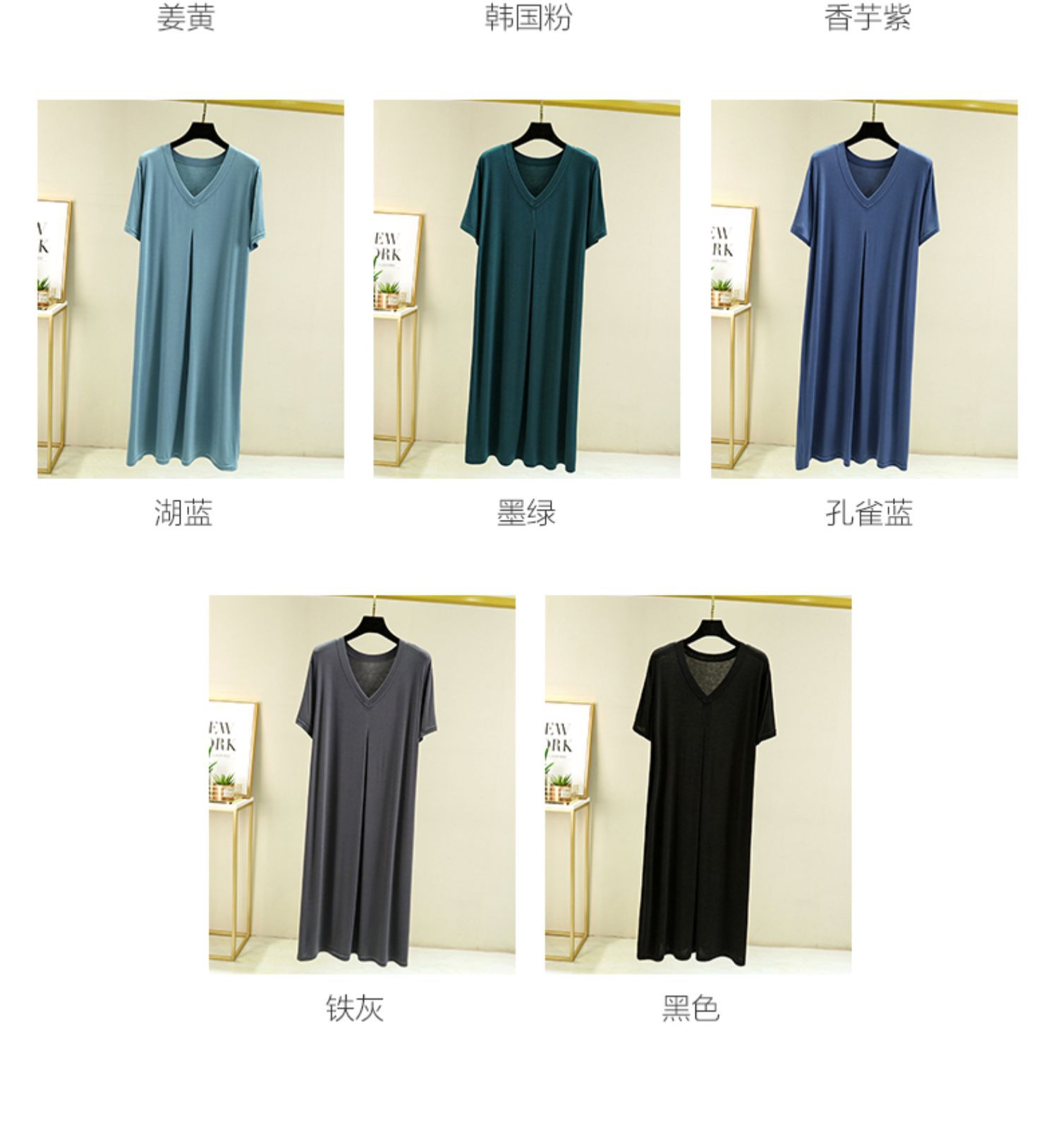 얇은 모달 원피스 여자의 여름 캐주얼 홈 잠옷 반팔 A-라인 원피스 플러스 사이즈 느슨한 슬리밍 긴 원피스스토어 가기