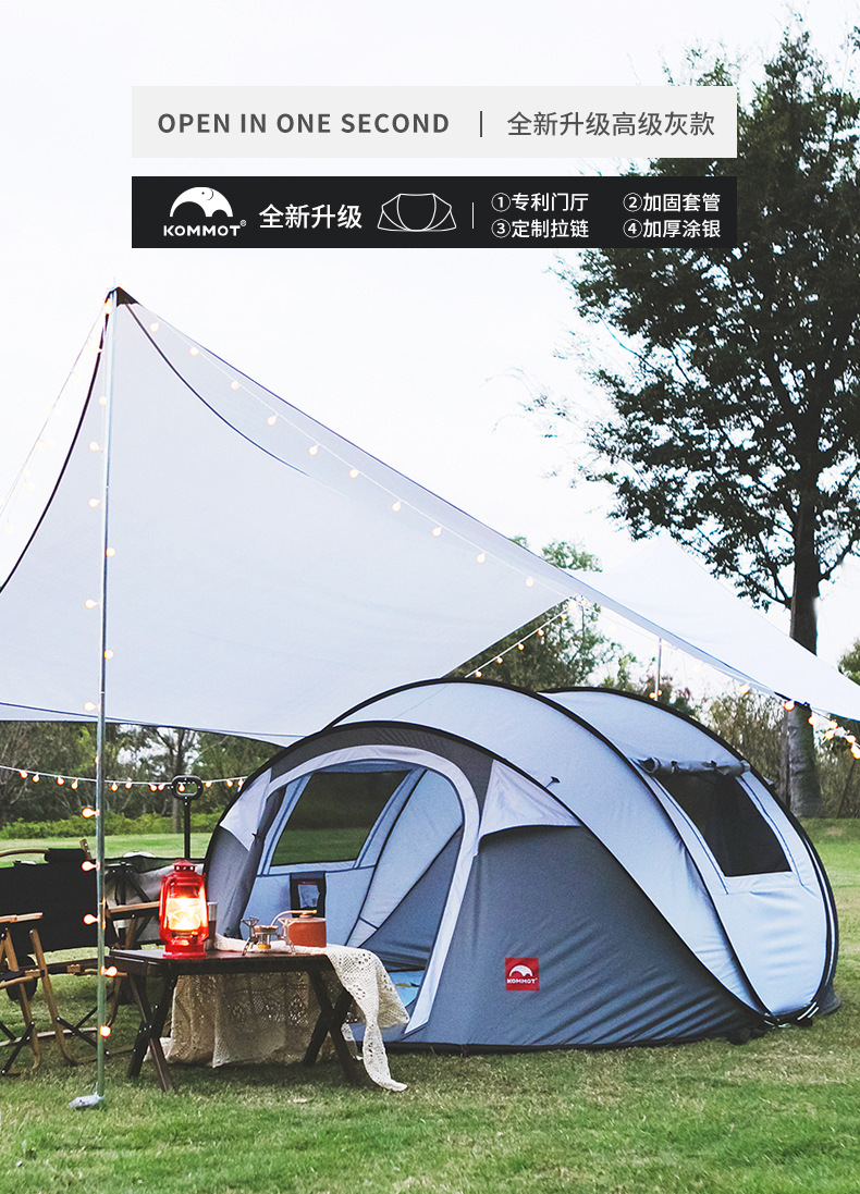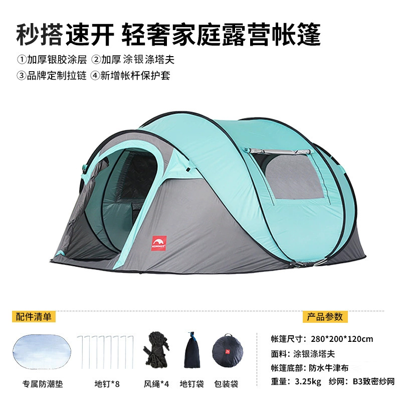 KOMMOT Muche 두 번째 빠른 개방 완전 자동 텐트 야외 휴대용 접이식 캠핑 텐트 방수 및 두꺼워짐스토어 가기