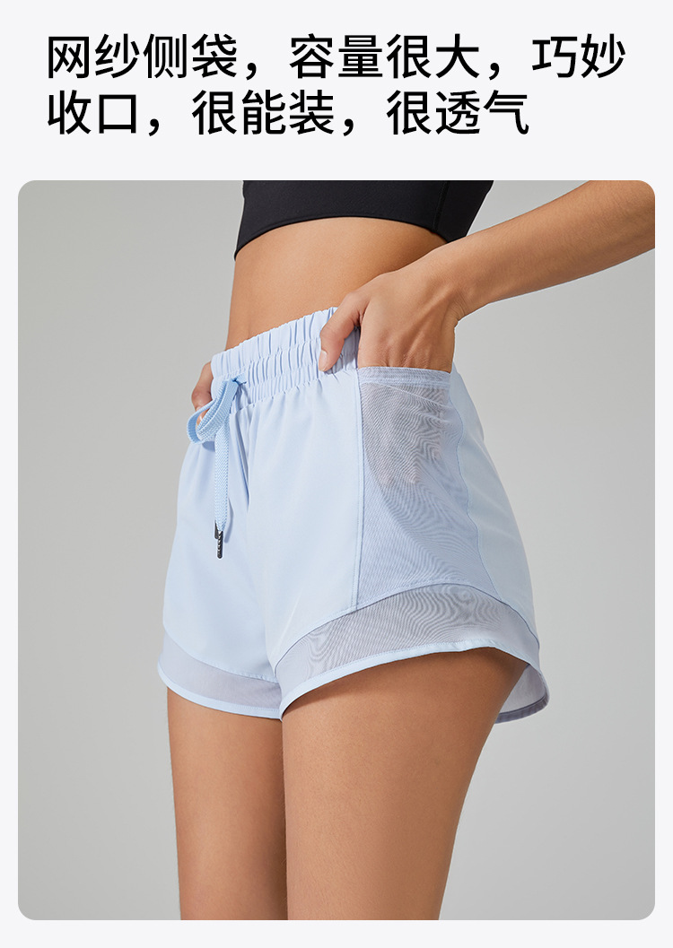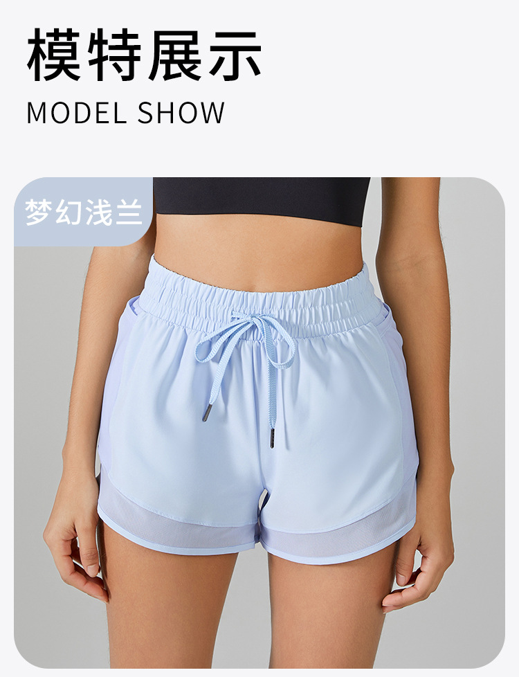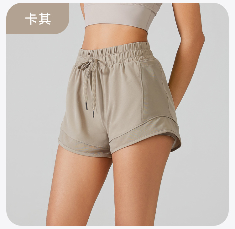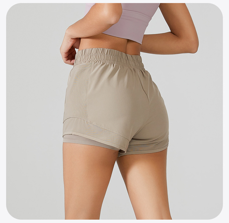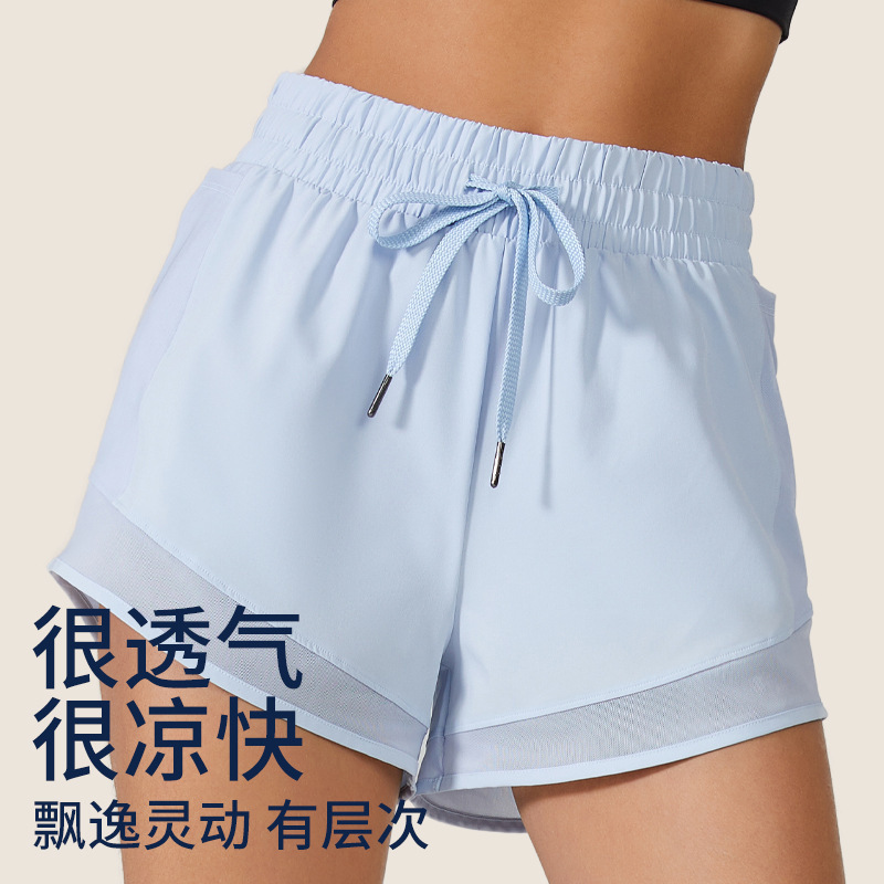 여름 유럽 및 미국 가짜 투피스 스포츠 반바지 여성용 걷기 방지 달리기 훈련 피트니스 바지 하이 웨이스트 느슨한 통기성 요가 바지스토어 가기