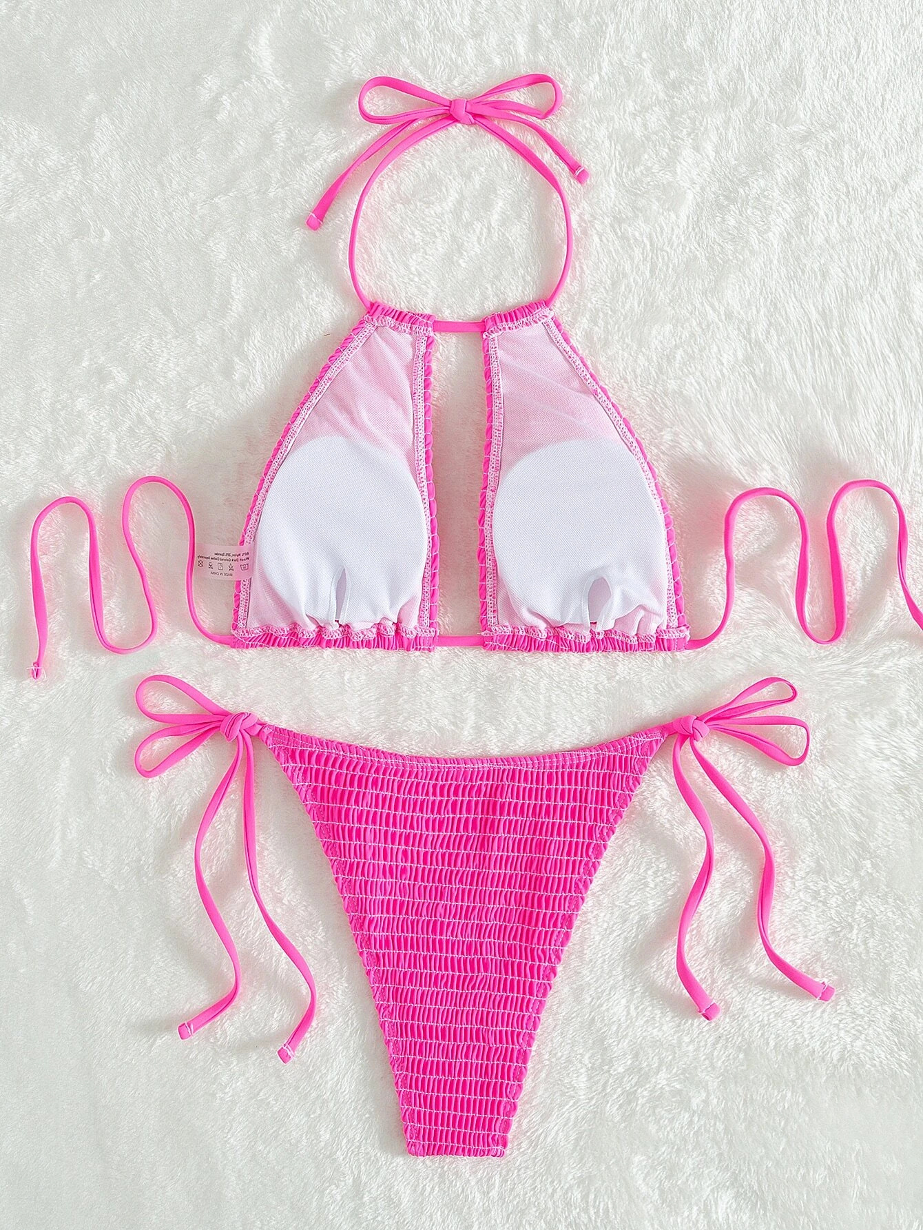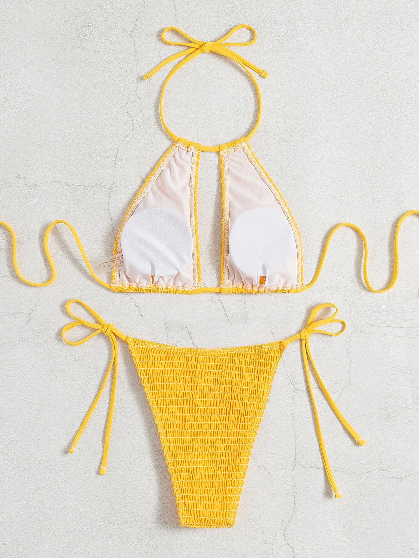 멀티 컬러 특수 패브릭 비키니 투피스 유럽과 미국 패션 수영복 여성용 세트 분할 섹시한 비치 수영복