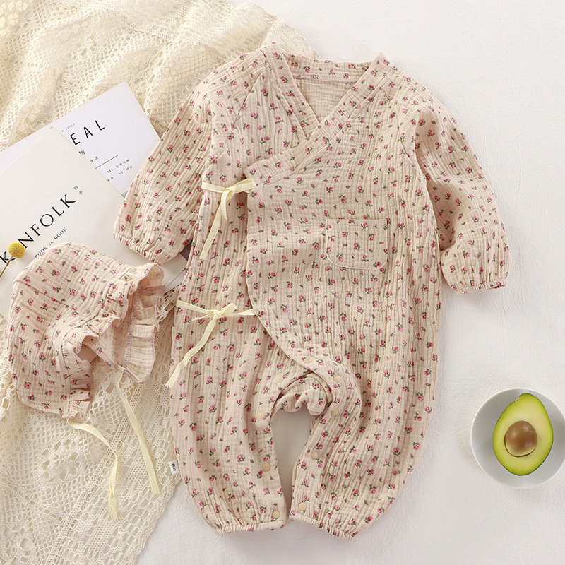 아기 소녀의 원피스 세트 봄과 가을 소녀의 귀여운 꽃 크롤링 세트 아기의 집 세트 코튼 태양 모자를 제공합니다스토어 가기
