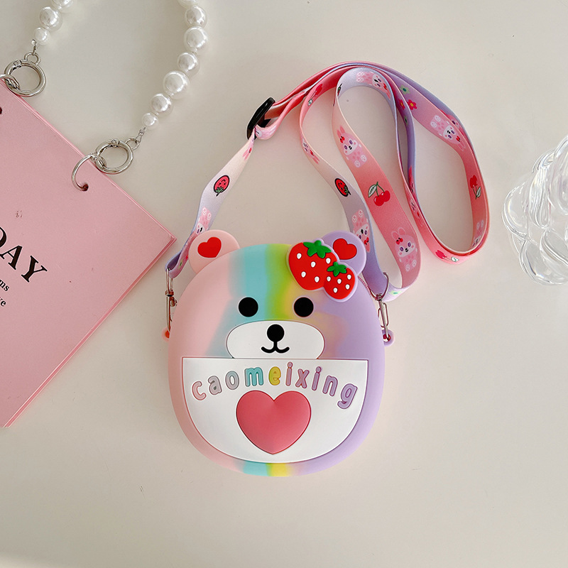 귀여운 어린이용 실리콘 숄더백 2023년 신상 한국판 크로스백 여아용 만화 귀여운 인형 가방 동전 지갑
