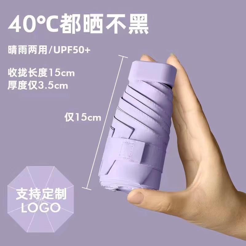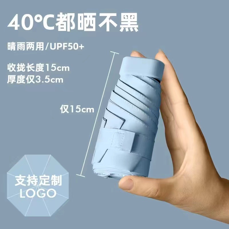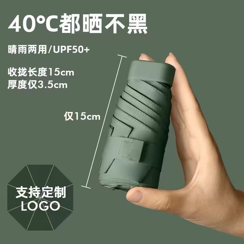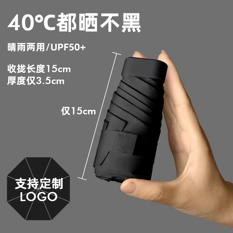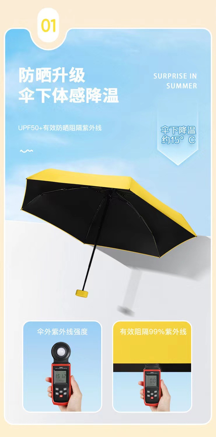 플랫 60% 접이식 검은 고무 태양 보호 차양 미니 우산 여성과 학생을 위한 초경량 우산 편리한 접이식 태양 우산 이중 사용