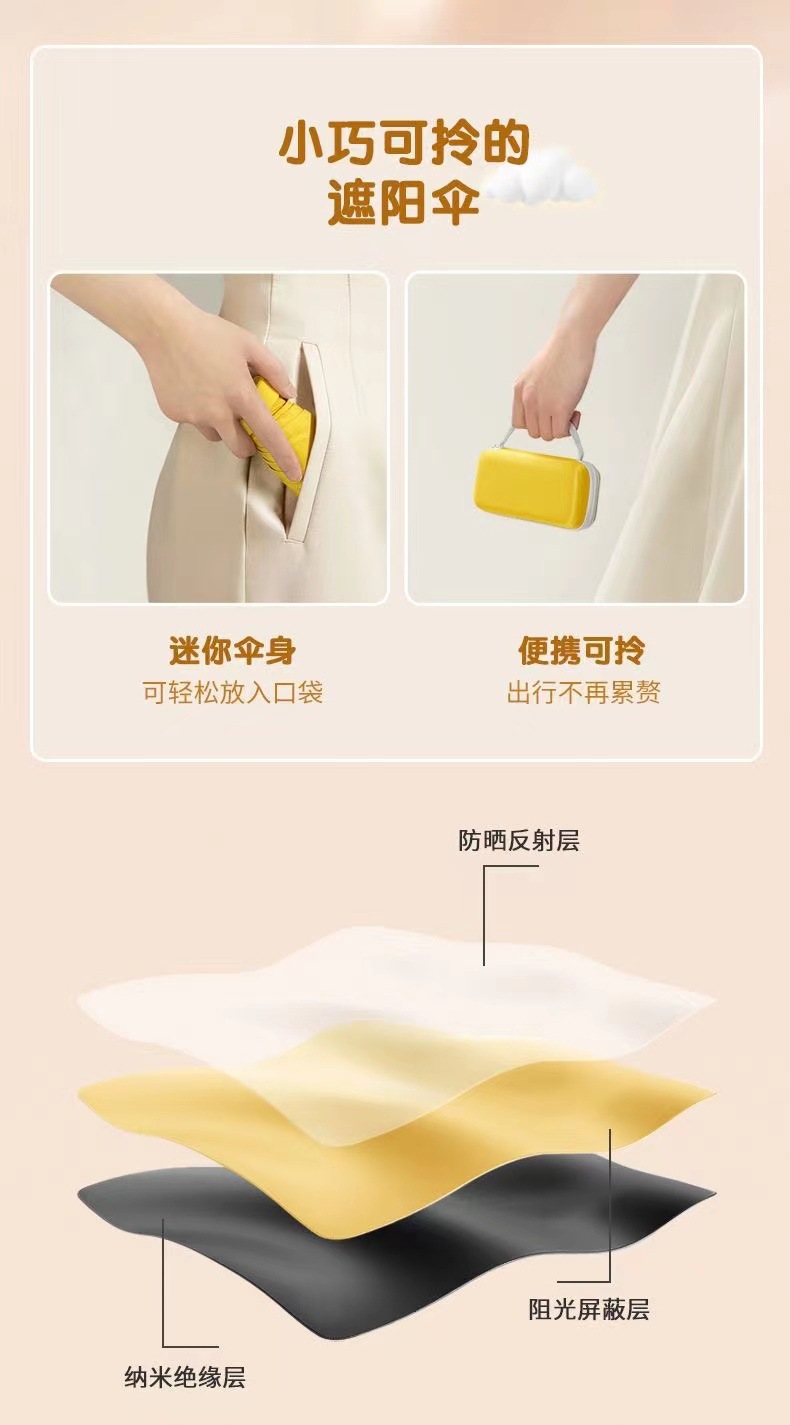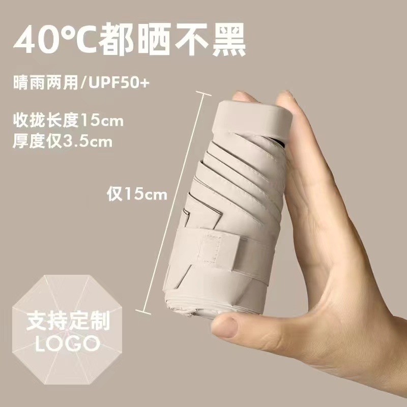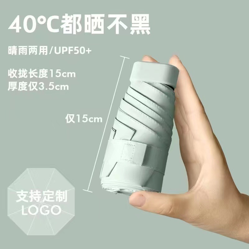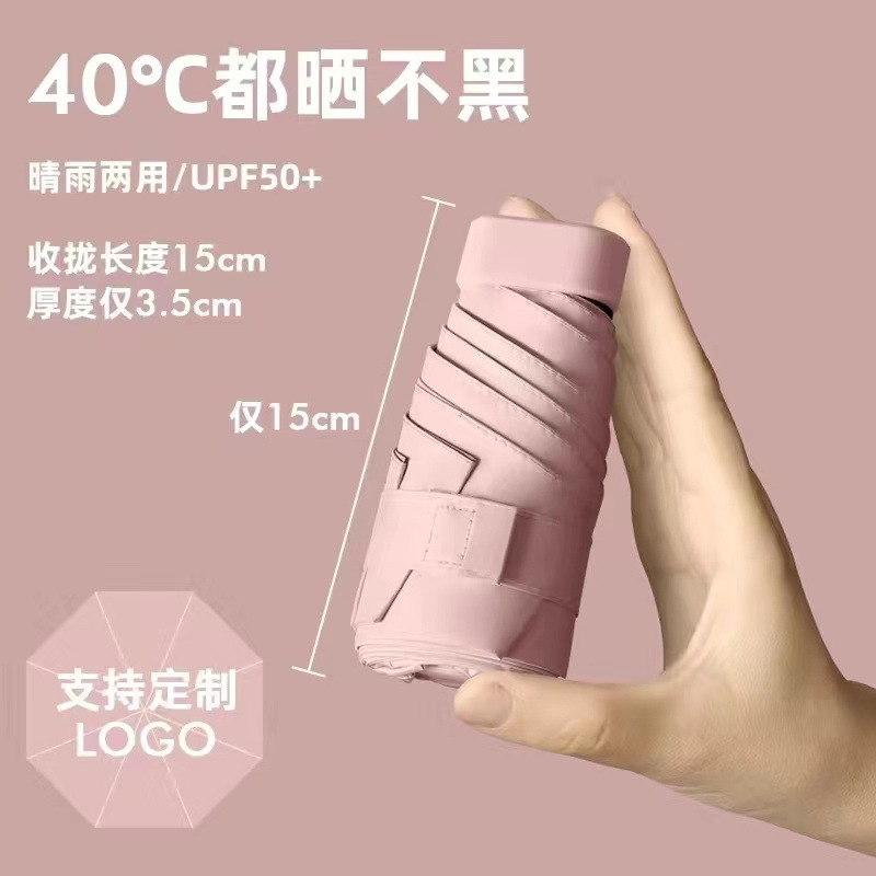 플랫 60% 접이식 검은 고무 태양 보호 차양 미니 우산 여성과 학생을 위한 초경량 우산 편리한 접이식 태양 우산 이중 사용