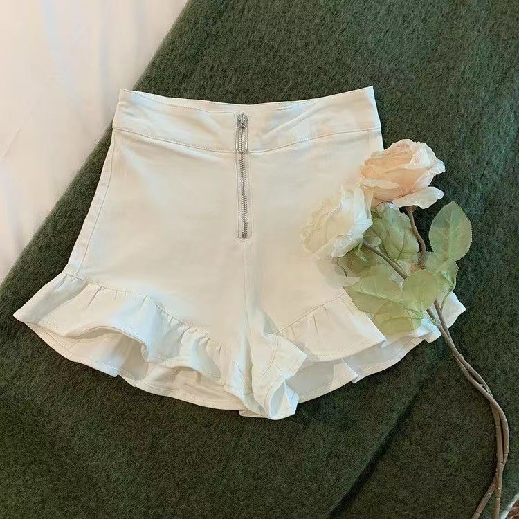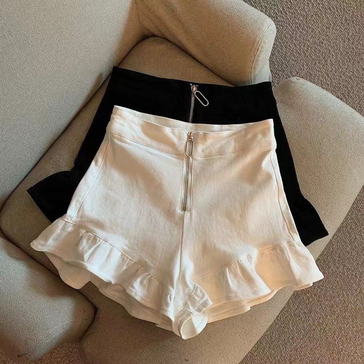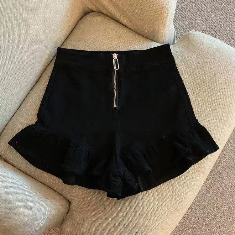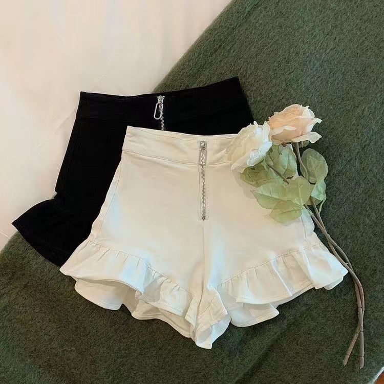 여아 여름 러플 와이드 레그 반바지 한국 스타일 새로운 스타일 지퍼 탄성 하이 웨이스트 트렌디 중간 크기 어린이 단색 핫 팬츠스토어 가기
