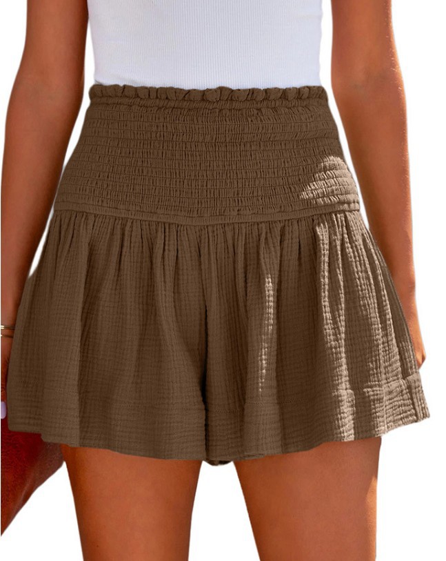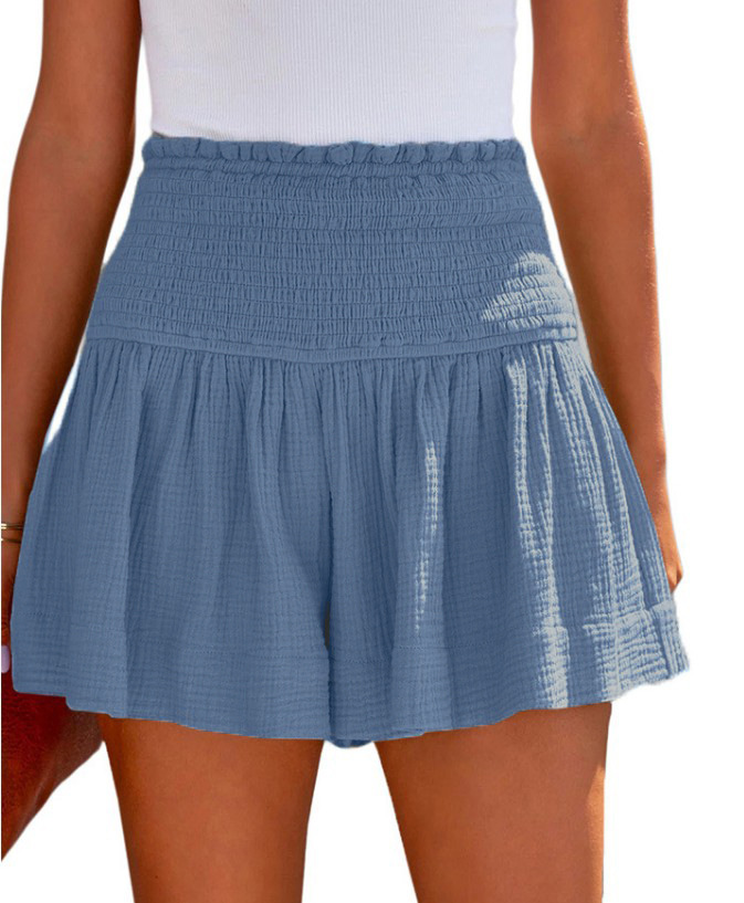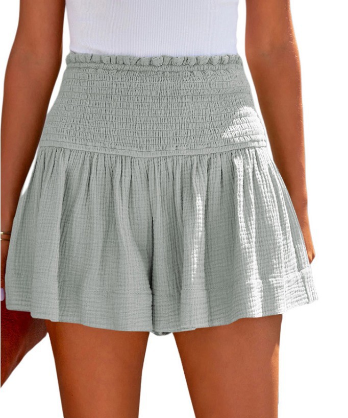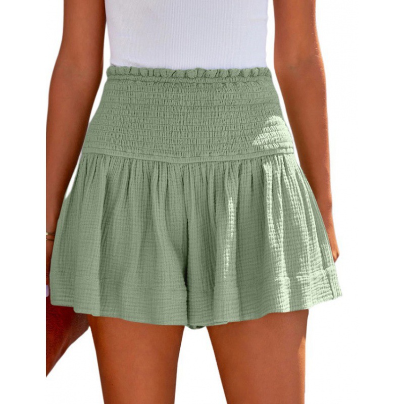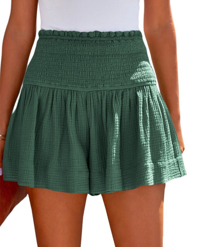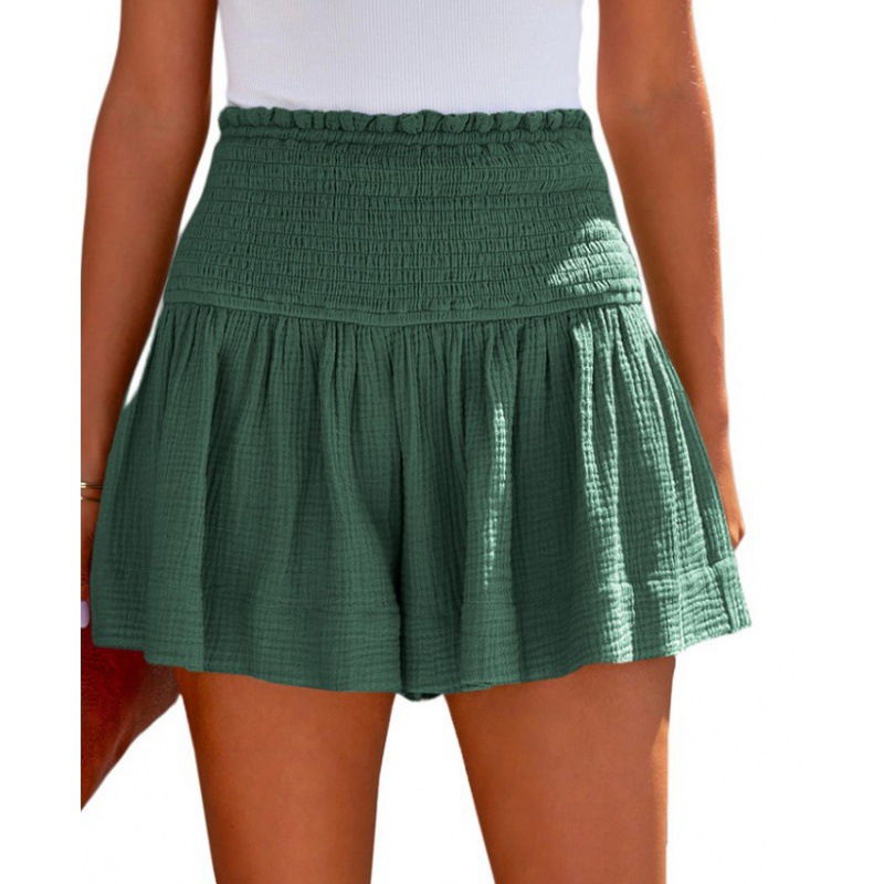 아마존 2023 봄과 여름 새로운 단색 높은 허리 주름 반바지 유럽과 미국의 캐주얼 코튼 및 린넨 여성용 3 바지