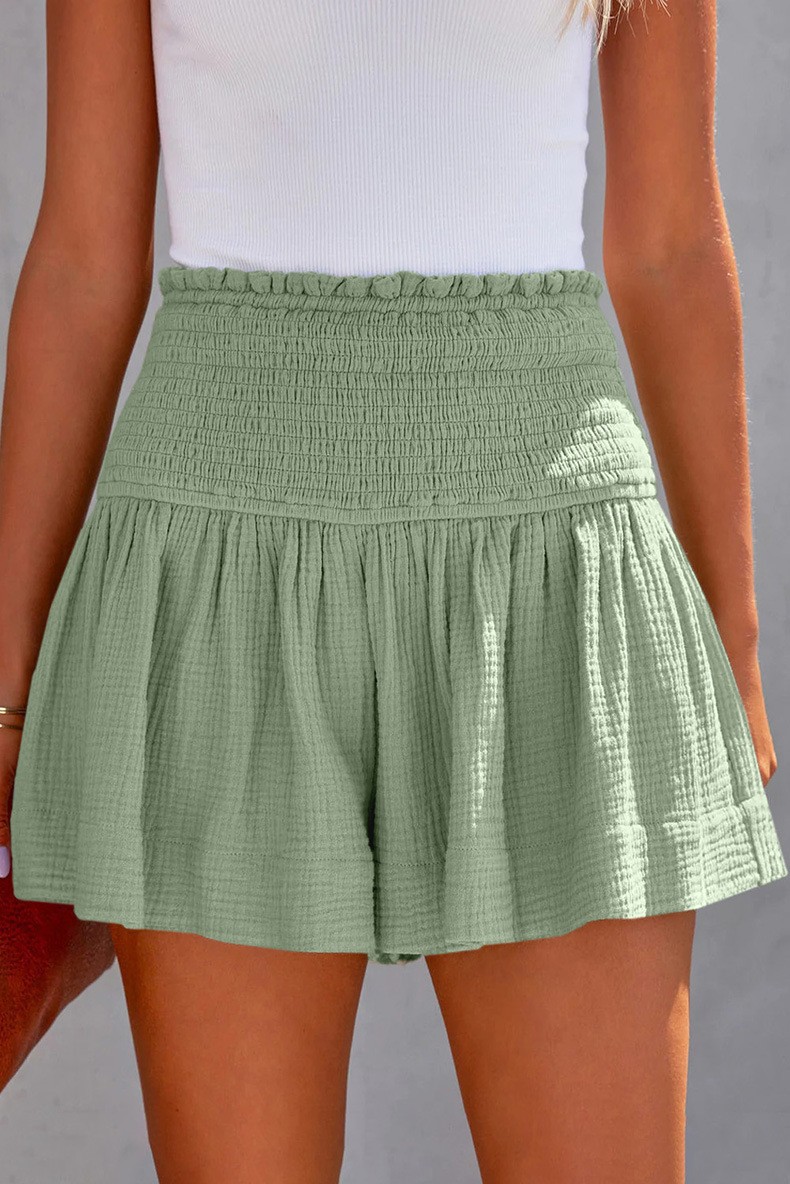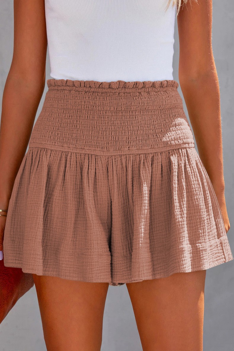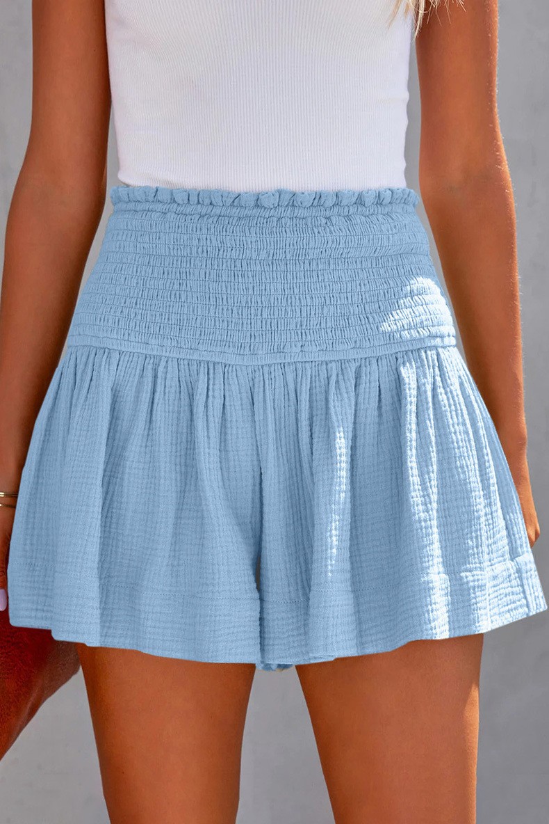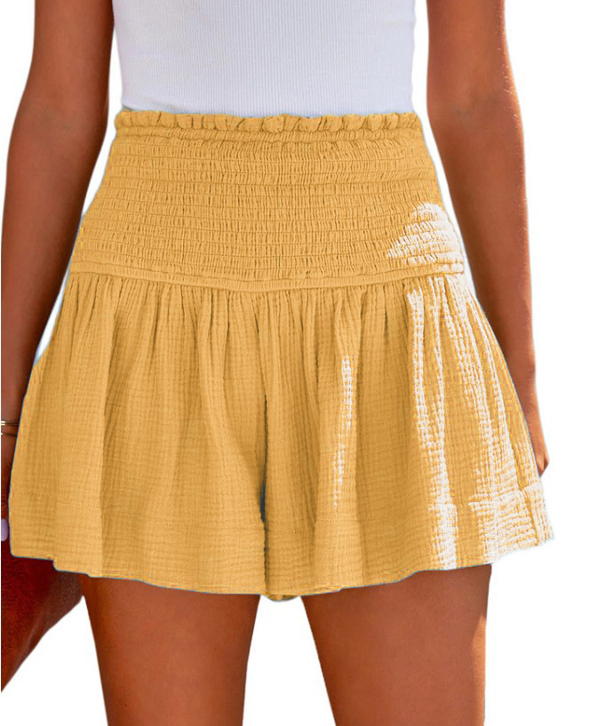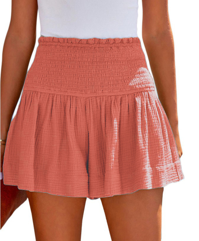 아마존 2023 봄과 여름 새로운 단색 높은 허리 주름 반바지 유럽과 미국의 캐주얼 코튼 및 린넨 여성용 3 바지