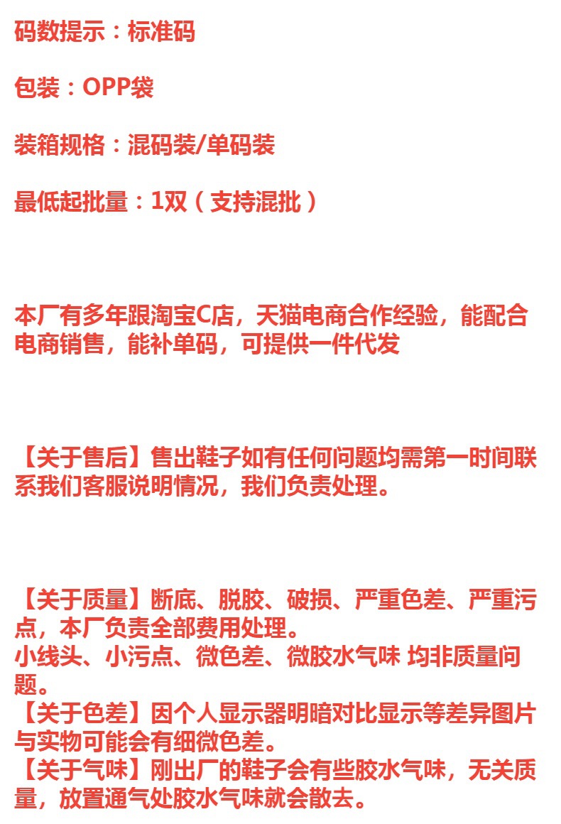 【关于售后】售出鞋子如有任何问题均需第一时间联系我们客服说明情况,我们负责处理。