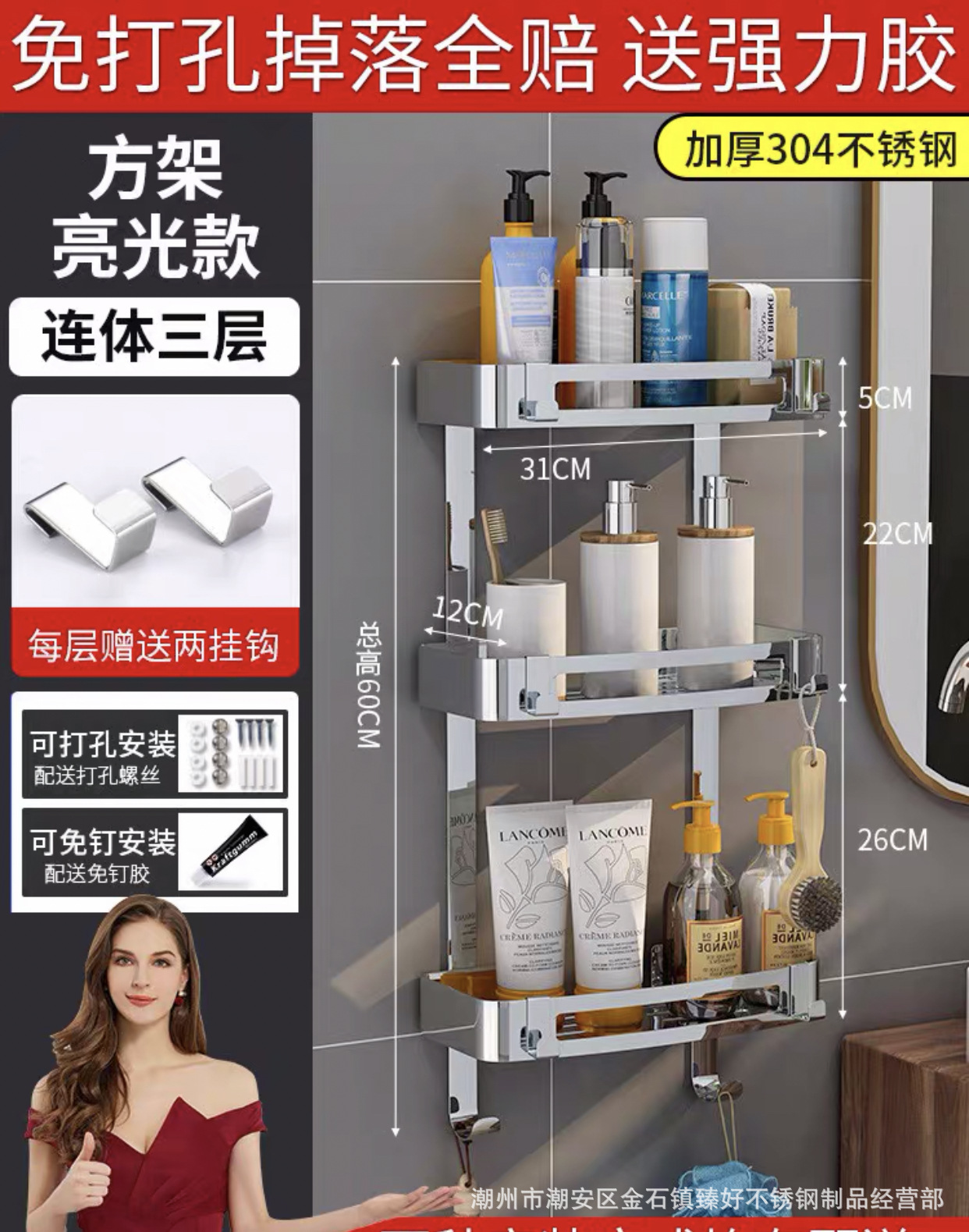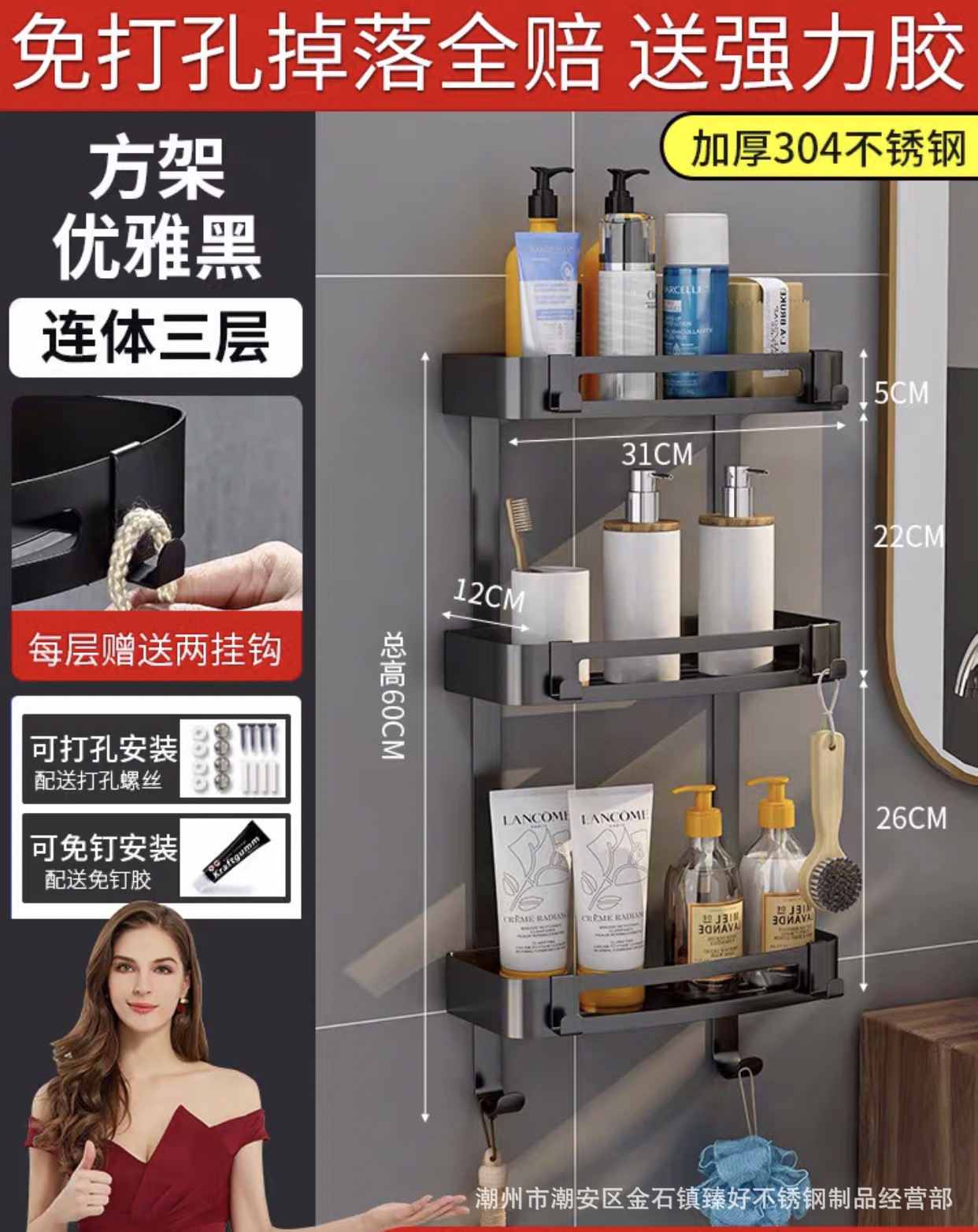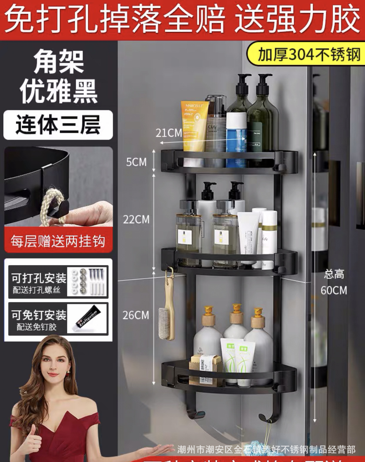 • 후면 후크가있는 스테인레스 스틸 이중층 삼각대 (펀치 프리 이중 용도)