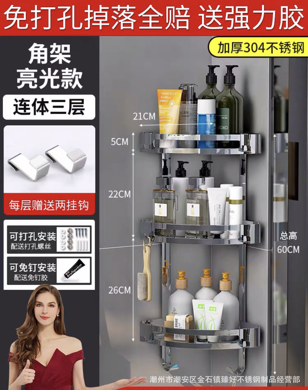304 스테인레스 스틸 삼각대 화장실 랙 욕실 코너 랙 화장실 랙 벽걸이 욕실 랙스토어 가기
