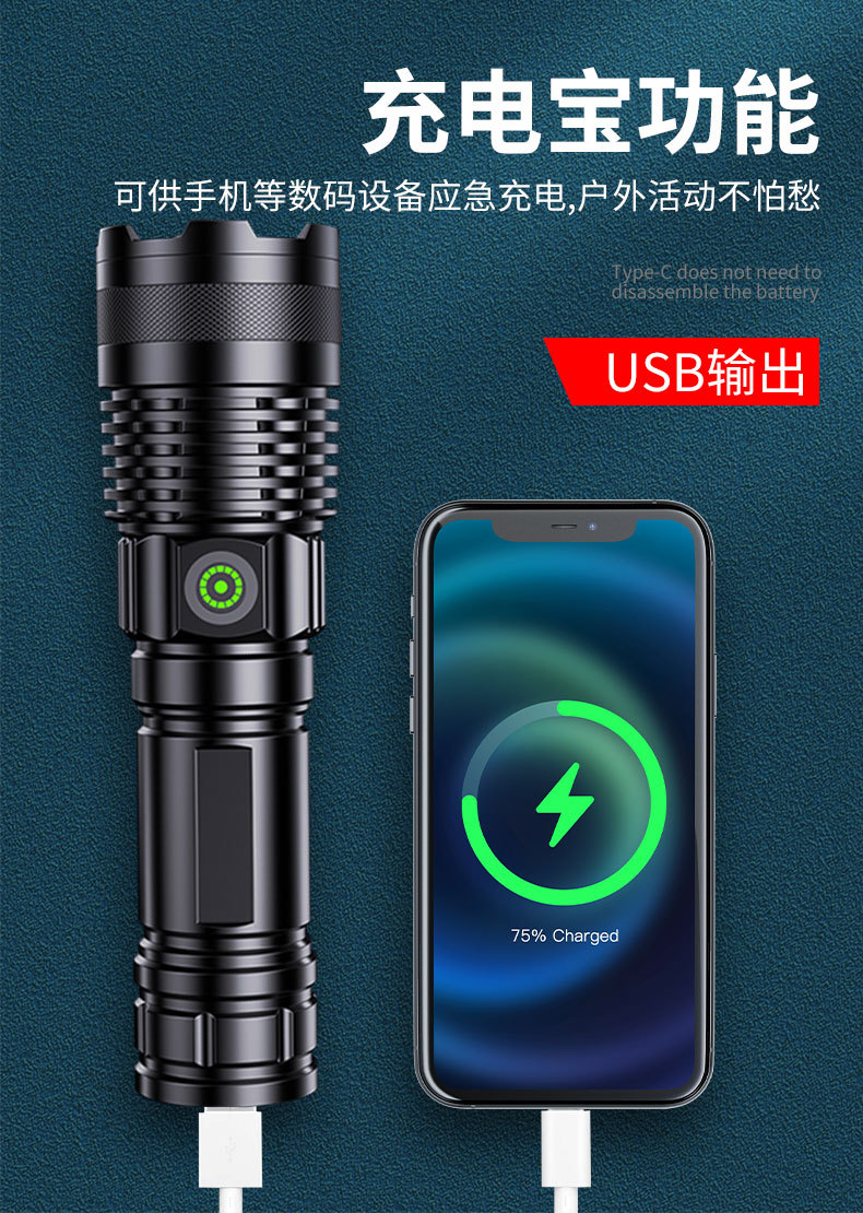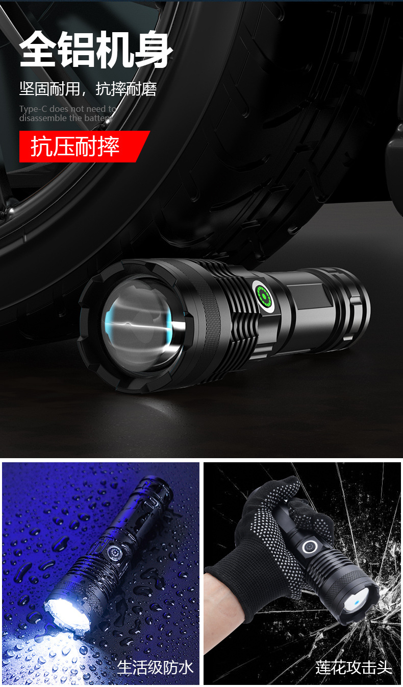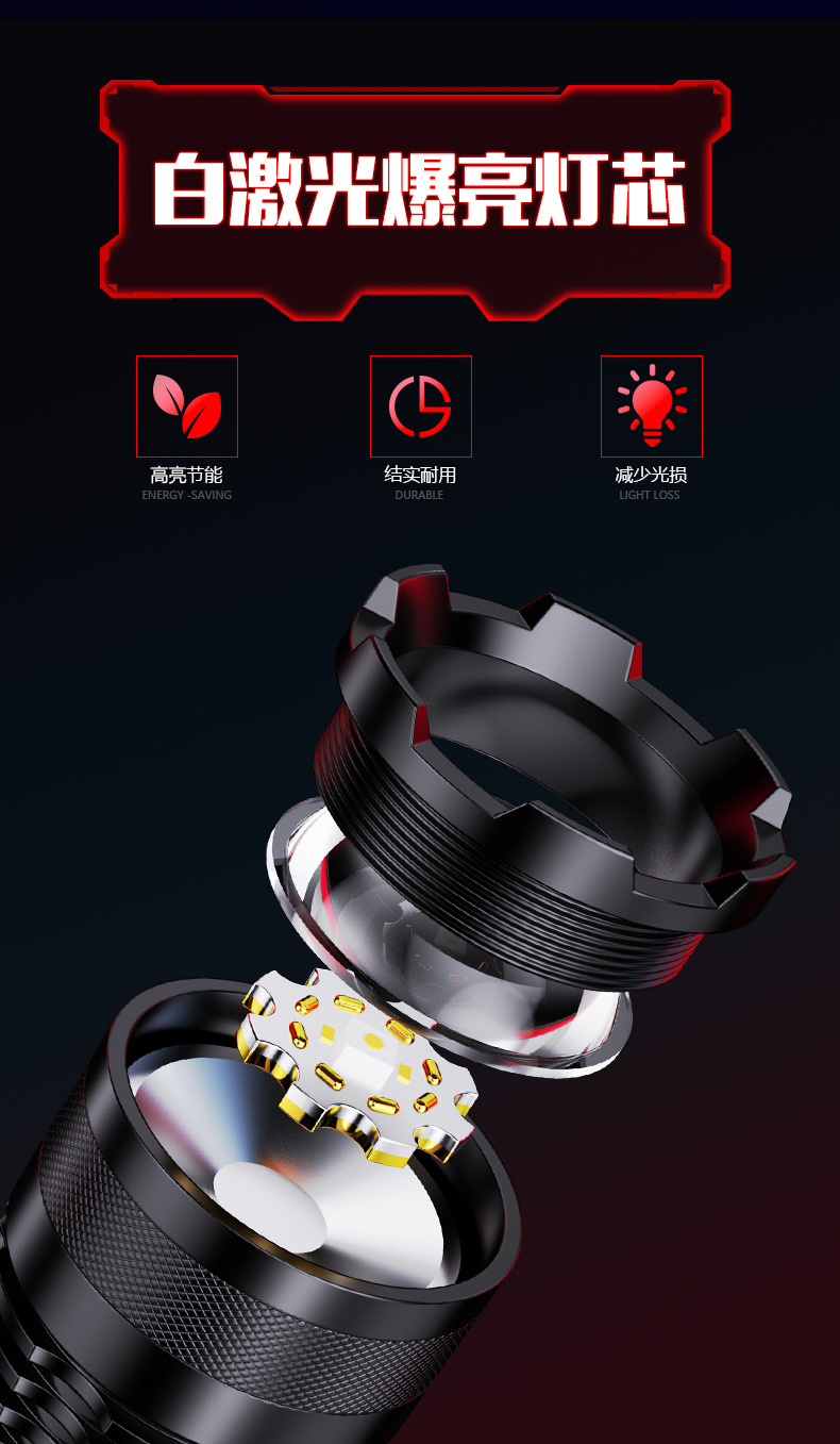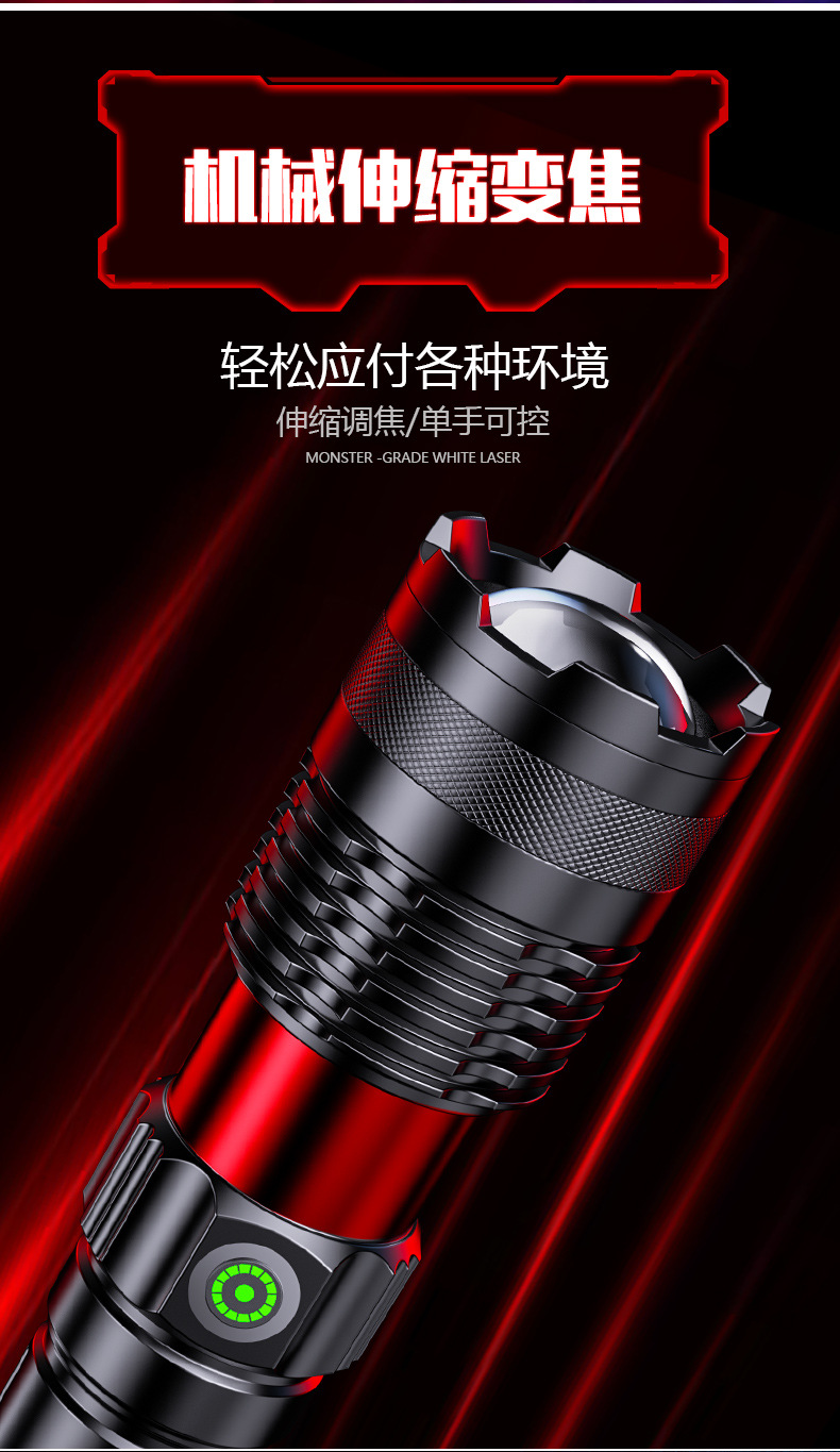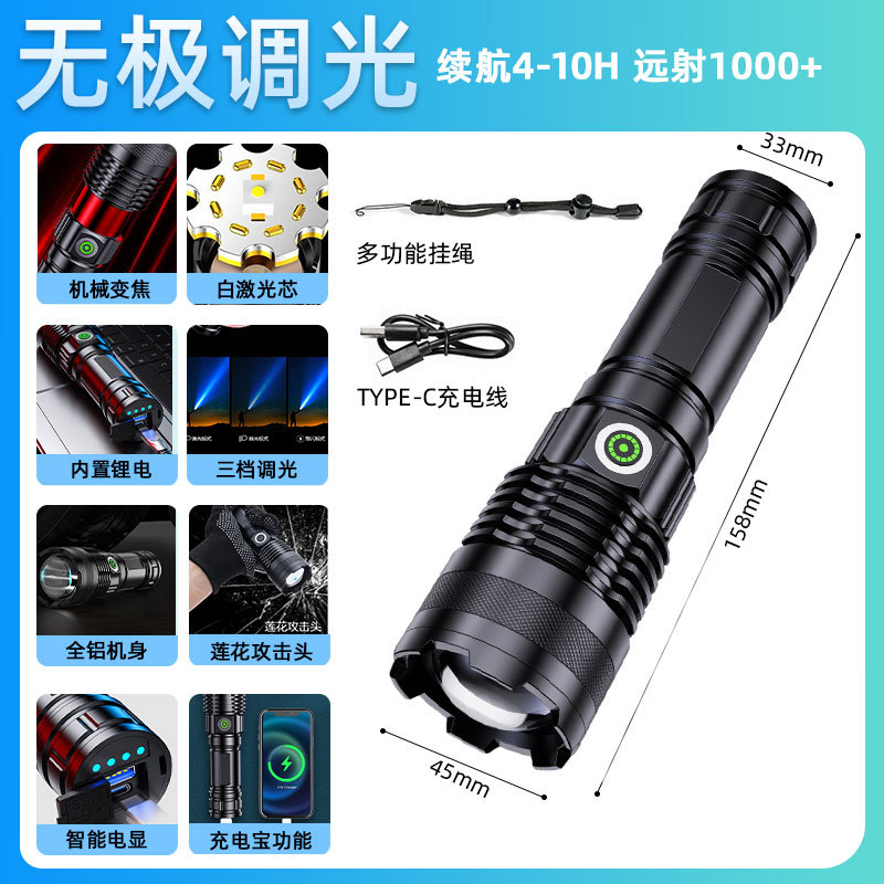 국경을 넘는 알루미늄 합금 강력 조명 텔레스코픽 장거리 전력 표시 무단계 조광 백색 레이저 야외 조명 손전등