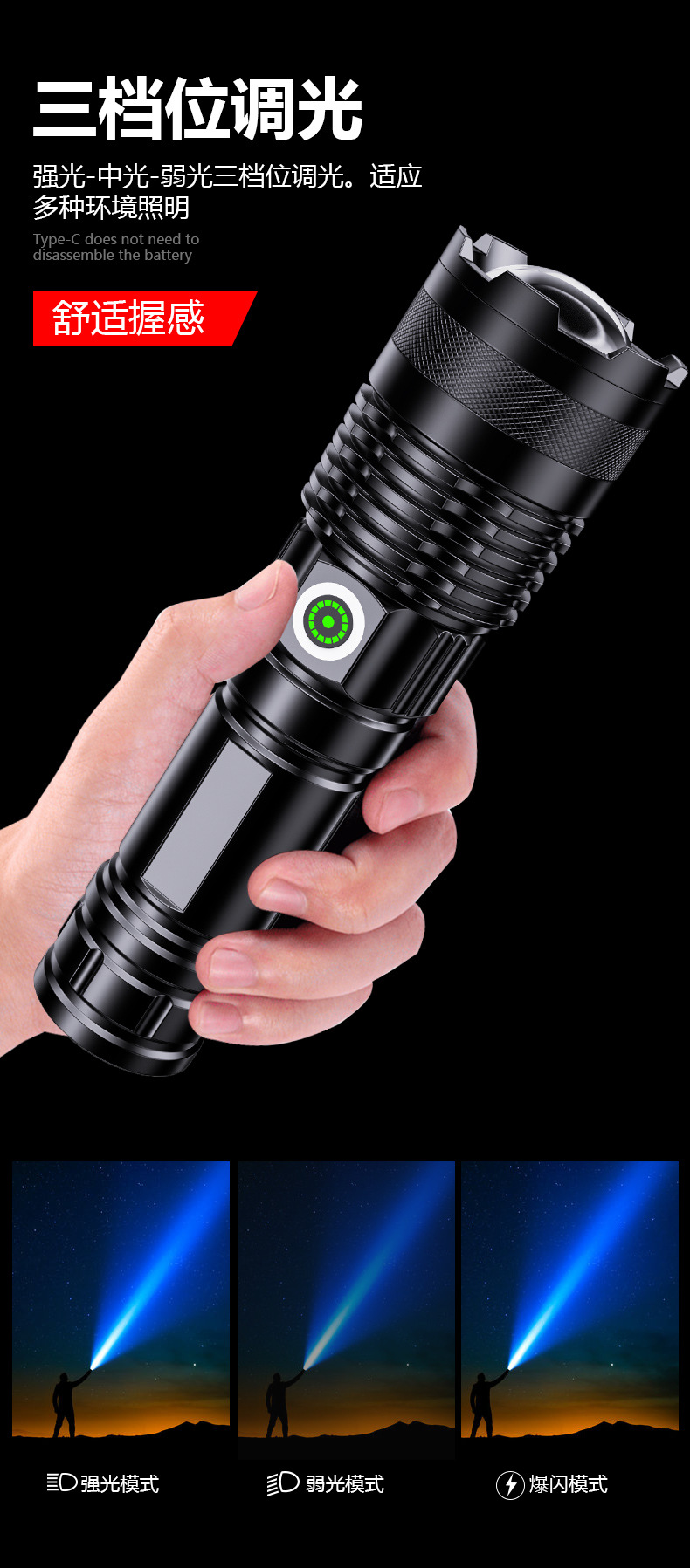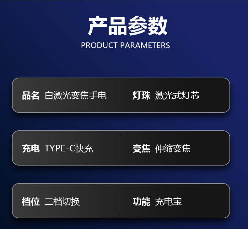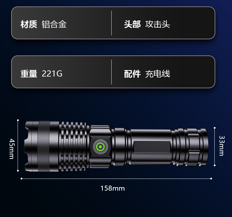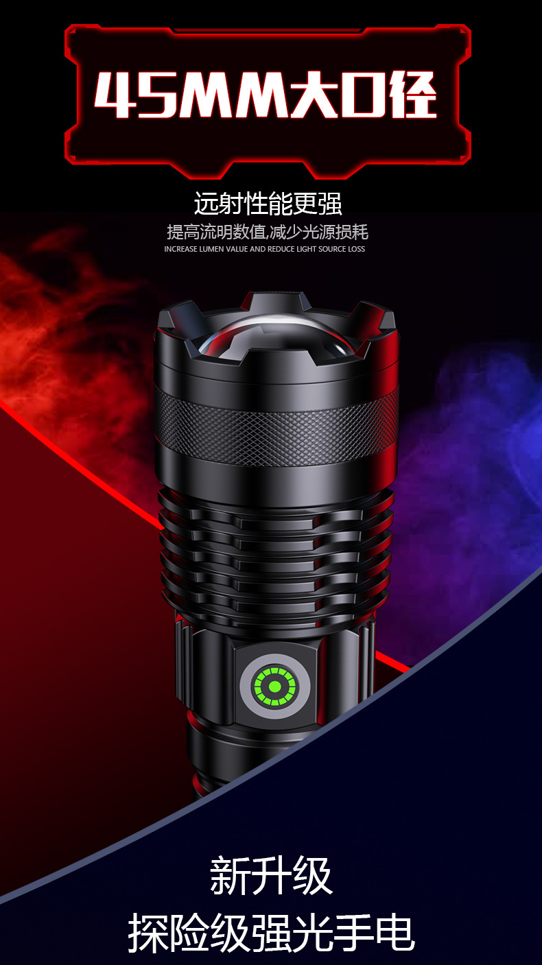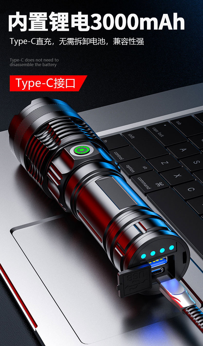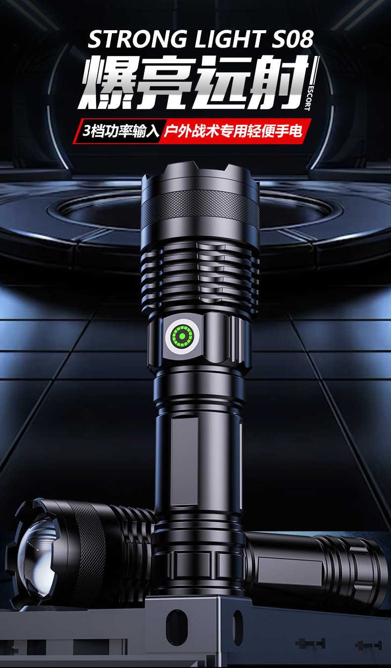 국경을 넘는 알루미늄 합금 강력 조명 텔레스코픽 장거리 전력 표시 무단계 조광 백색 레이저 야외 조명 손전등