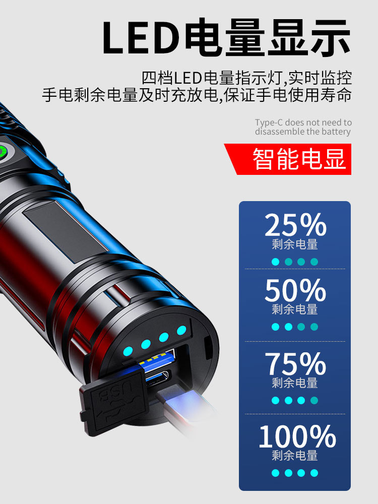 국경을 넘는 알루미늄 합금 강력 조명 텔레스코픽 장거리 전력 표시 무단계 조광 백색 레이저 야외 조명 손전등스토어 가기