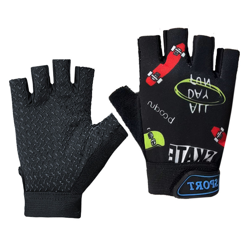어린이 반 손가락 장갑 땀 흡수 통기성 롤러 스케이트 균형 자동차 소년과 소녀 보호 야외 사이클링 스포츠 어린이 장갑