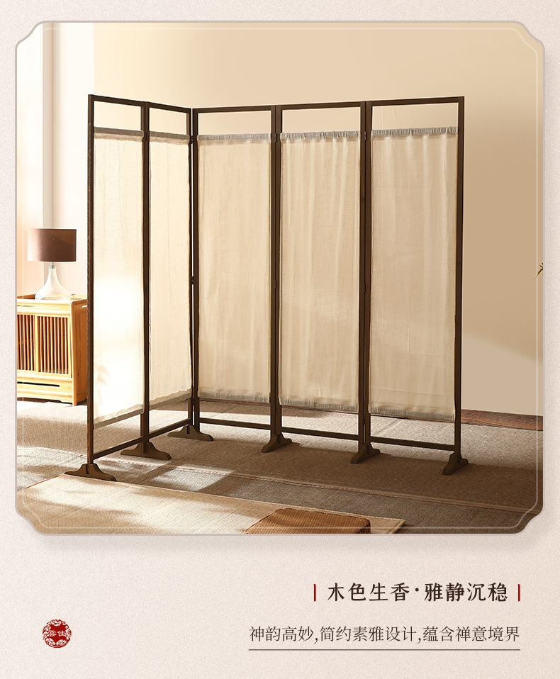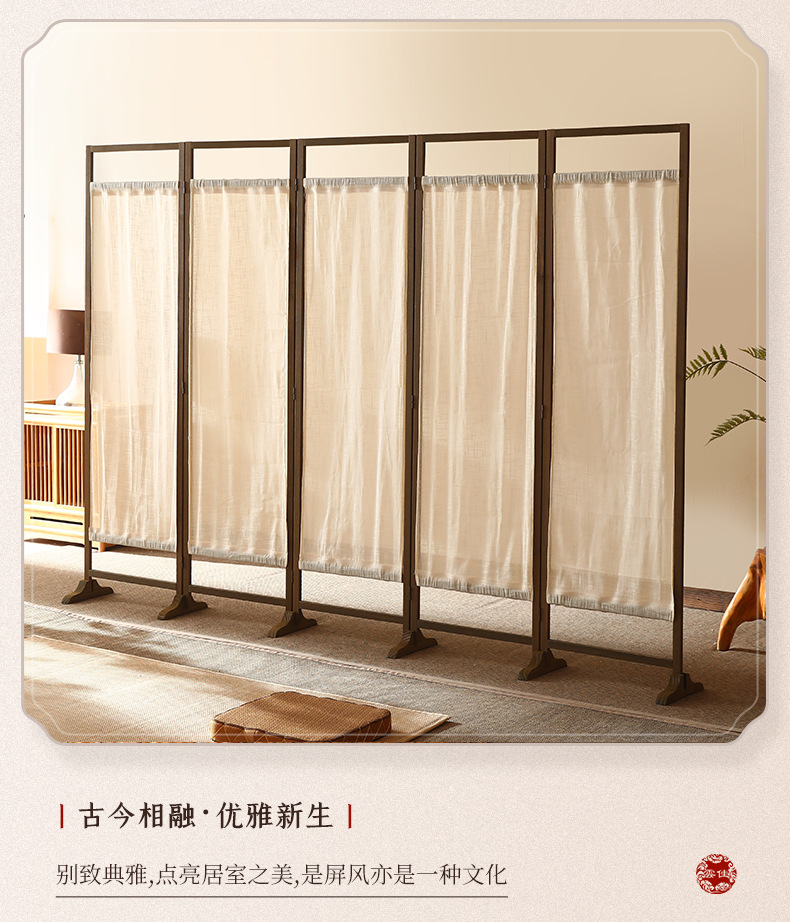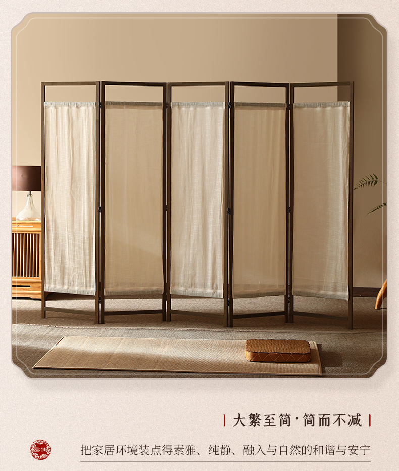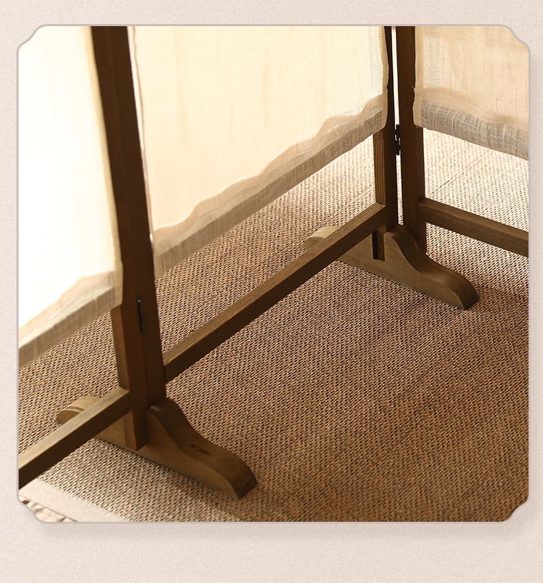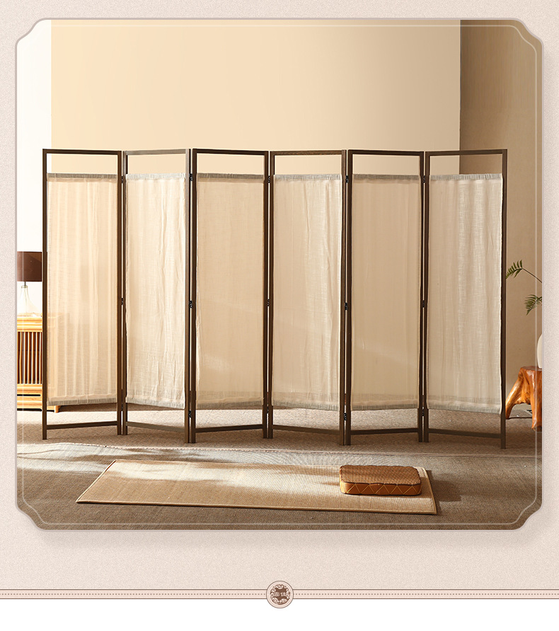 중국식 단단한 나무 린넨 화면 홈 파티션 거실 장식품 대피소 오래 된 복고풍 간단한 민속 직물 민속 화면