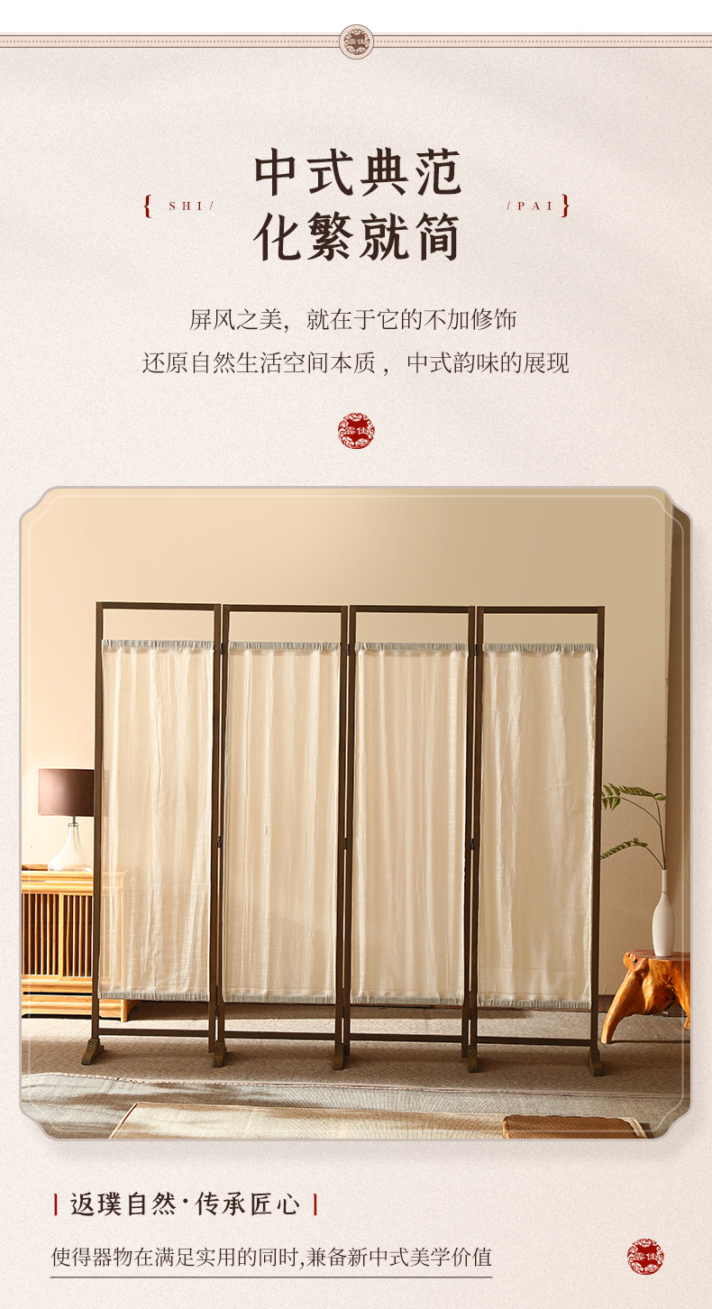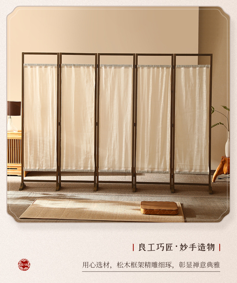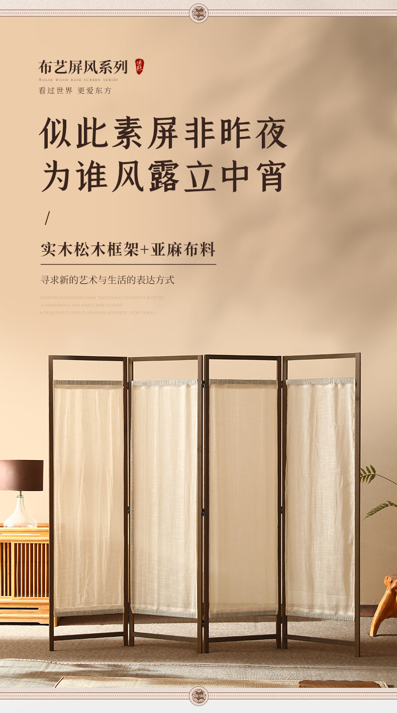 중국식 단단한 나무 린넨 화면 홈 파티션 거실 장식품 대피소 오래 된 복고풍 간단한 민속 직물 민속 화면스토어 가기