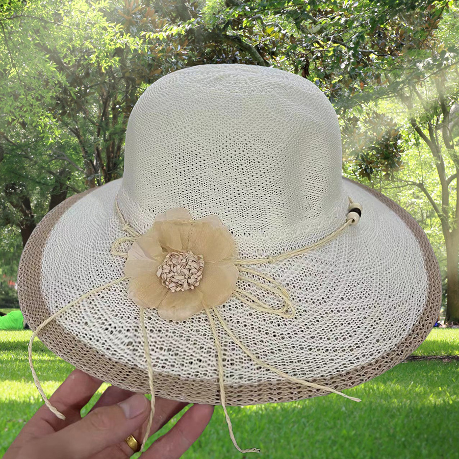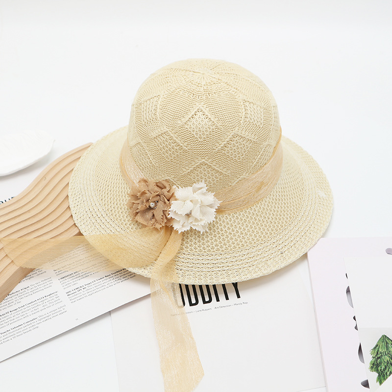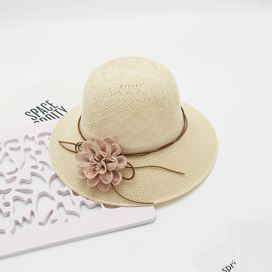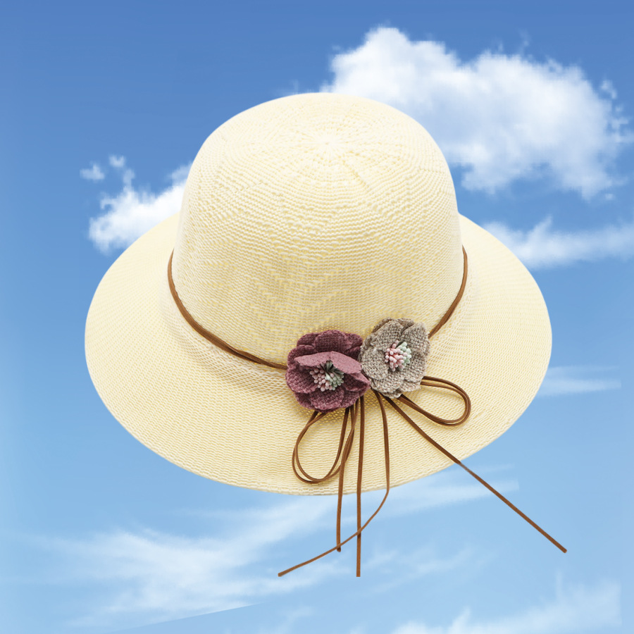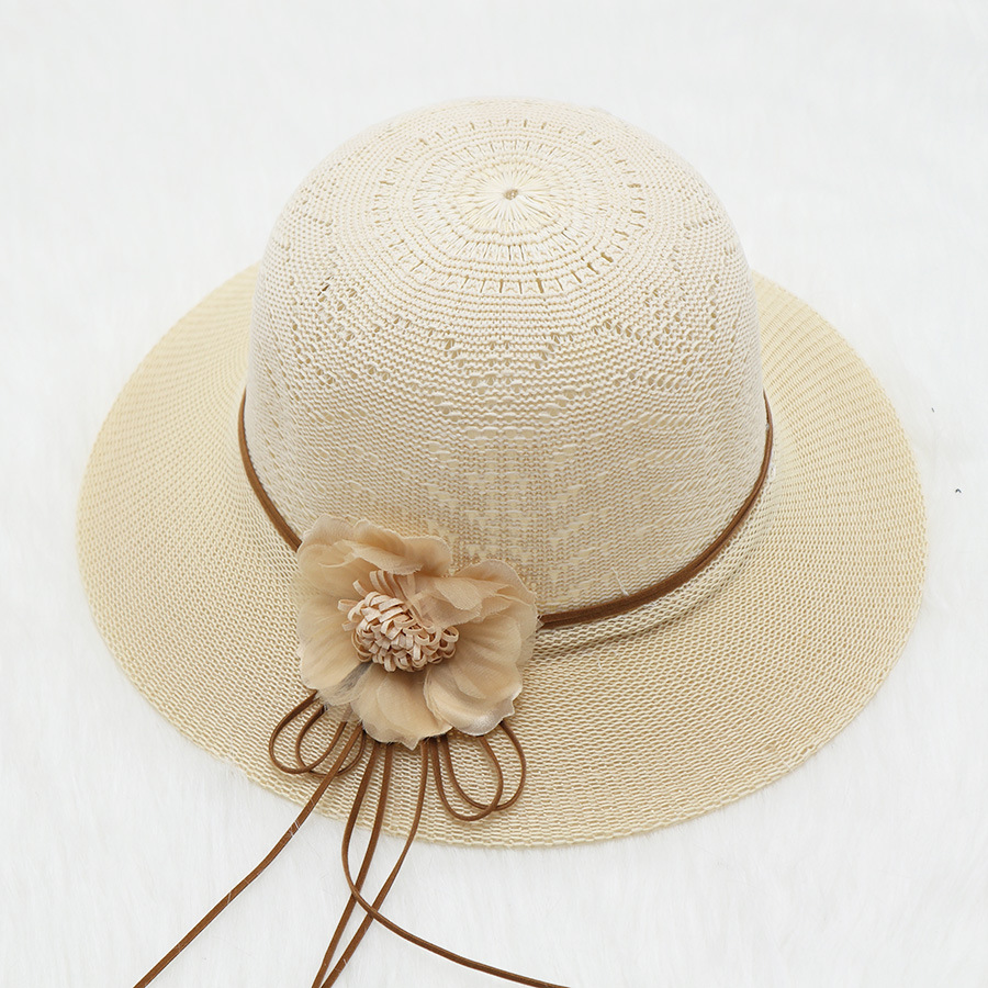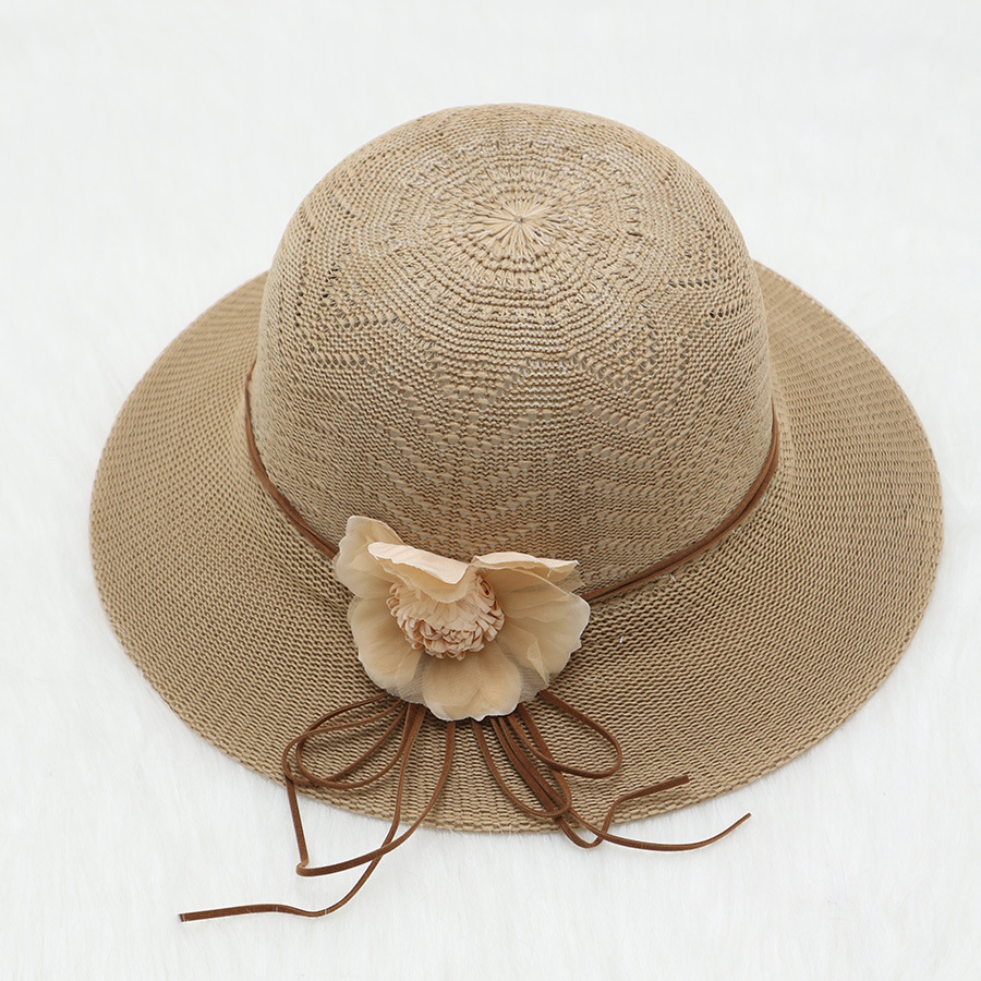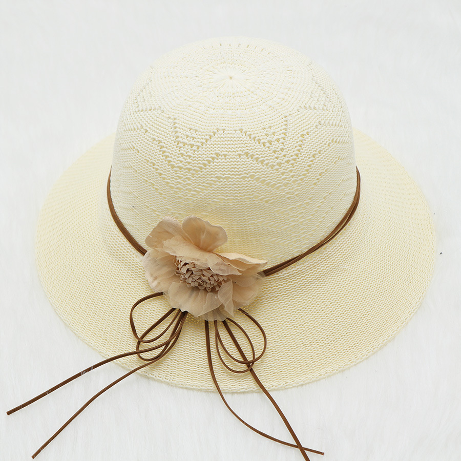 • 묶인 밧줄 다중 꽃잎 반원형 화분 모자 베이지